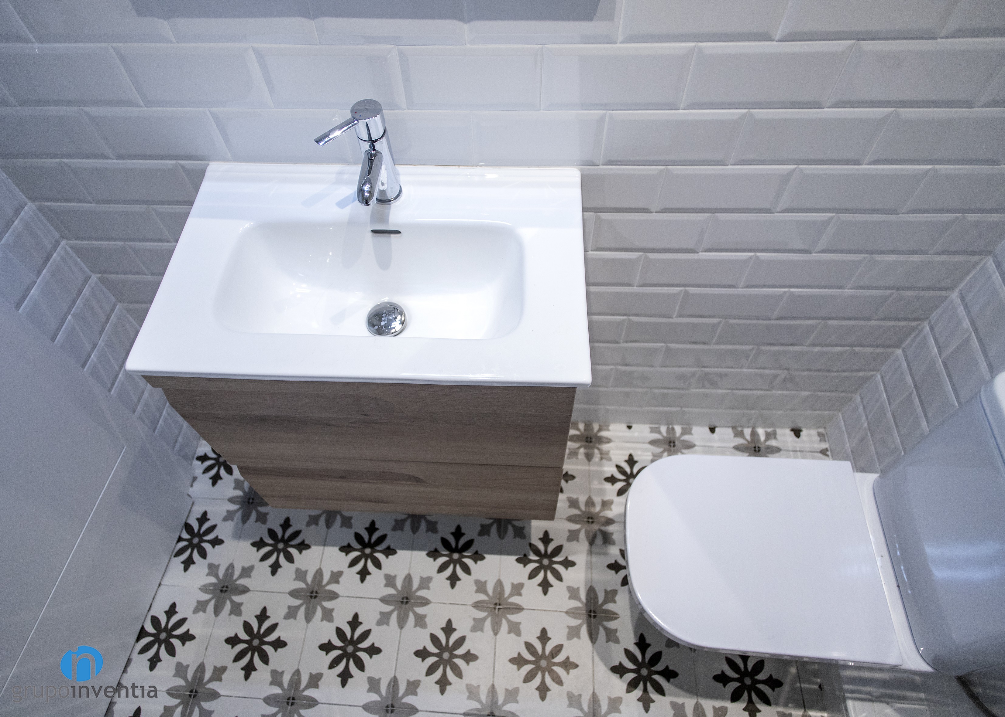 As for the interior design of the bathrooms, the walls were tiled in medium height with white meter tiles. To paint the rest of the wall until reaching the ceiling neutral tones were used to play with the hydraulic pavement placed. This last element brings a lot of personality to the bathrooms.