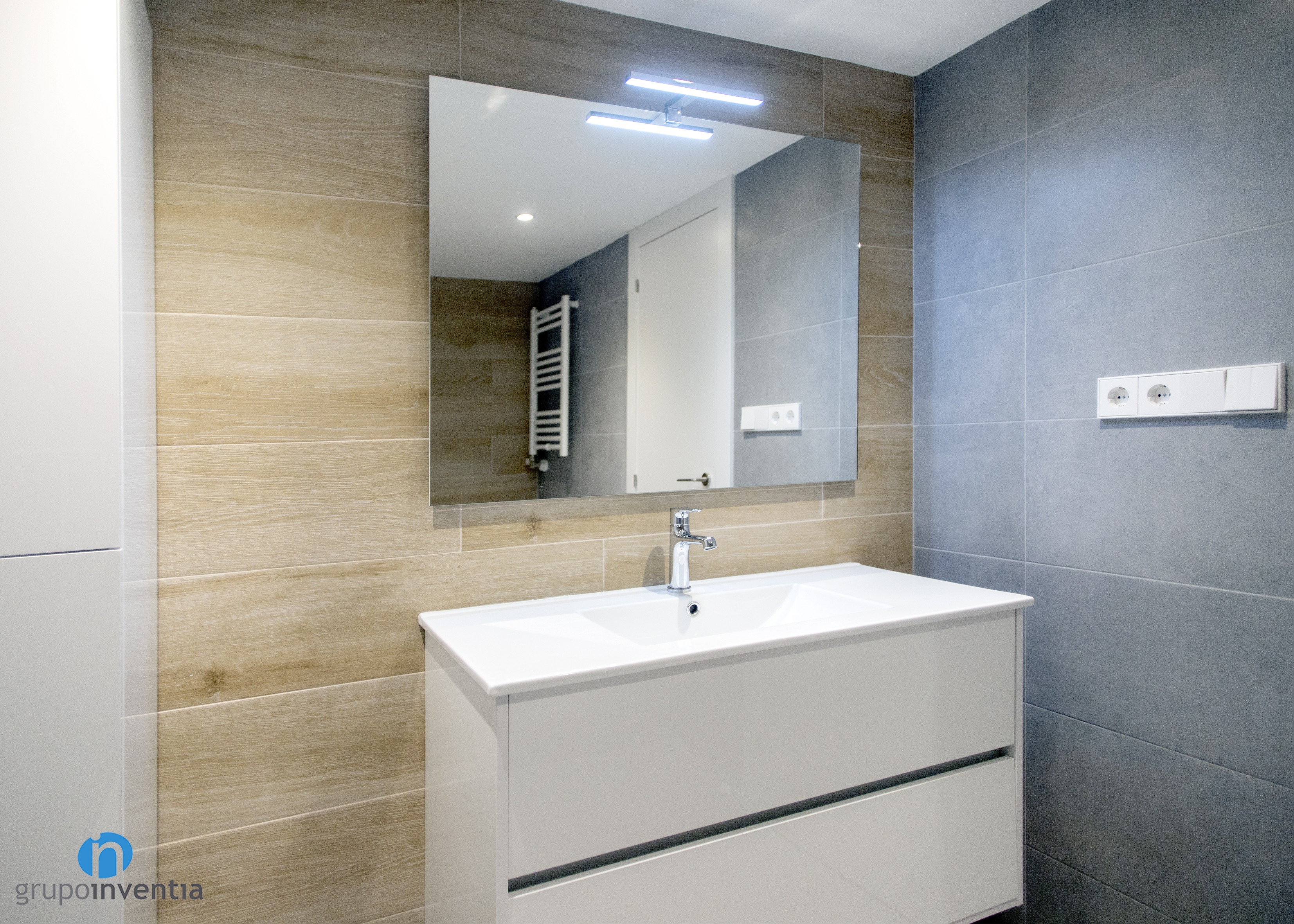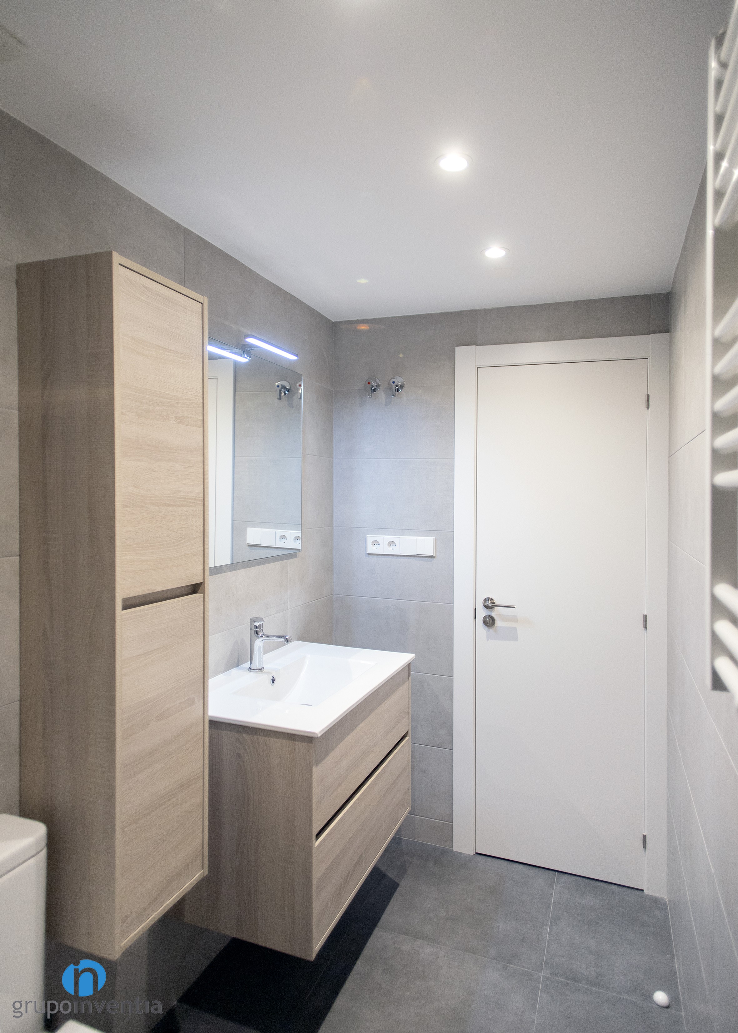 The two bathrooms with the apartment are fully equipped, with a sink with built-in storage furniture, a toilet and a water area. This last element is that it varies, since while in the main bathroom there is a bathtub, in the courtesy it is a shower. In turn, in this bathroom renovation an extra storage cupboard was anchored to the wall.
