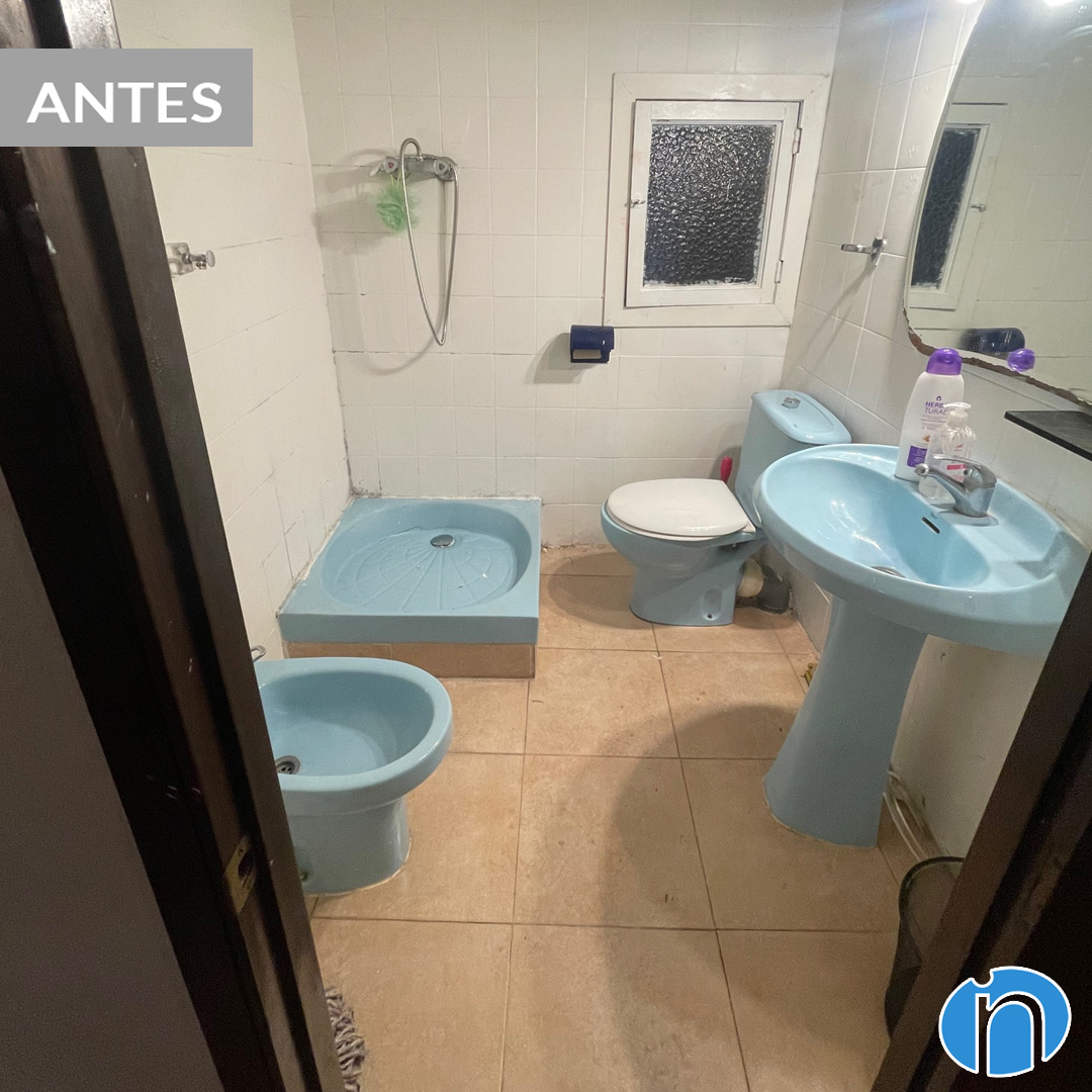 Another of the spaces that we have improved in this house renovation in Barcelona is the bathroom. As we mentioned, the original toilet was located in the current kitchen, so the distribution has changed. As you can see in the comparison between before and after, we have built the new bathroom where the kitchen and the gallery were.