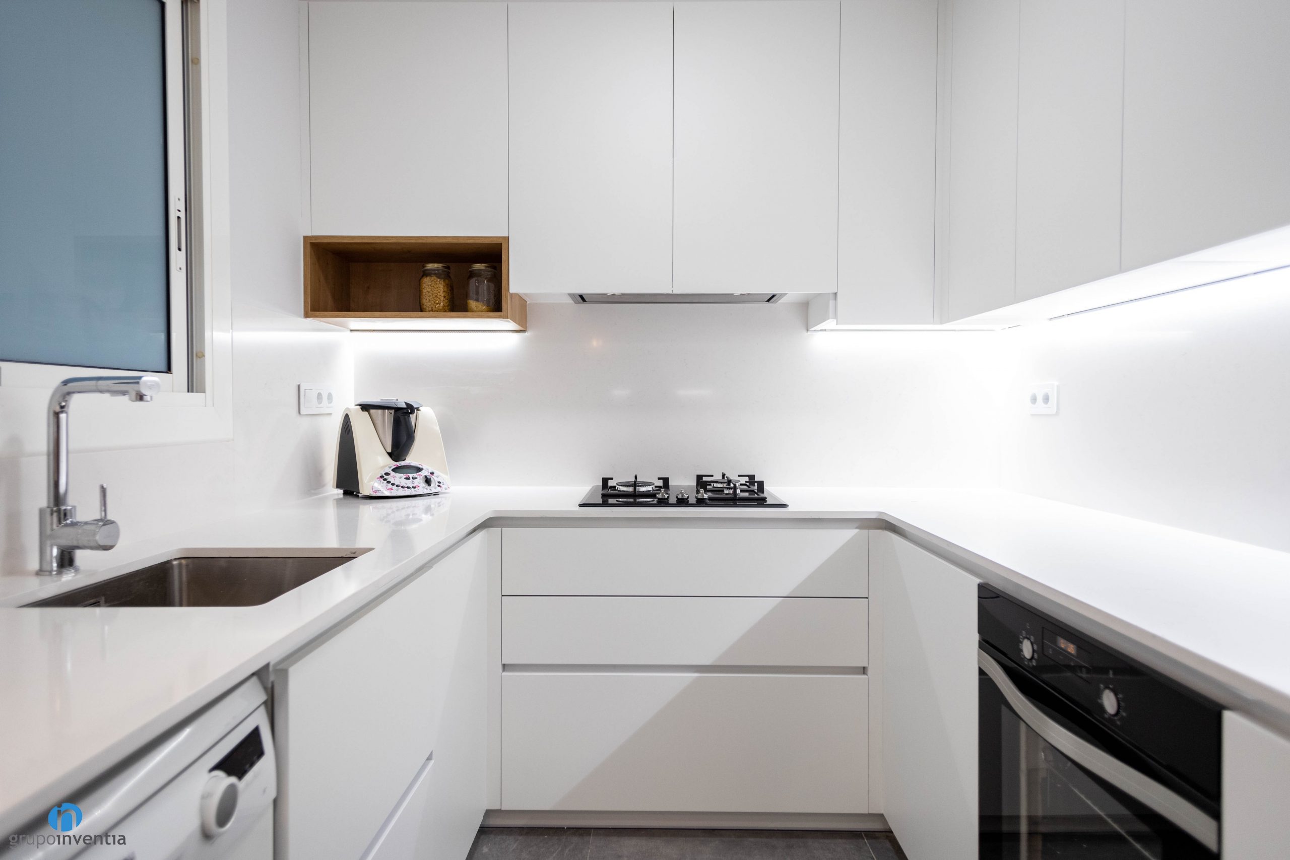 In Grupo Inventia we have completed a new project of house renovation in Barcelona. Our team has been working on improving the spaces of this house located on Espinoi street. It has managed to print a modern and current image in addition to fully equipping the key rooms. At this last point the kitchen and bathroom are ready to offer the best features.