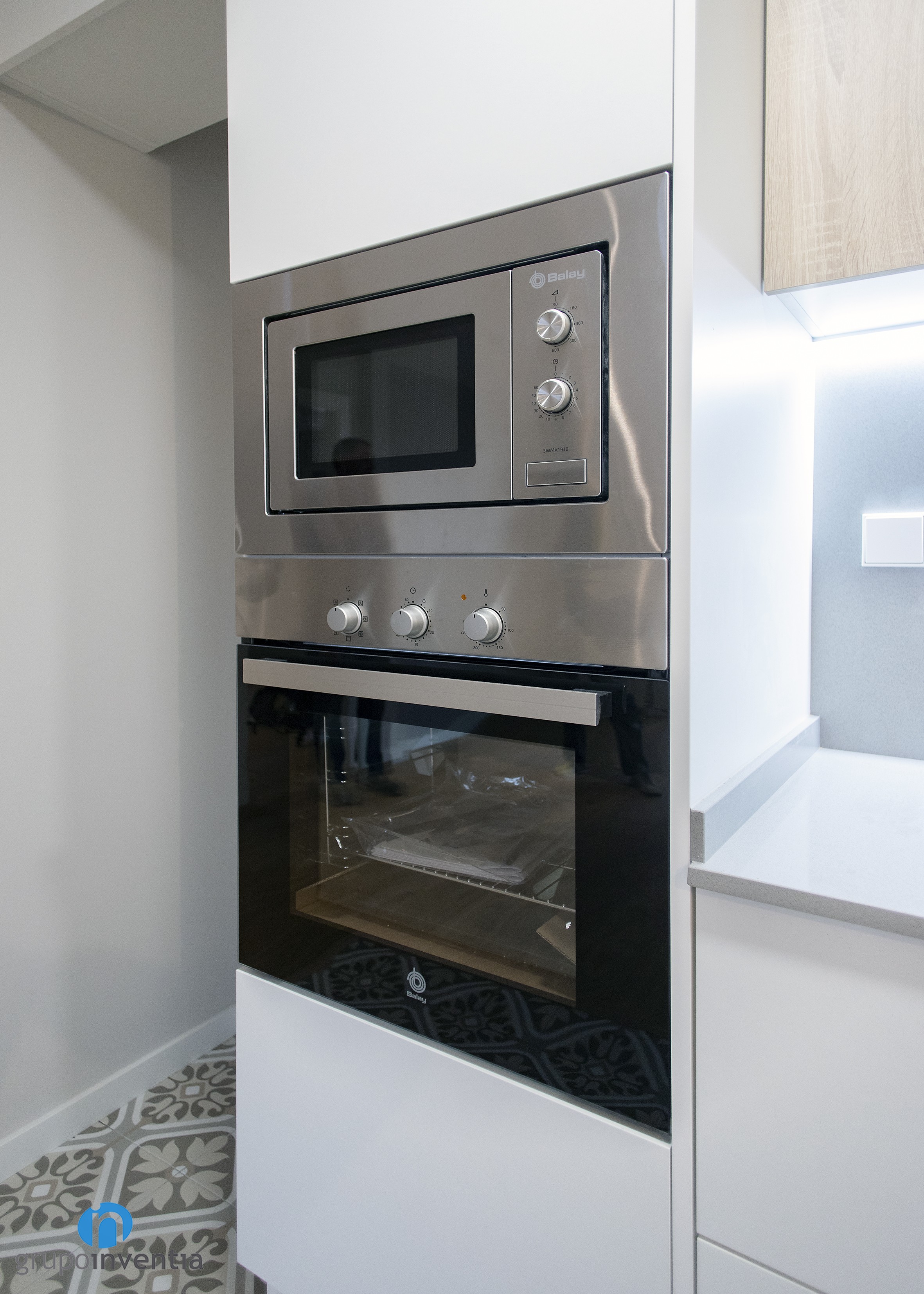 The kitchen is open to the livingroom and for the disposal of its new elements a linear distribution was chosen. In this way it was achieved that the space of the kitchen offered the best features and functionality in its use. On the left, leftovers are available to fit the appliances. Specifically the refrigerator, oven and microwave.