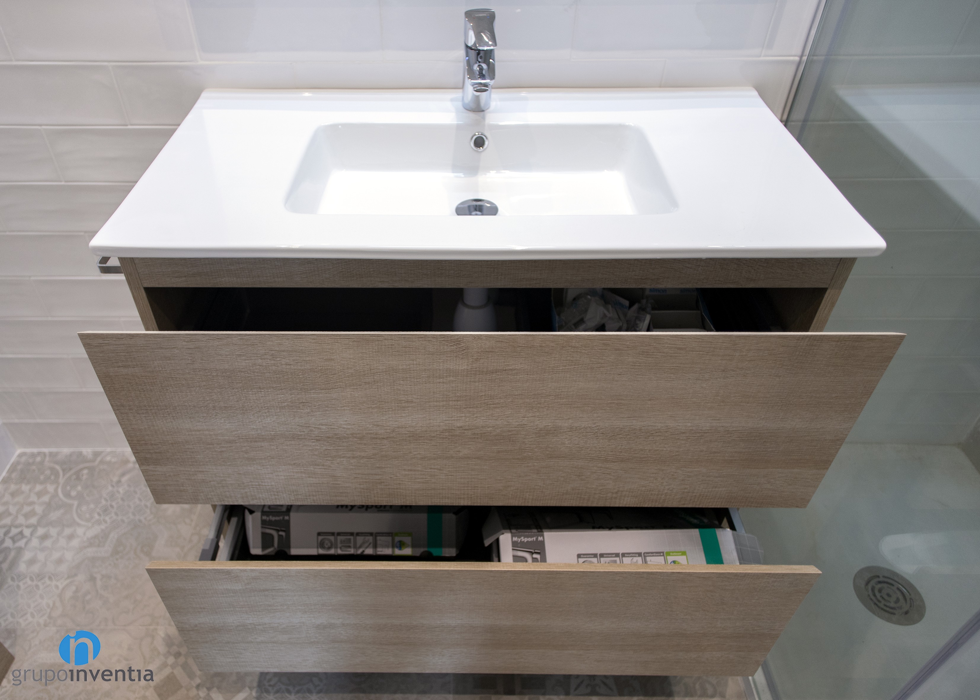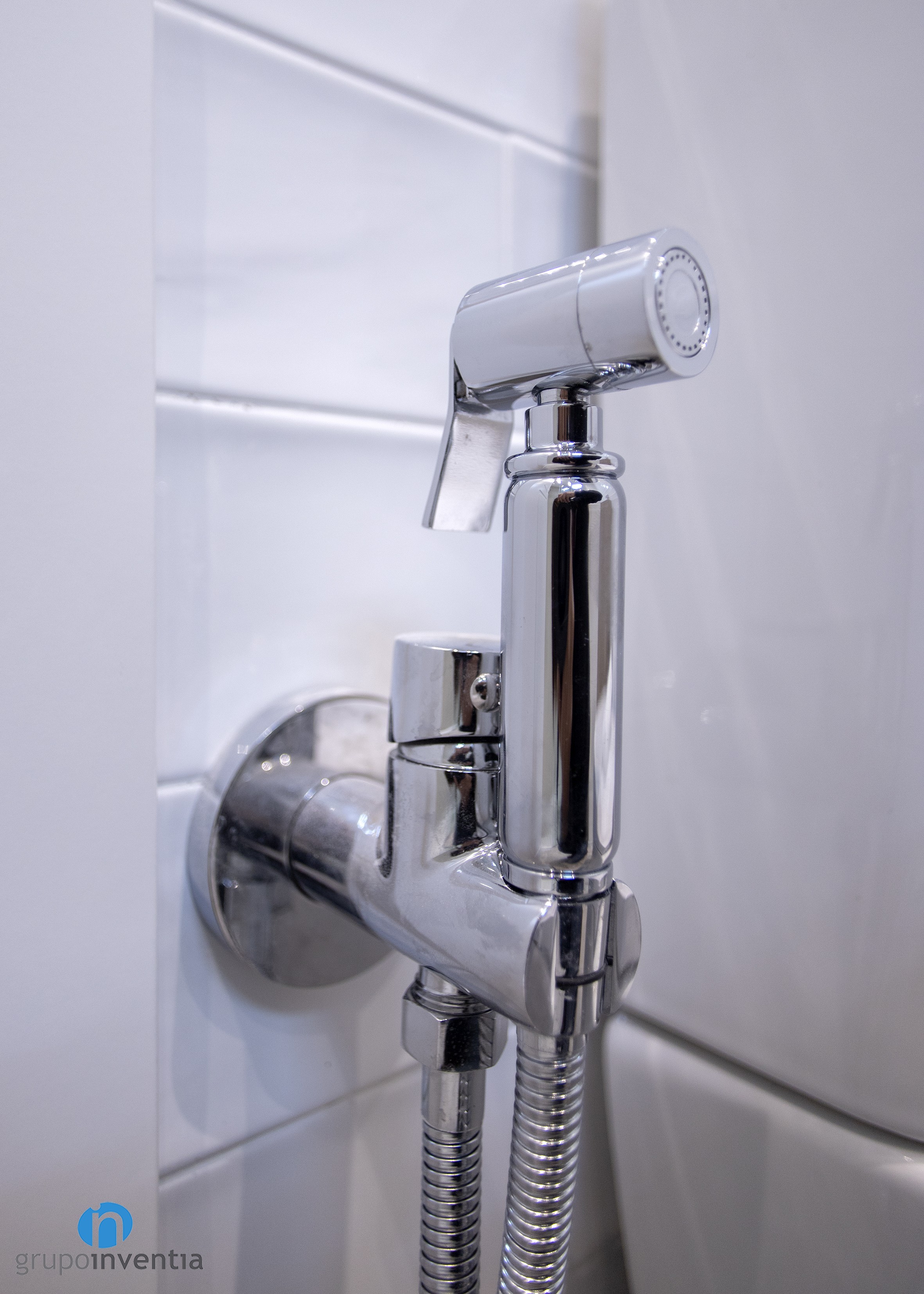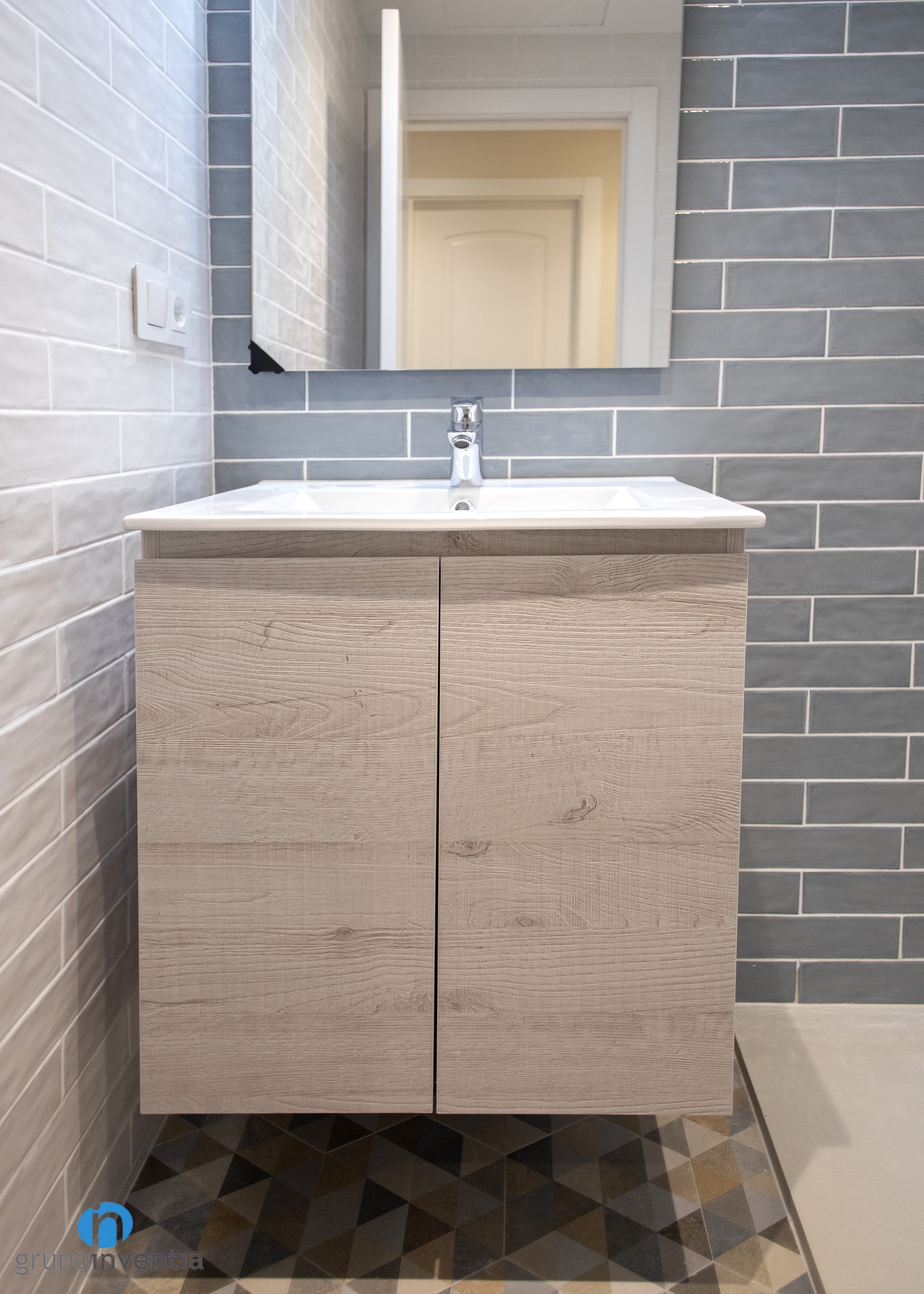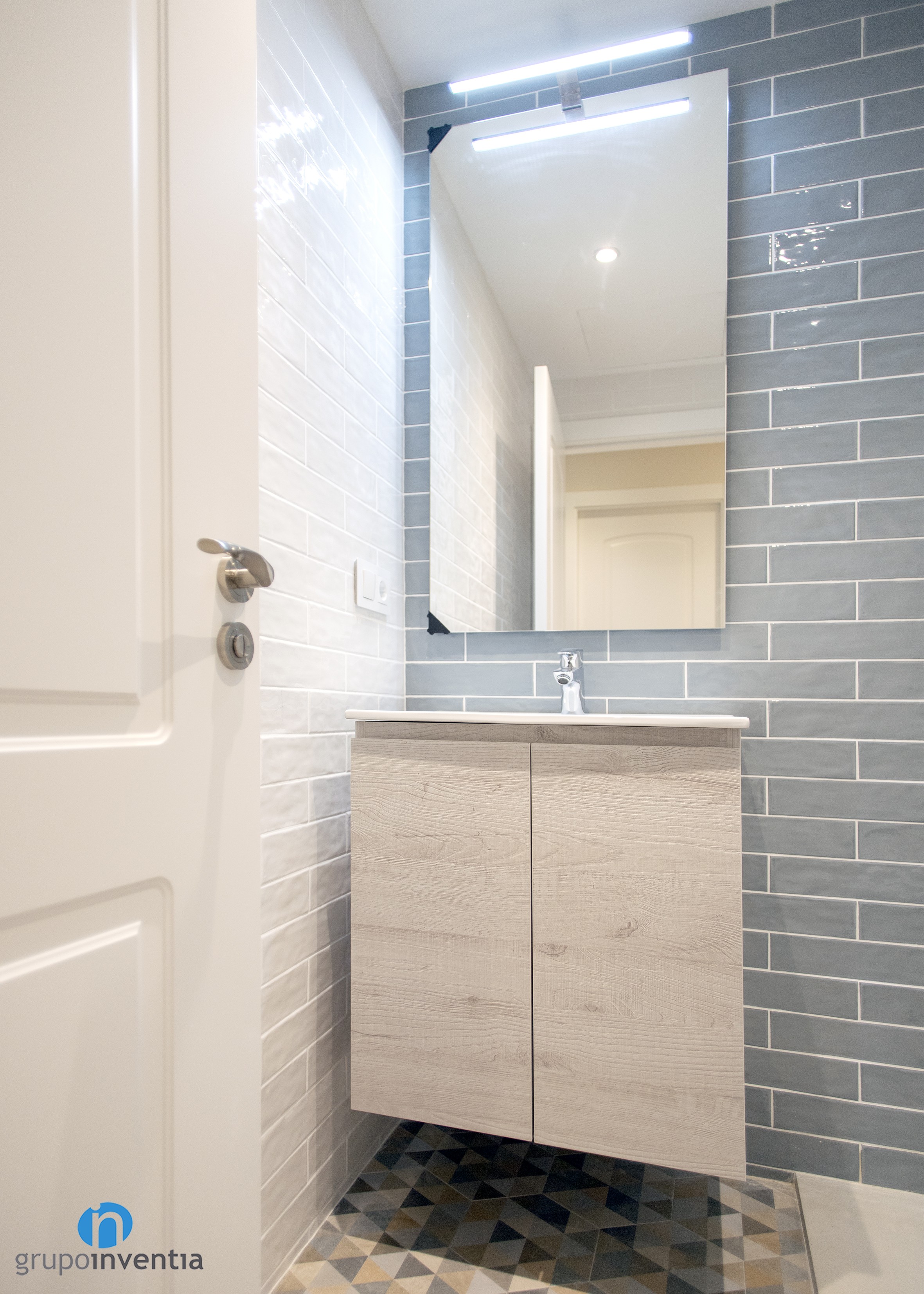 With regard to the interior design, in both cases, a total wall tiled was committed. In the main bathroom white tiles were used, as in courtesy, but with the difference that in this the wall of the sink was tiled with gray tiles. This is combined with a hydraulic flooring with which you get a fantastic image.