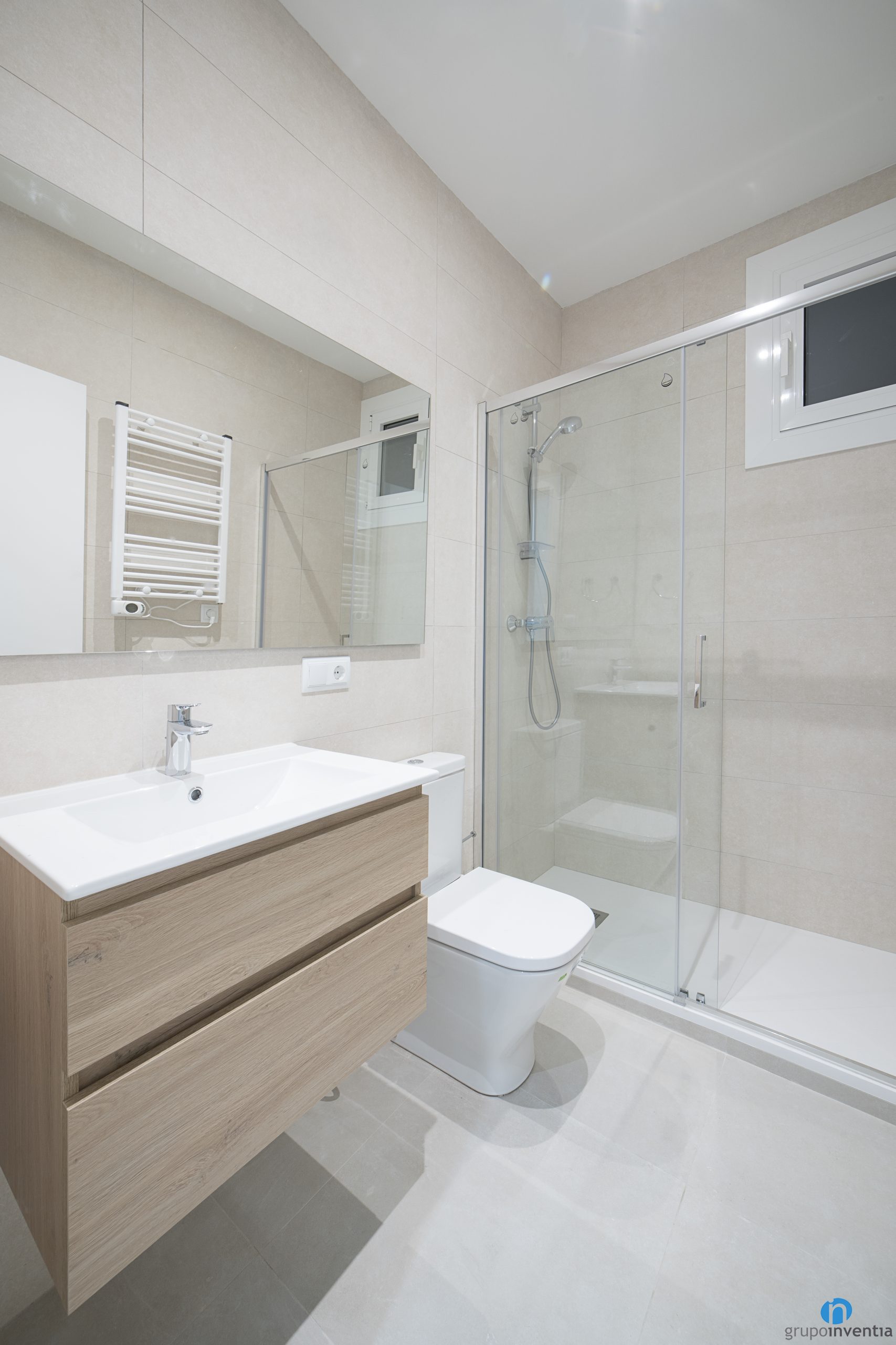 In the two bathroom renovations, three sanitary pieces have been installed. Now each toilet space has a toilet with built-in storage furniture, a toilet and a water area. For this last bathroom we have installed a shower tray that is protected by sliding door screens.