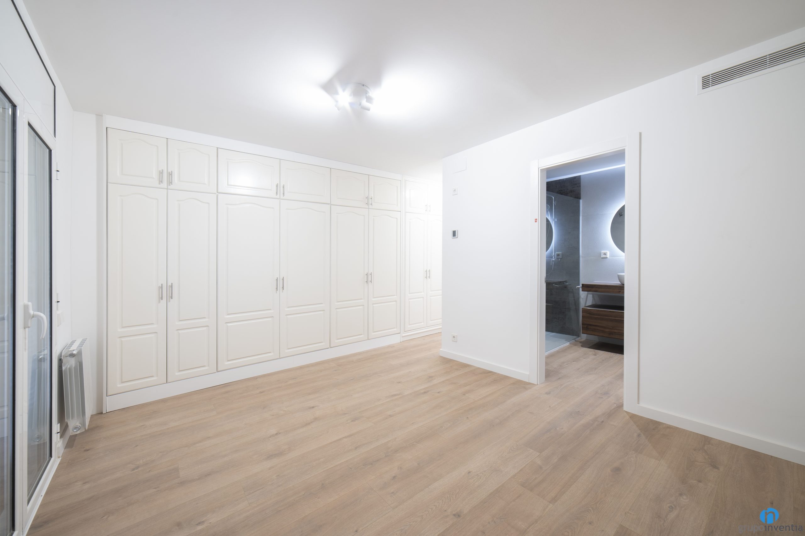 The new doors are also white, as are the plinths and frames. In this way we achieve a homogeneous image between all the spaces of the house. In the master bedroom we also painted a beige wall. It is another neutral color that fits very easily into contemporary design.