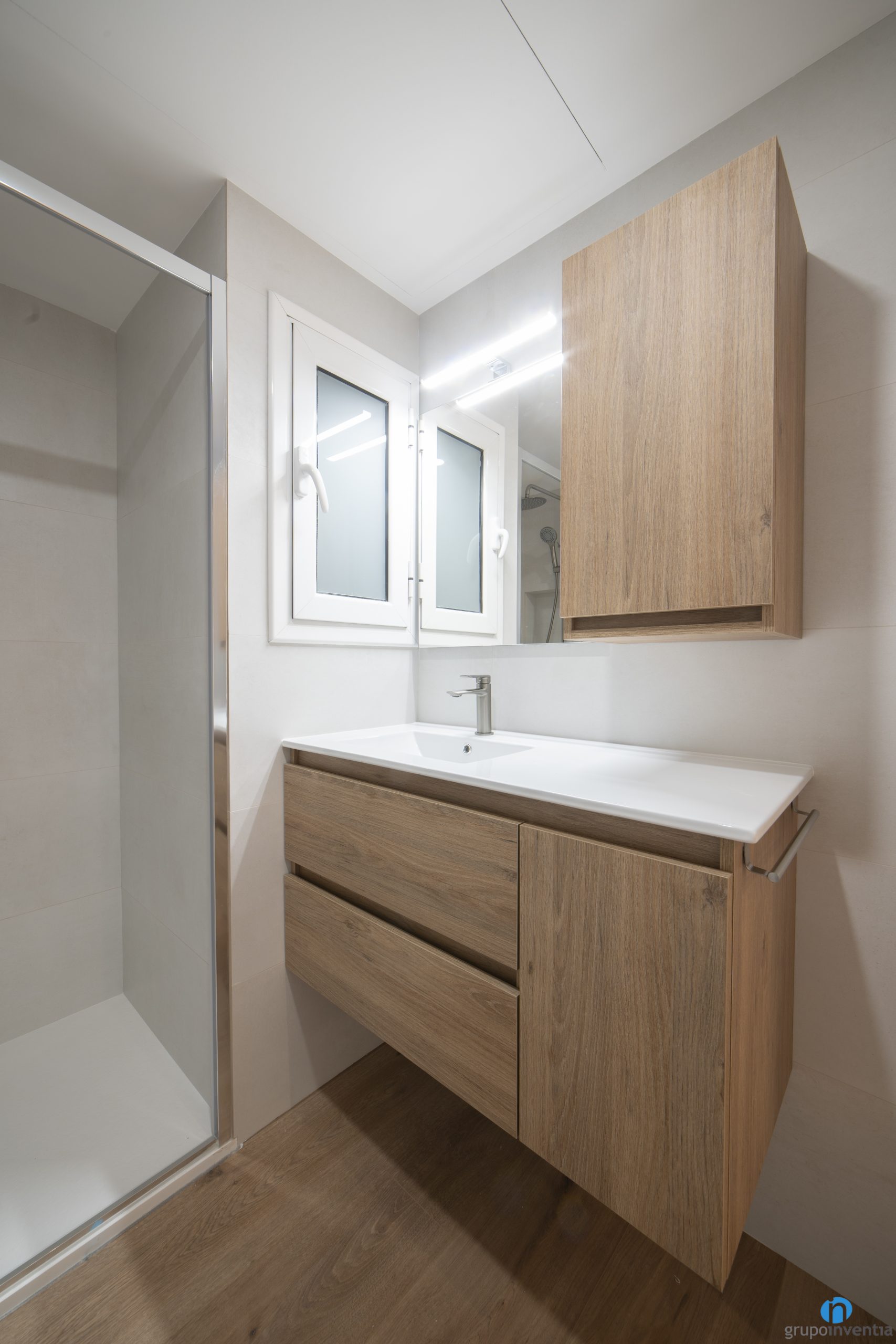 Due to the new design, we have maintained the overall image of the rest of the flat. The walls are tiled with beige tiles. Thus, we have created two very bright spaces with a pleasant atmosphere. For the floor we opted for a ceramic floor with parquet finishes.