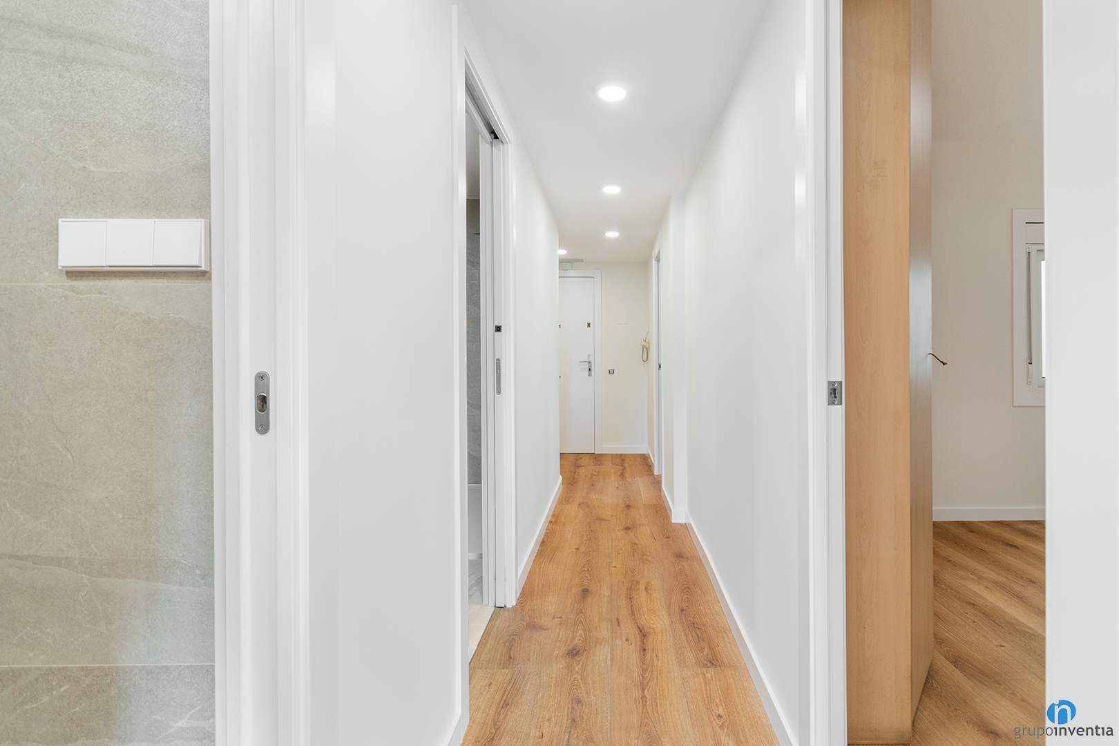 The new parquet flooring brings immediate warmth. Its natural wood tone matches the whole interior design. This material improves the global image and adds daily comfort. With this proposal boosts the natural light in every room. The light entries are used to their maximum potential. The space feels wider and much more fluid.