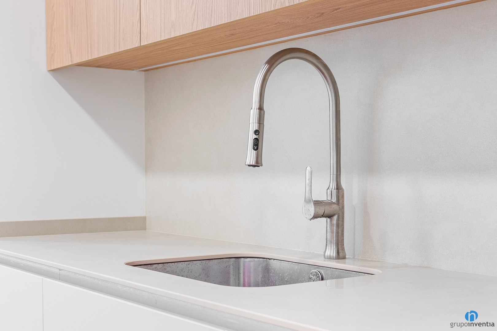 The kitchen furniture is white and includes wooden details. This combination enhances the sense of spaciousness. Also the room feels bright and very comfortable. This kitchen renovation creates a practical and convenient space. It also adapts to the daily needs of the home.