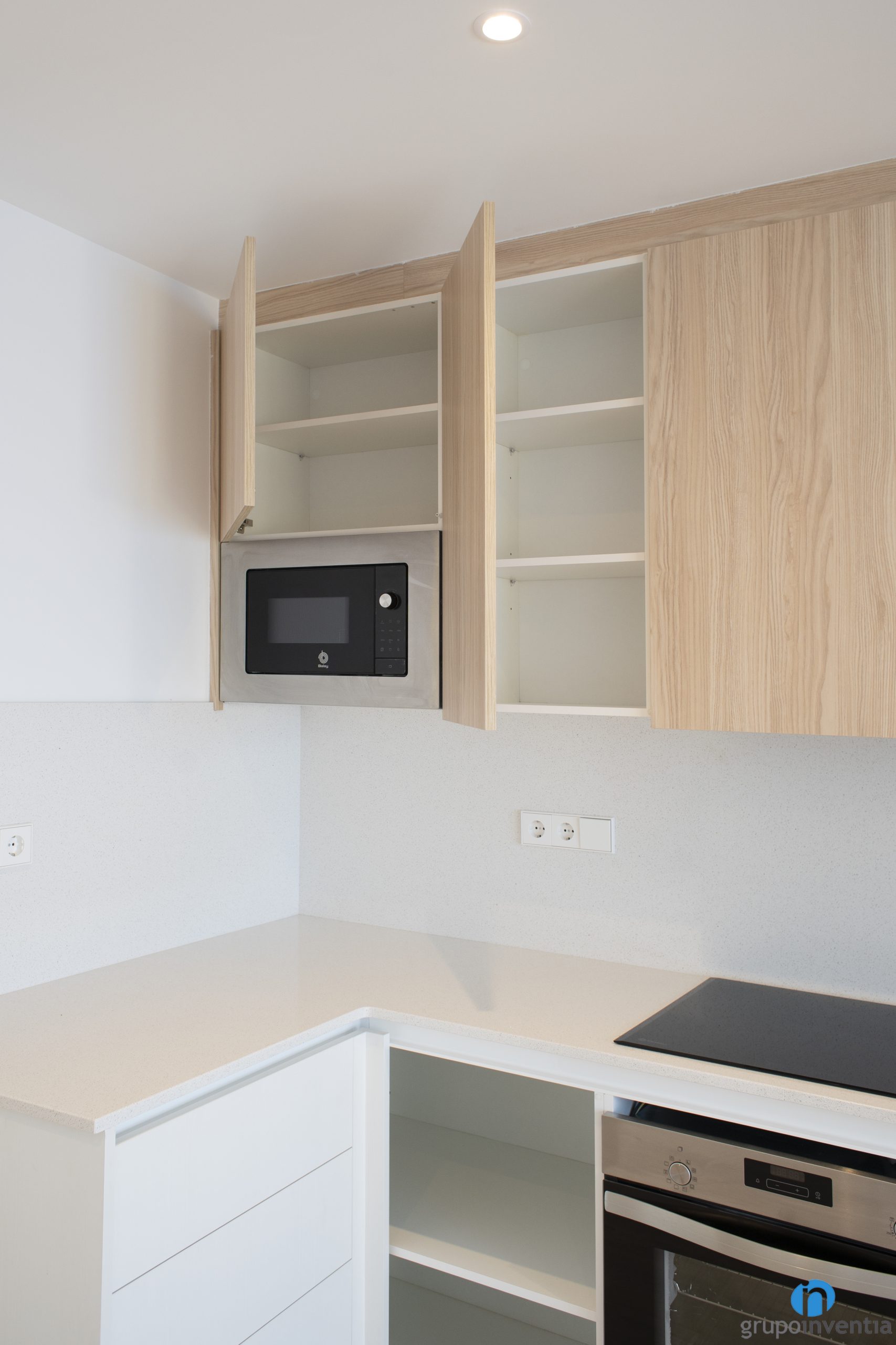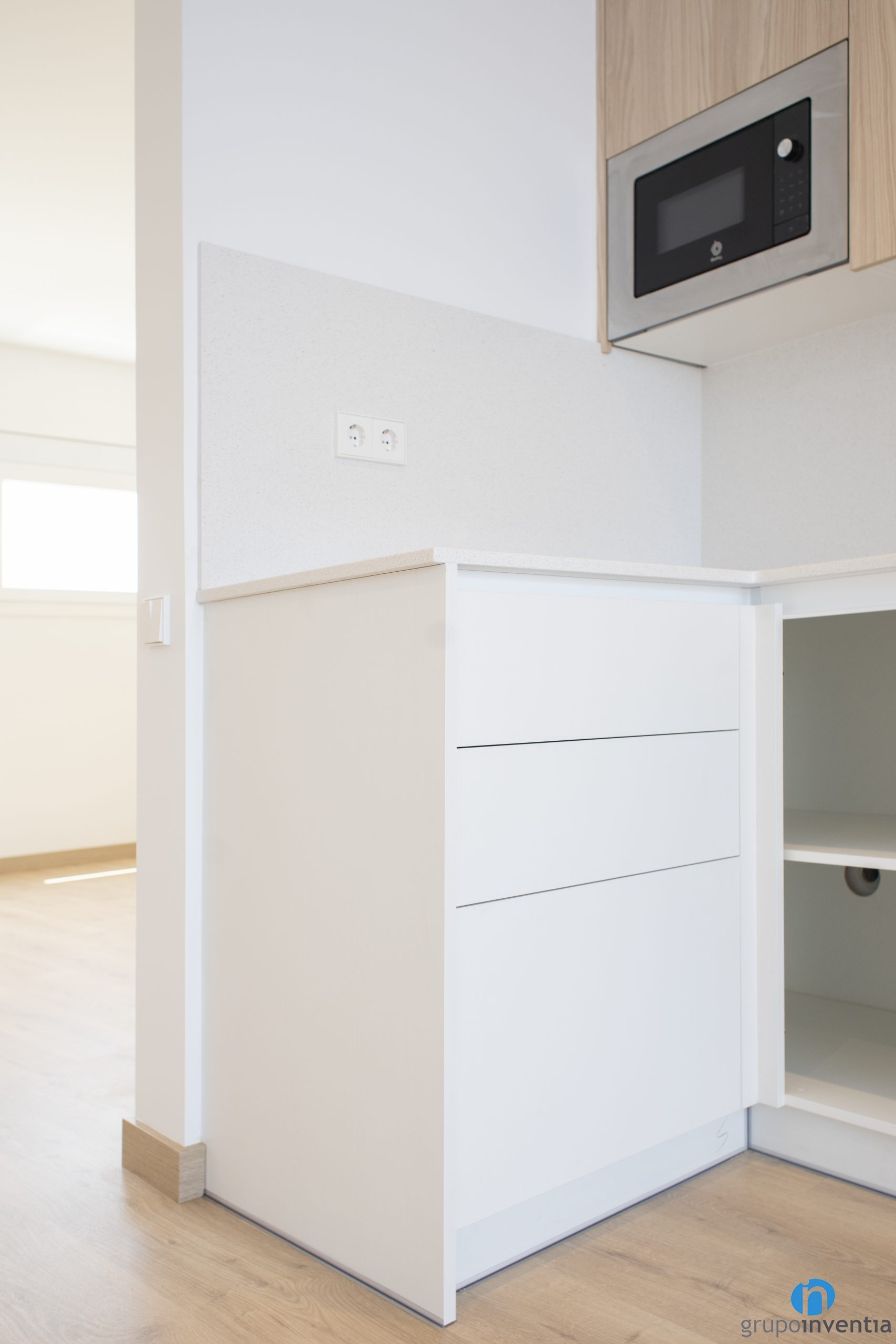 The kitchen renovation of this apartment in Sant Feliu de Llobregat has an open concept and is distributed in an L shape. It is located in a very large space that is designed to place a dining area. The kitchen area can be furnished very easily with a table and several chairs. In this way, the kitchen would be fluidly connected to the dining room.
