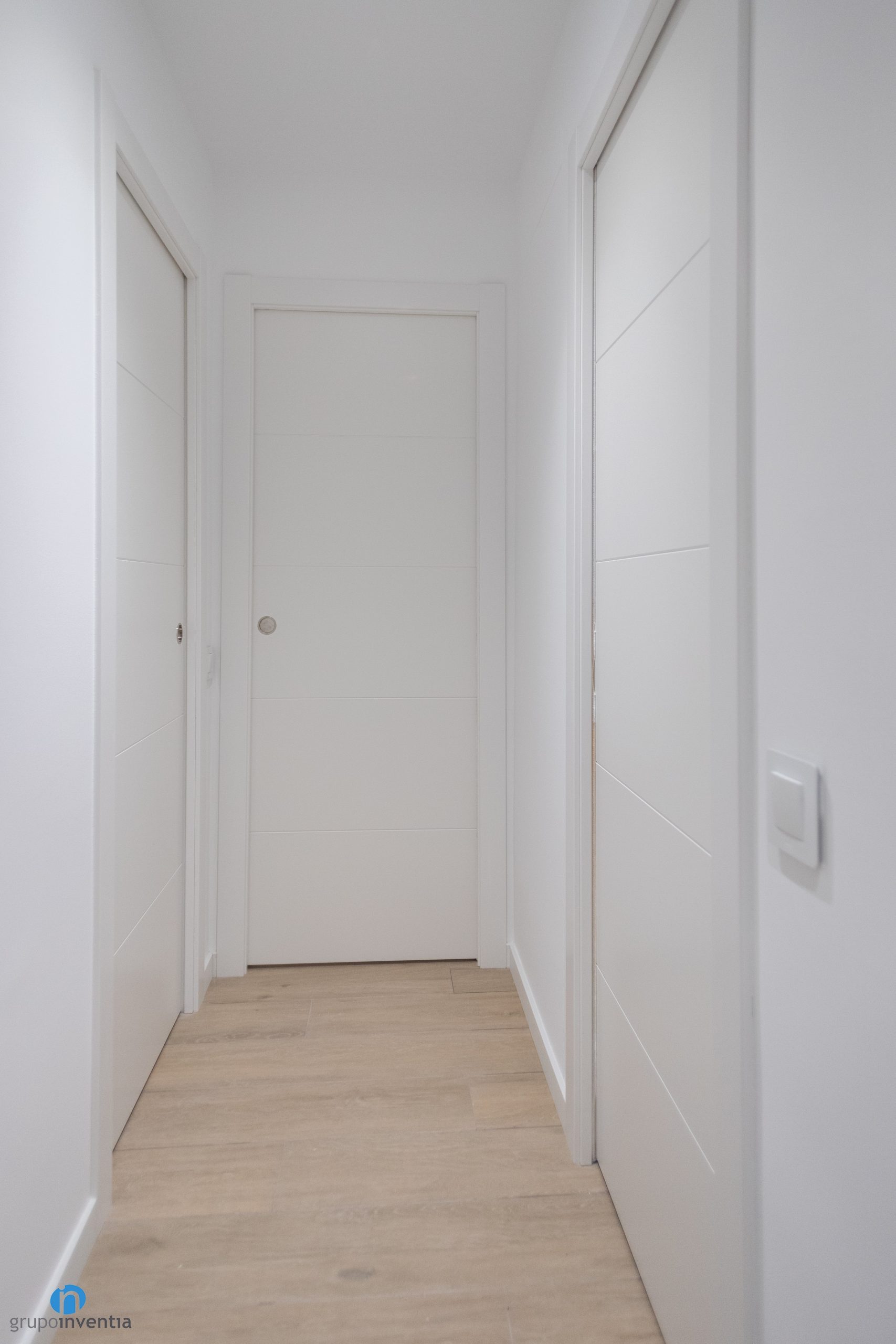 An imitation wood ceramic floor has also been placed to create visual homogeneity. At the decorative level it is fantastic and it is also a very resistant and durable material. Among the various improvements and new features in this apartment are also the new doors. They are white and in most cases are sliding doors.