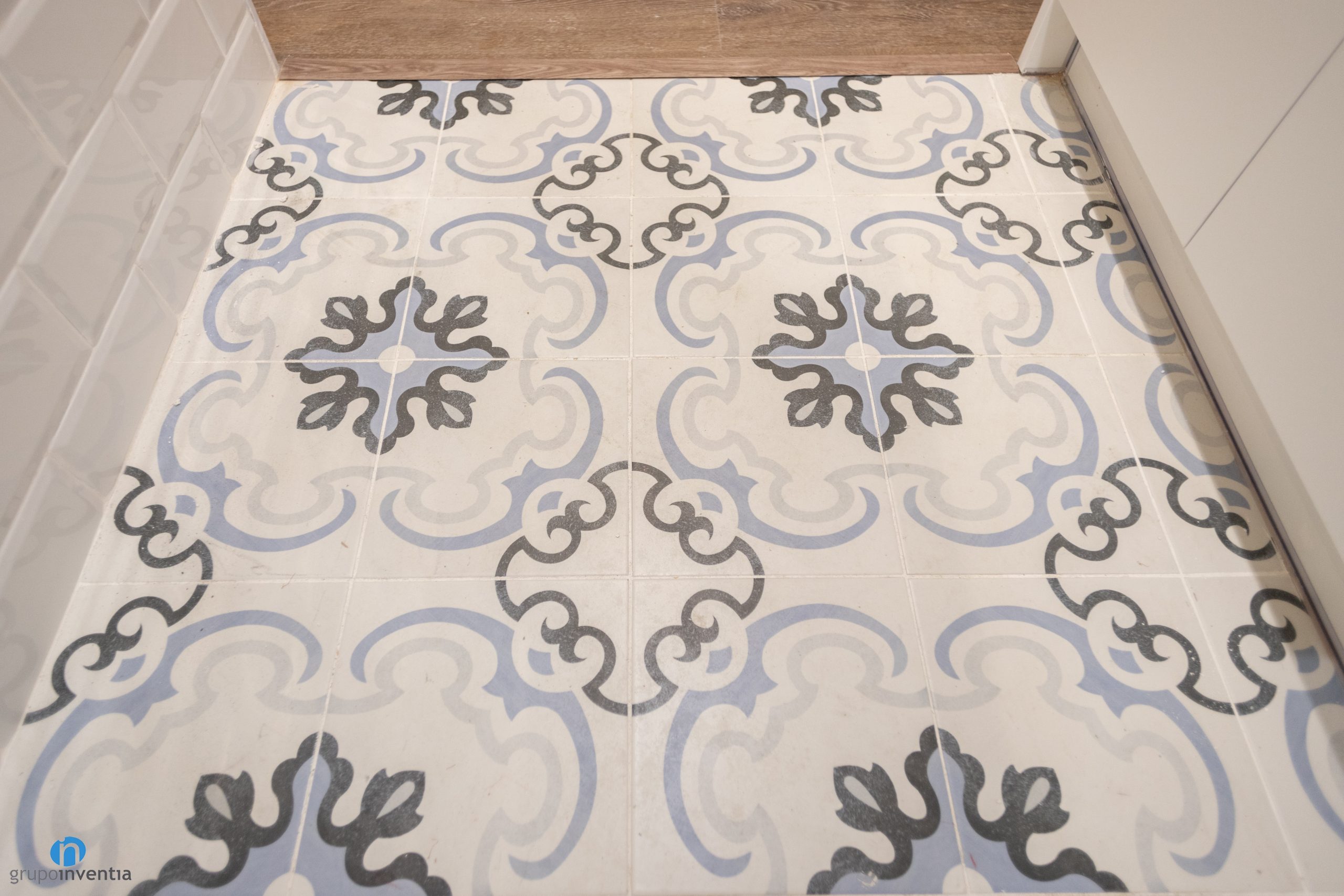 For its part, the cabinets that have been anchored at the top are made of wood. This is a combination of shades widely used in the kitchen renovations we carry out. The kitchen floor has also been changed and is different from the one we mentioned for the rest of the house. It is a hydraulic floor with designs that combine beige and different shades of blue.