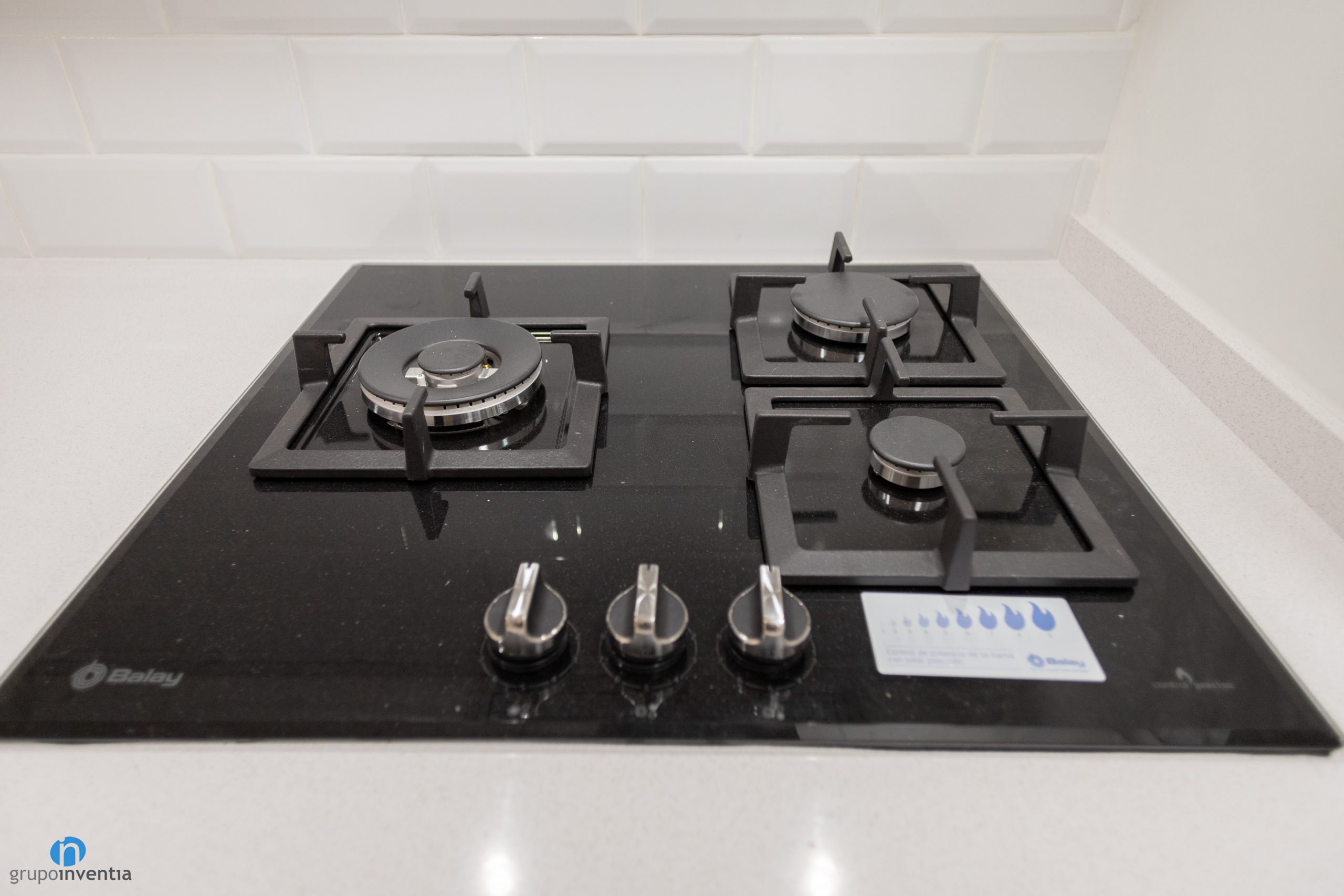 It has a large countertop that provides ample space for support and work. In turn, a single-breast sink and a ceramic hob have been installed on it. At the far right, custom gaps have been arranged to integrate the new appliances. Specifically a refrigerator, an oven and a microwave.