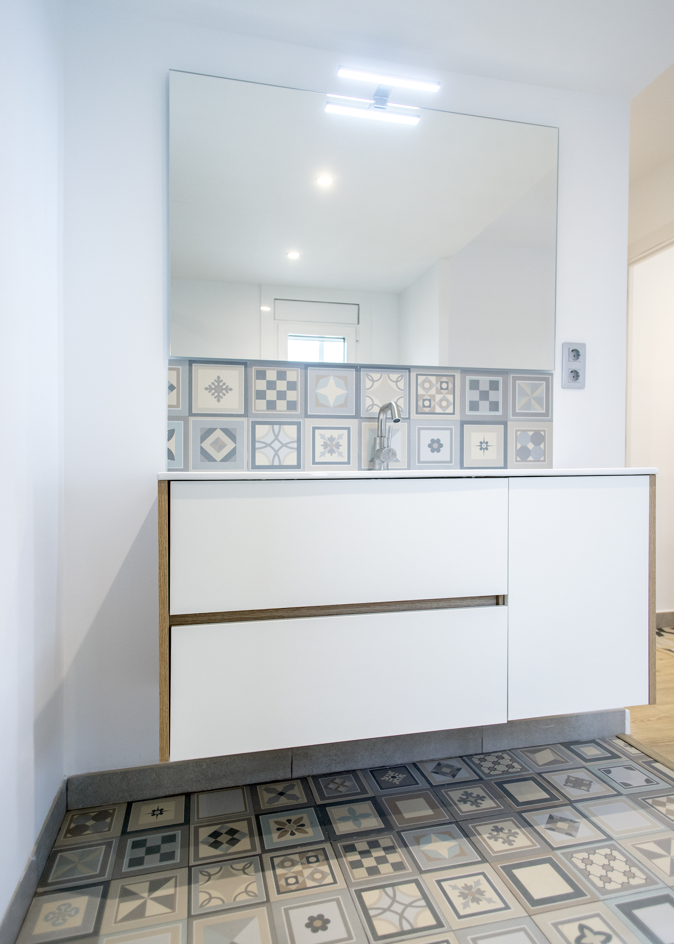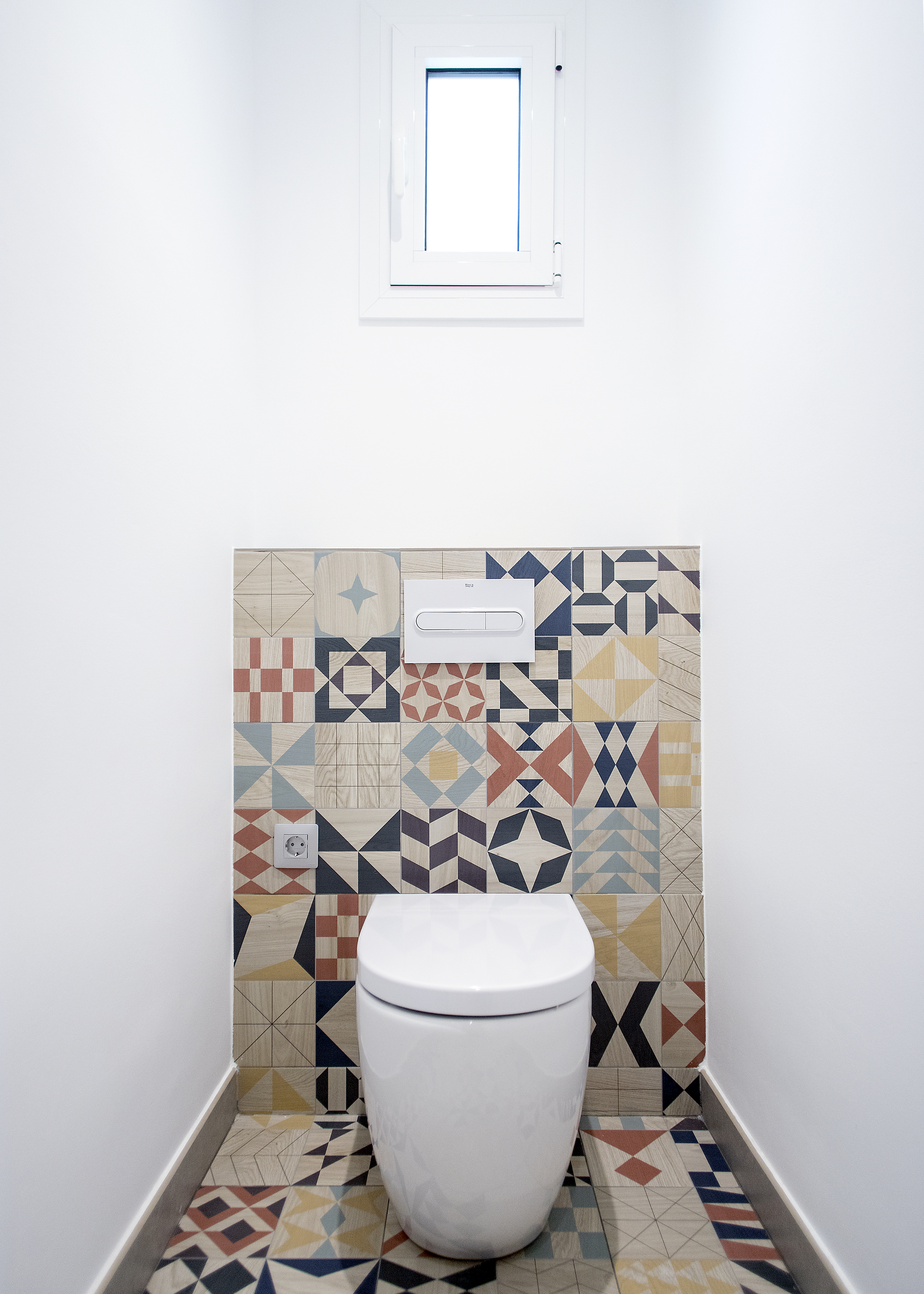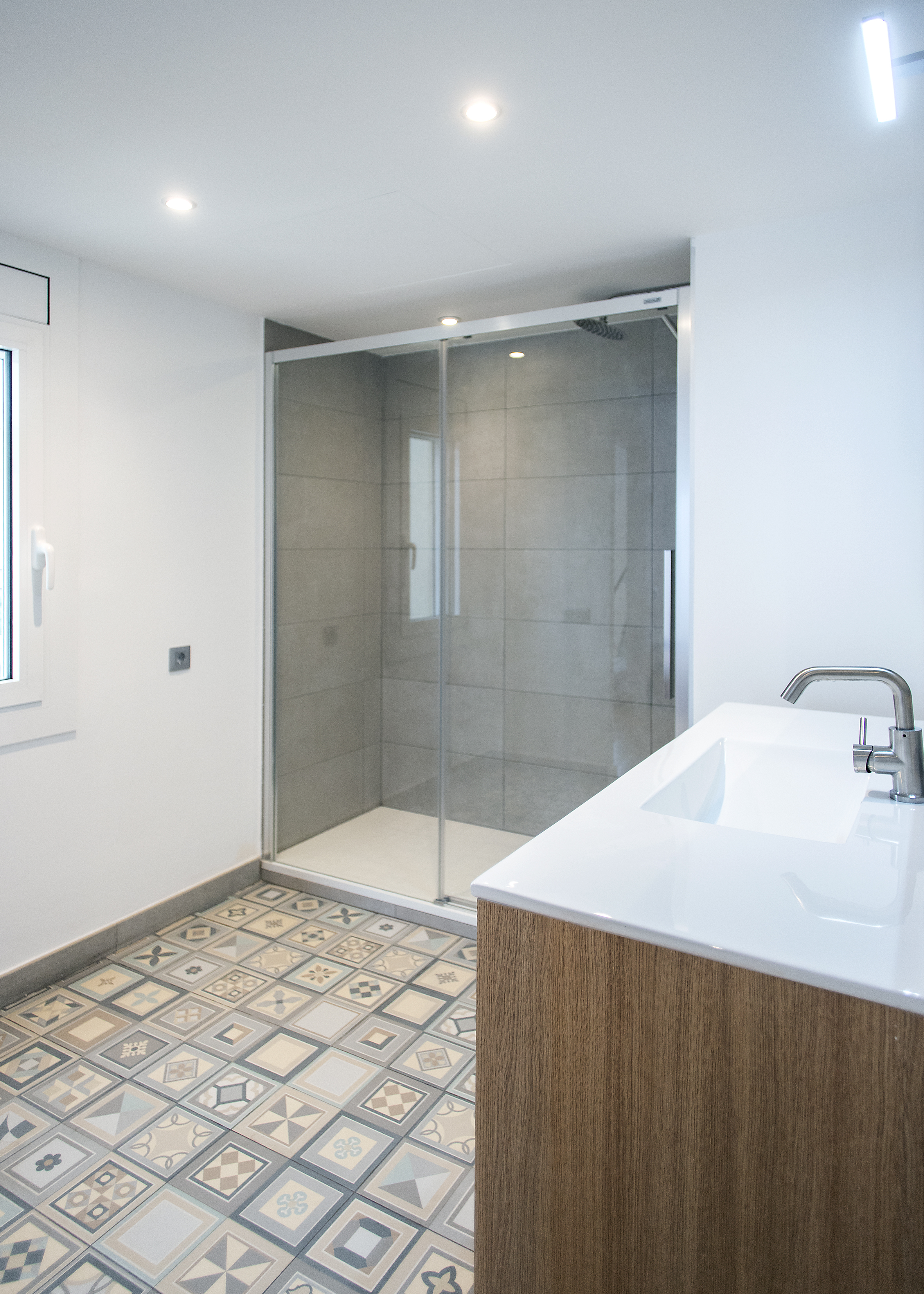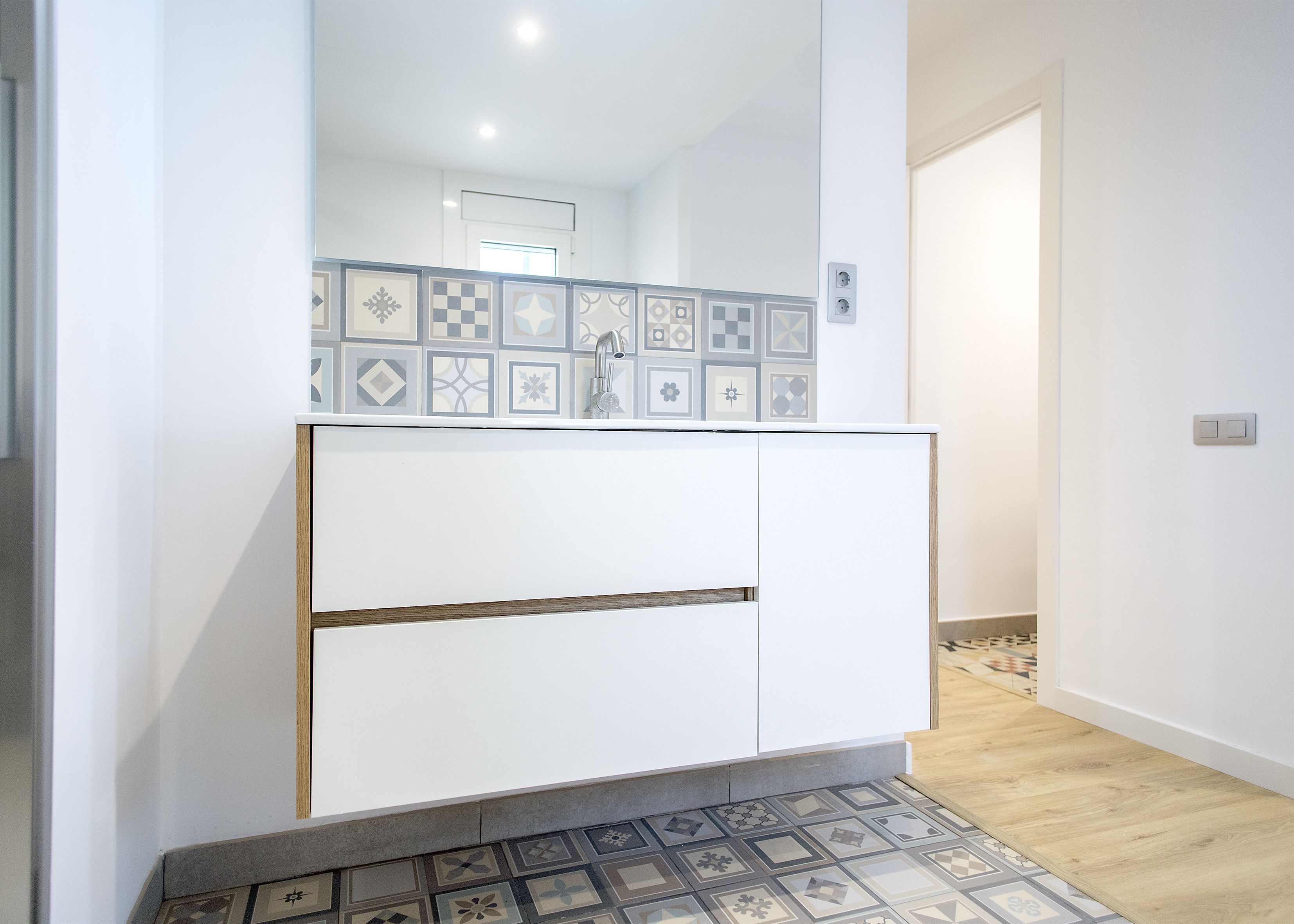 With regard to the interior design of the bathroom, neutral tones were chosen that generated spacious and bright rooms. The walls were tiled half-way with tiled hydraulic type, while the rest of the wall was painted white. In this way it is achieved that natural light can expand in every corner and achieve very pleasant environments.