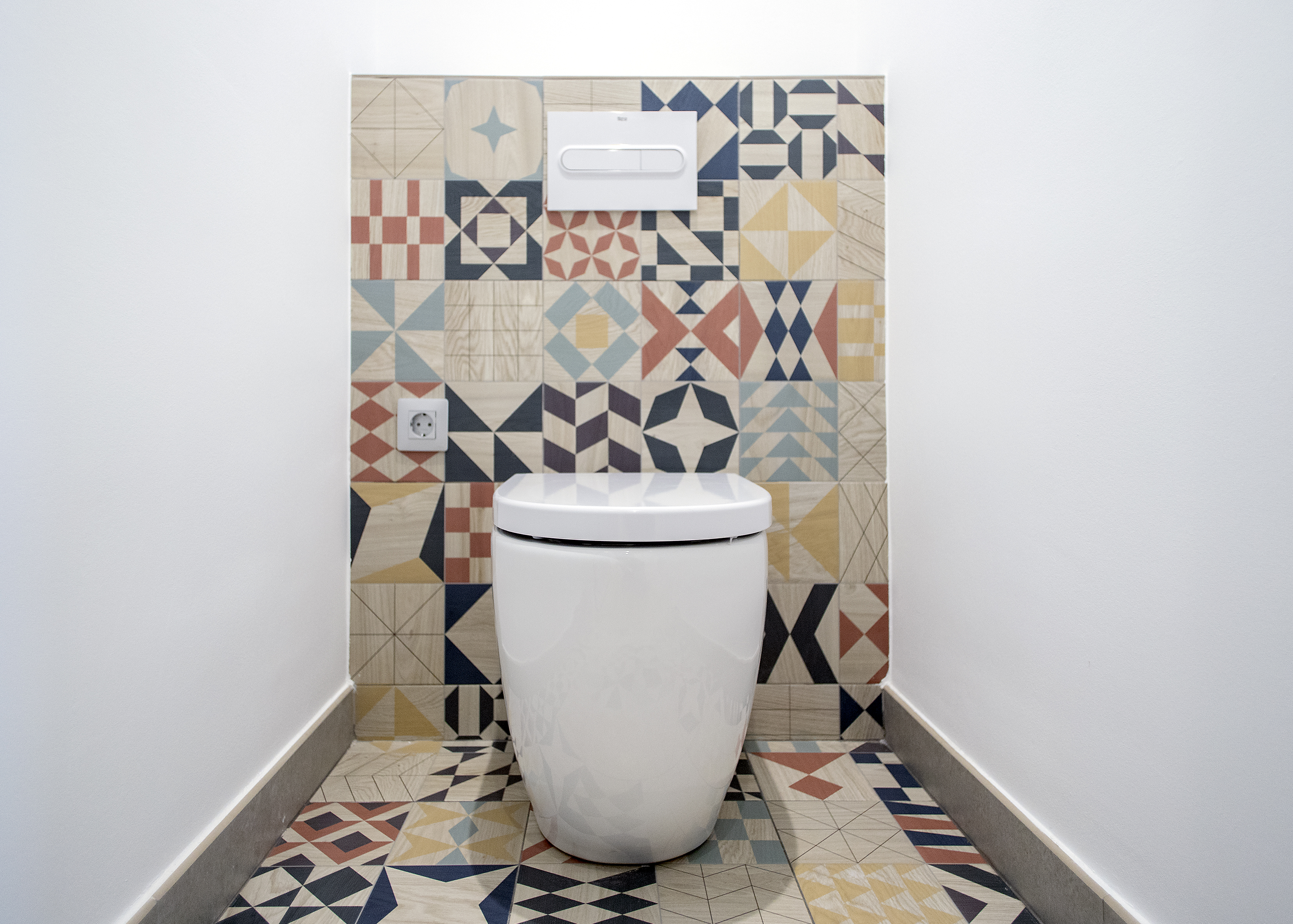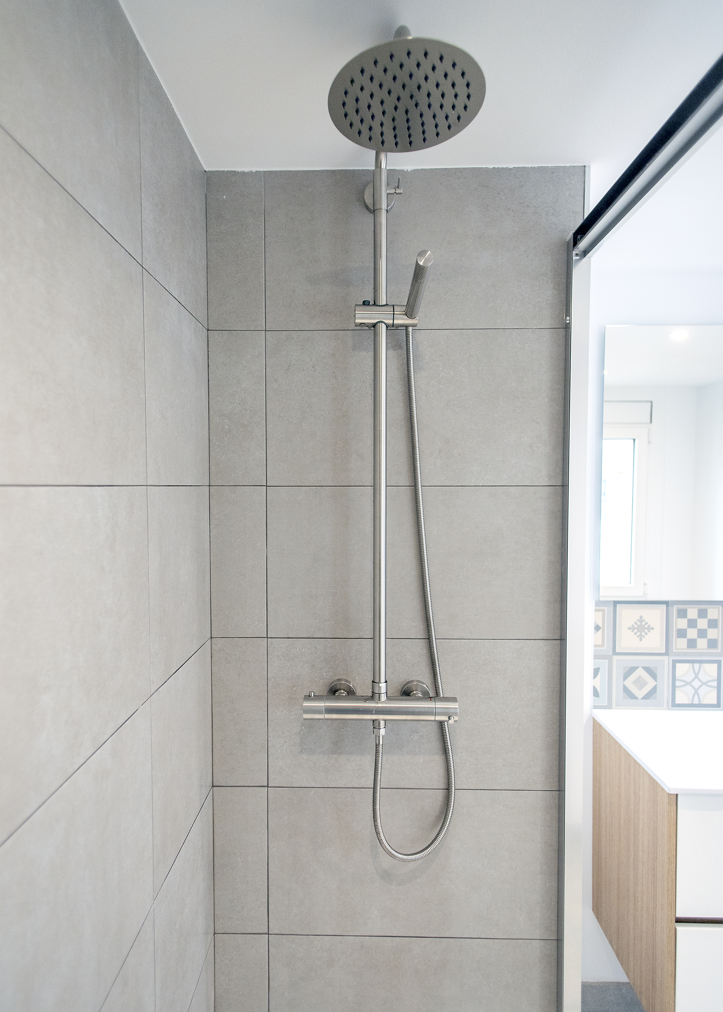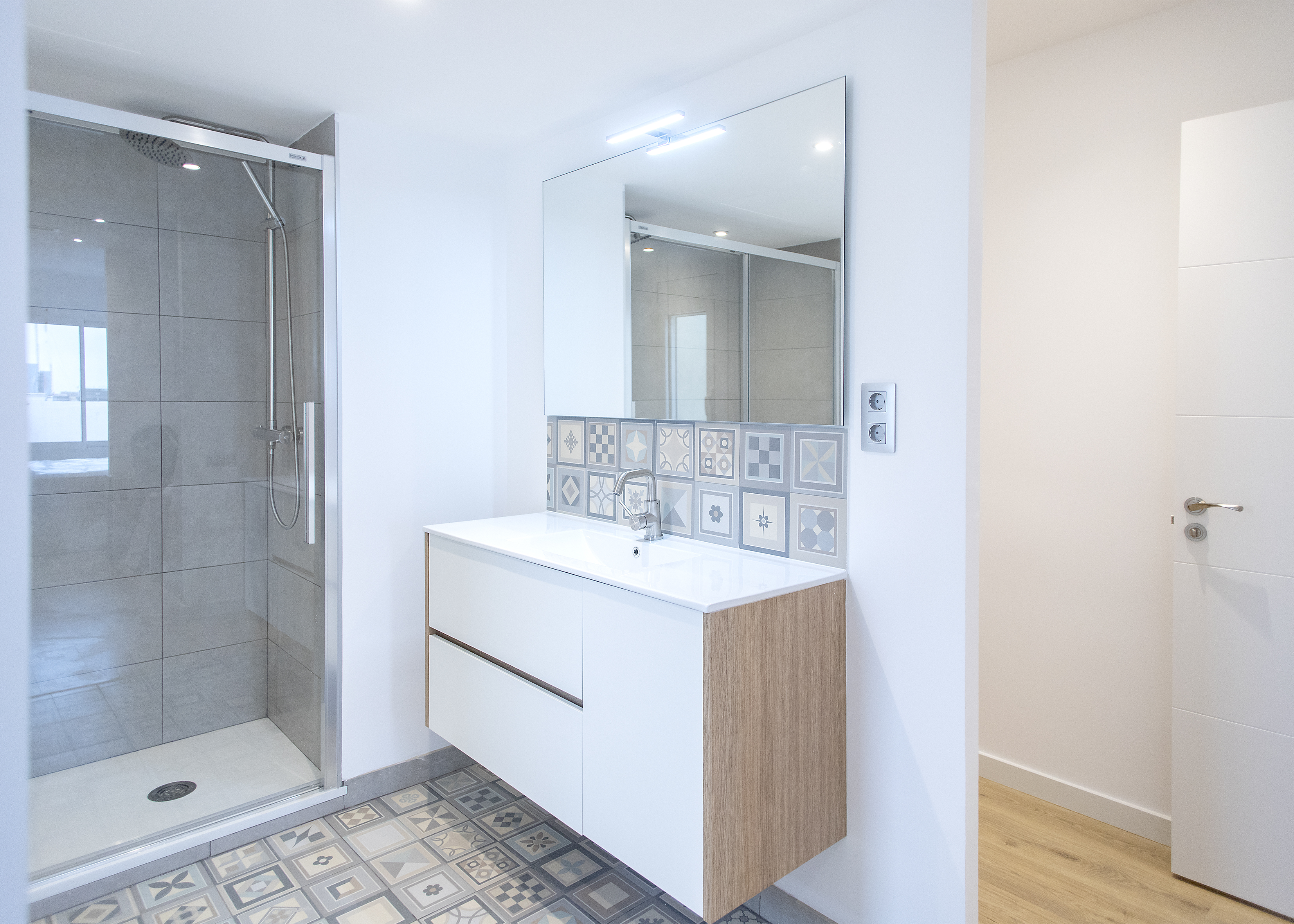 With regard to the interior design of the bathroom, neutral tones were chosen that generated spacious and bright rooms. The walls were tiled half-way with tiled hydraulic type, while the rest of the wall was painted white. In this way it is achieved that natural light can expand in every corner and achieve very pleasant environments.