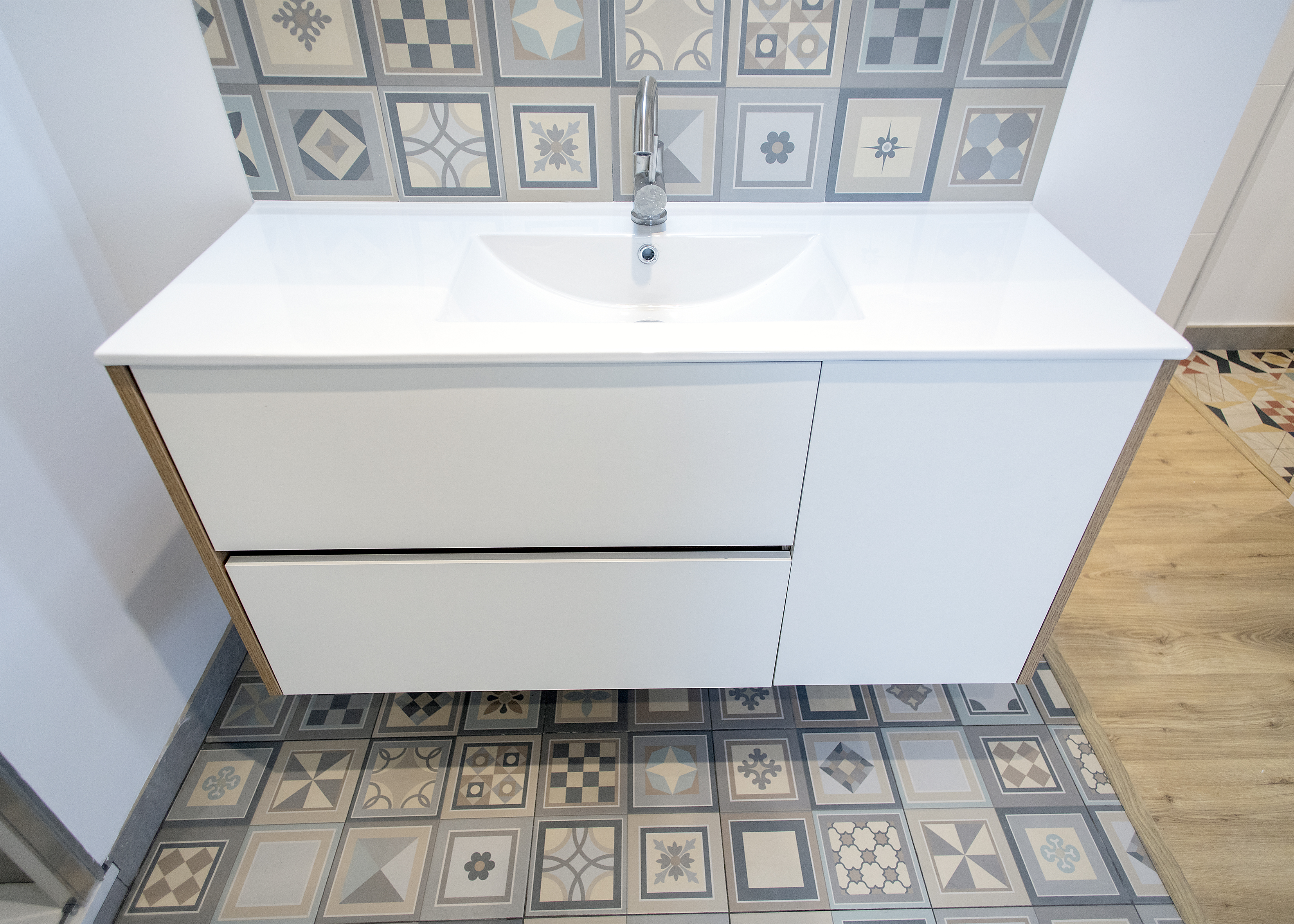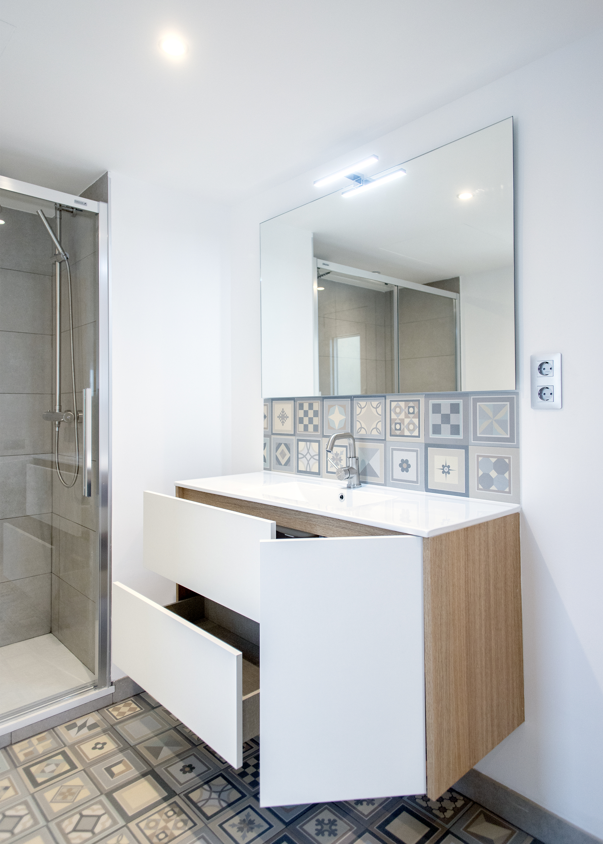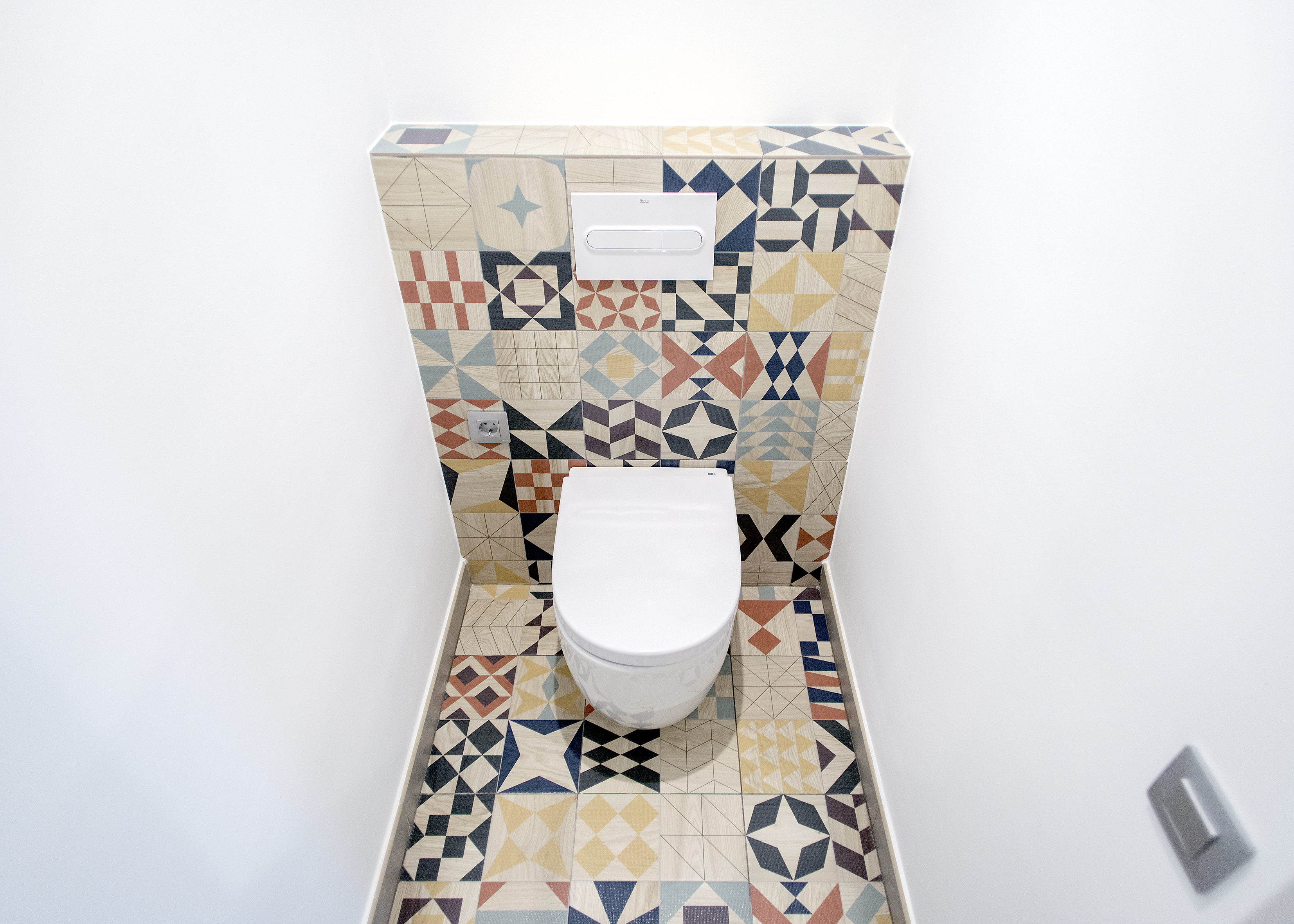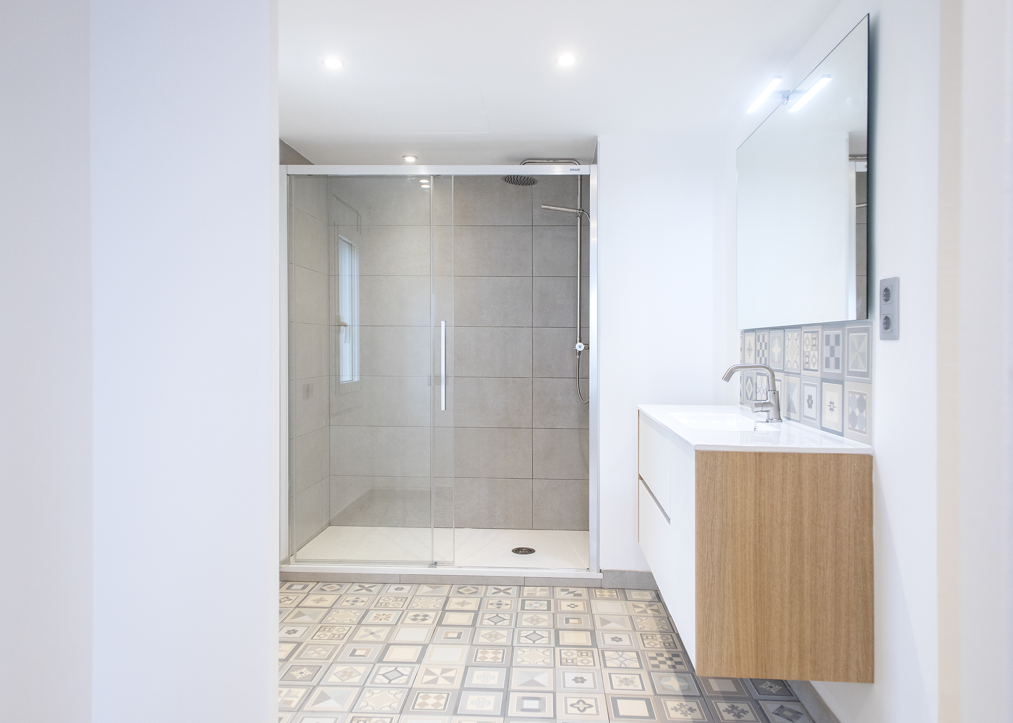 With regard to the interior design of the bathroom, neutral tones were chosen that generated spacious and bright rooms. The walls were tiled half-way with tiled hydraulic type, while the rest of the wall was painted white. In this way it is achieved that natural light can expand in every corner and achieve very pleasant environments.