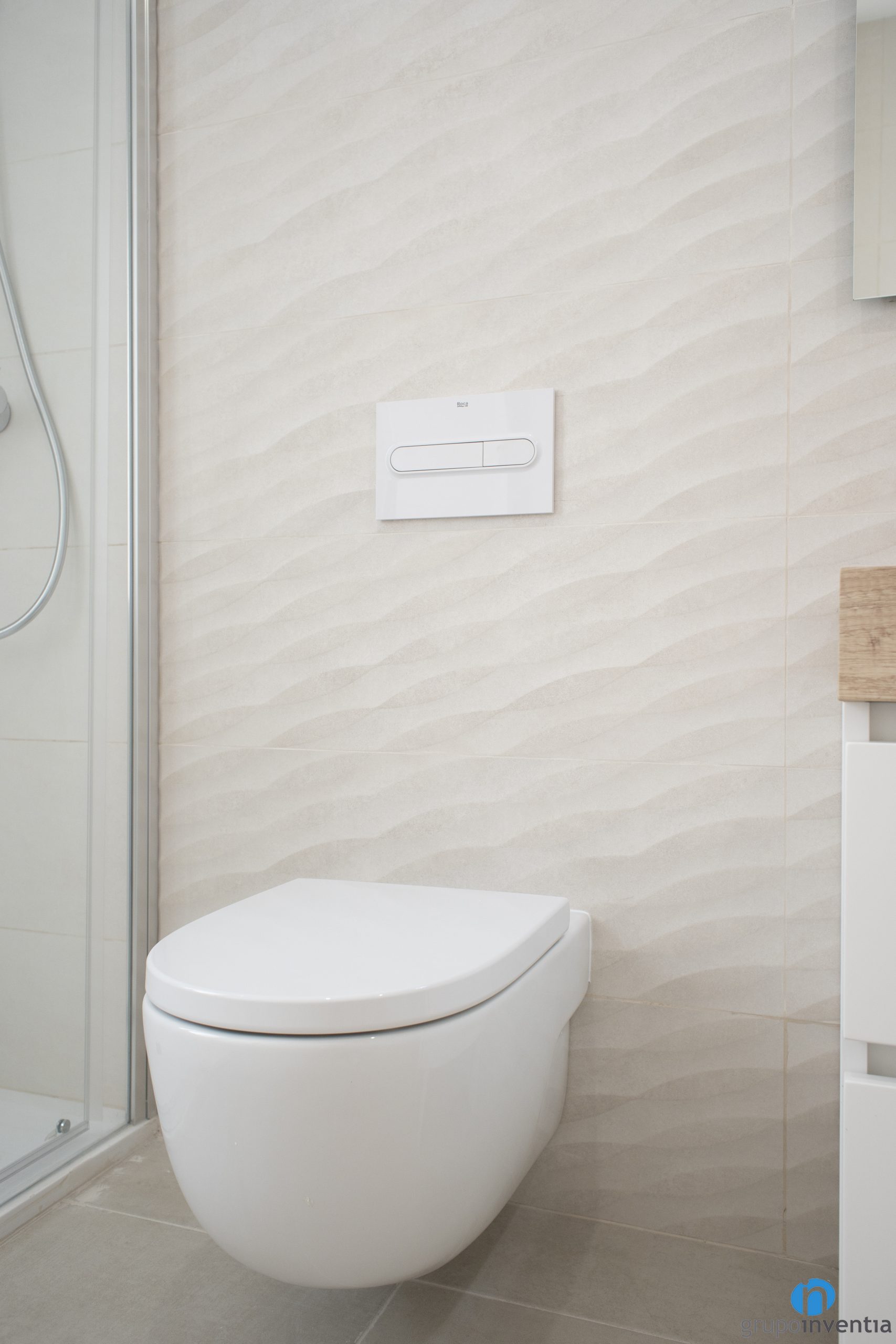 As for the sanitary equipment, each bathroom renovation has a sink, a toilet and a water area. For this last element we have installed a shower tray protected by a screen. We have used toilets with a modern image such as floating toilets, which provide more visual space.