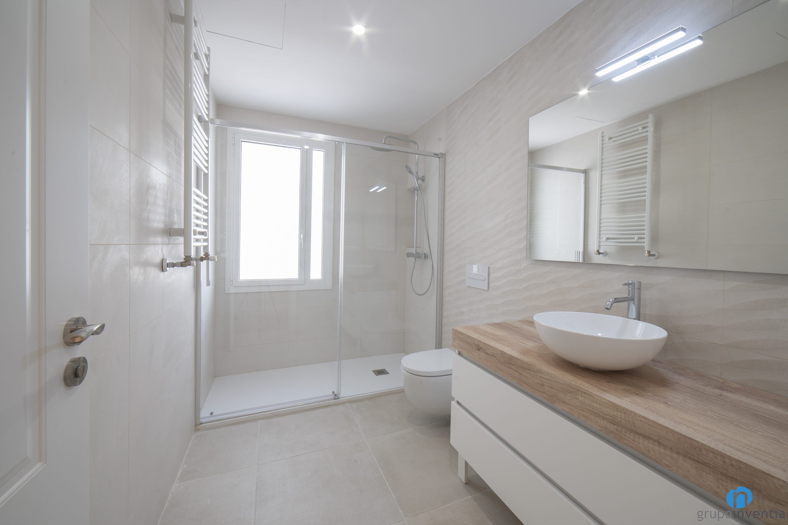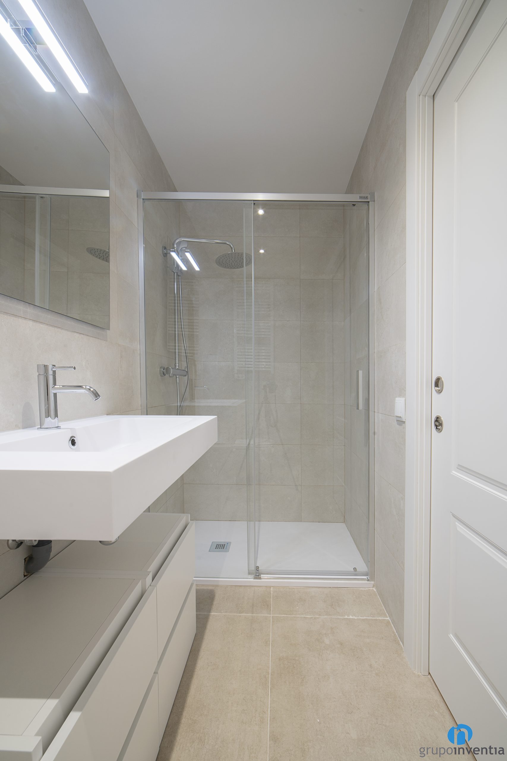 For the new image of this bathroom renovation, we have opted for a neutral and timeless style. Neutral tones are the protagonists and we have achieved two very bright and welcoming spaces. We have tiled the walls completely with azulejos in soft shades of gray and beige.