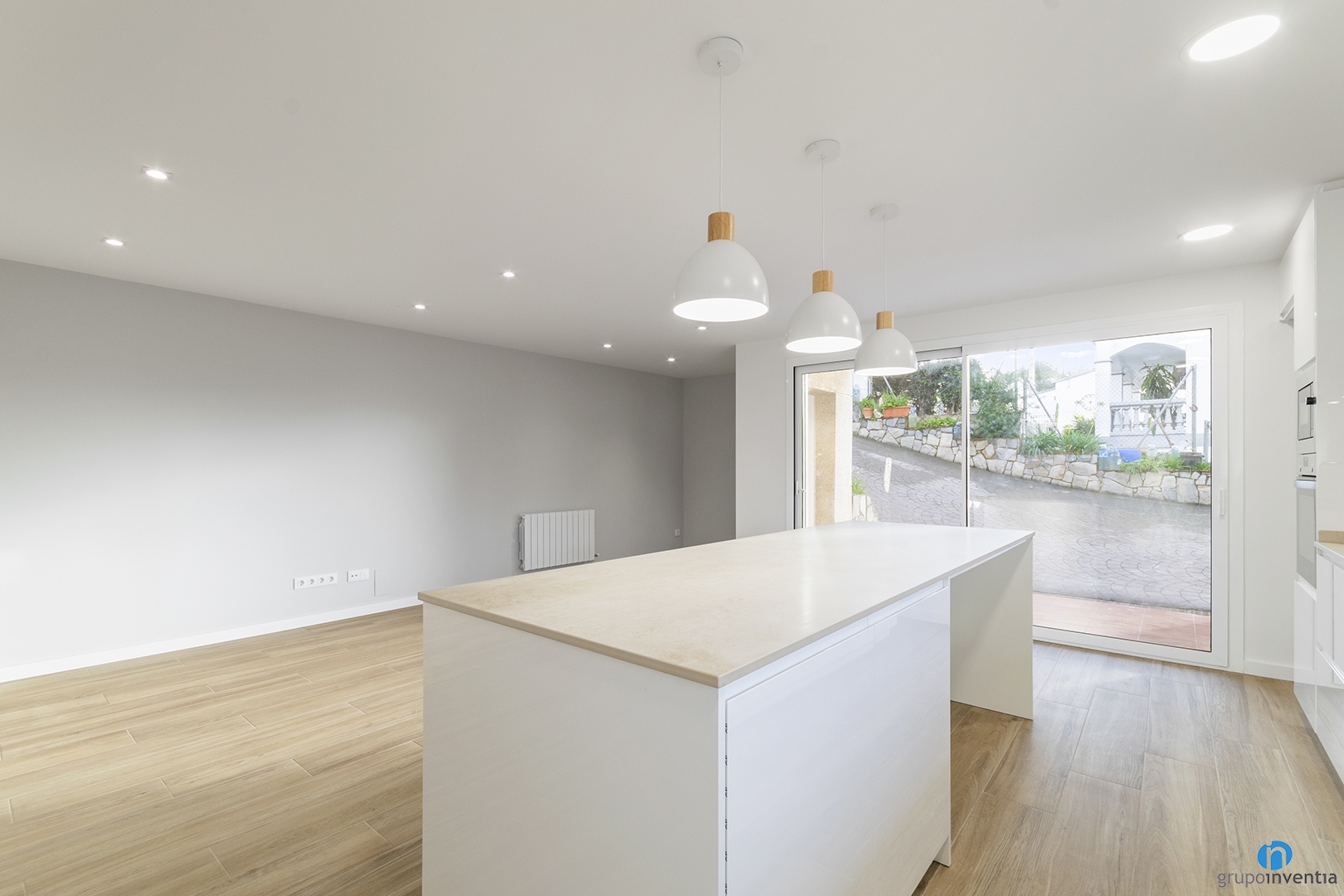 The original state was that of a garage, so the change is considerable. From a gray and dark image we have managed to create bright and spacious spaces. The new house has a large living area, an open kitchen, four bedrooms and two bathrooms. All this surrounded by a contemporary design in neutral tones.