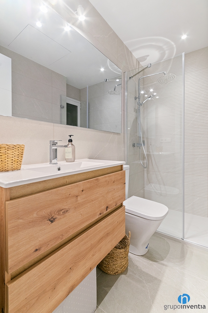 We have also improved the image of the bathrooms, integrating it into the overall comprehensive reform. In this way, we have tiled the walls in soft beige. daily use
