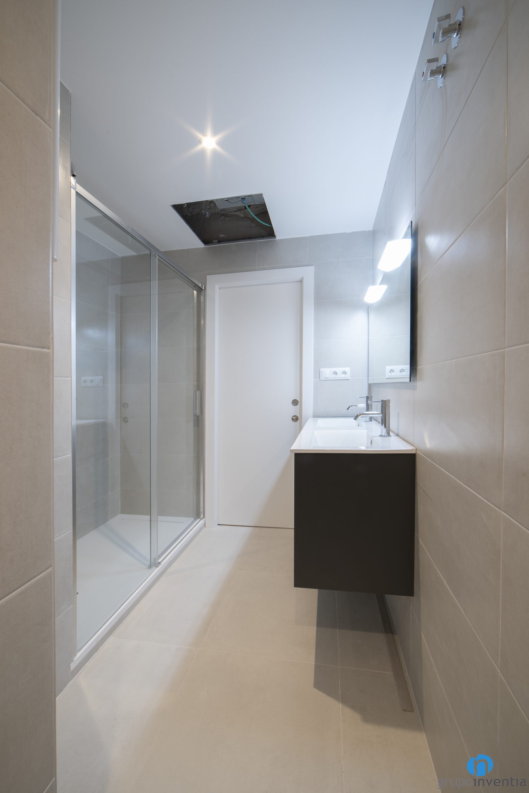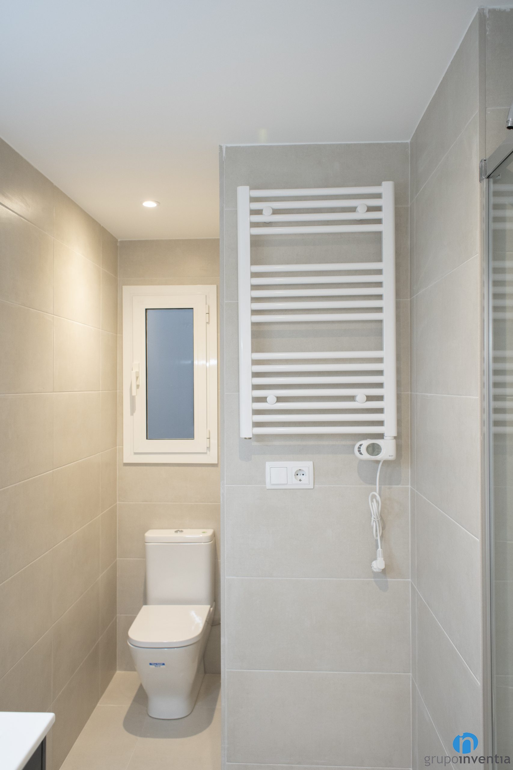 The new sanitary equipment in the bathrooms is composed of three sanitary pieces. First we placed a toilet with built-in storage furniture. This way we guarantee a correct organization of hygiene products. It is accompanied by a classic-style toilet and a water area composed of a shower tray.