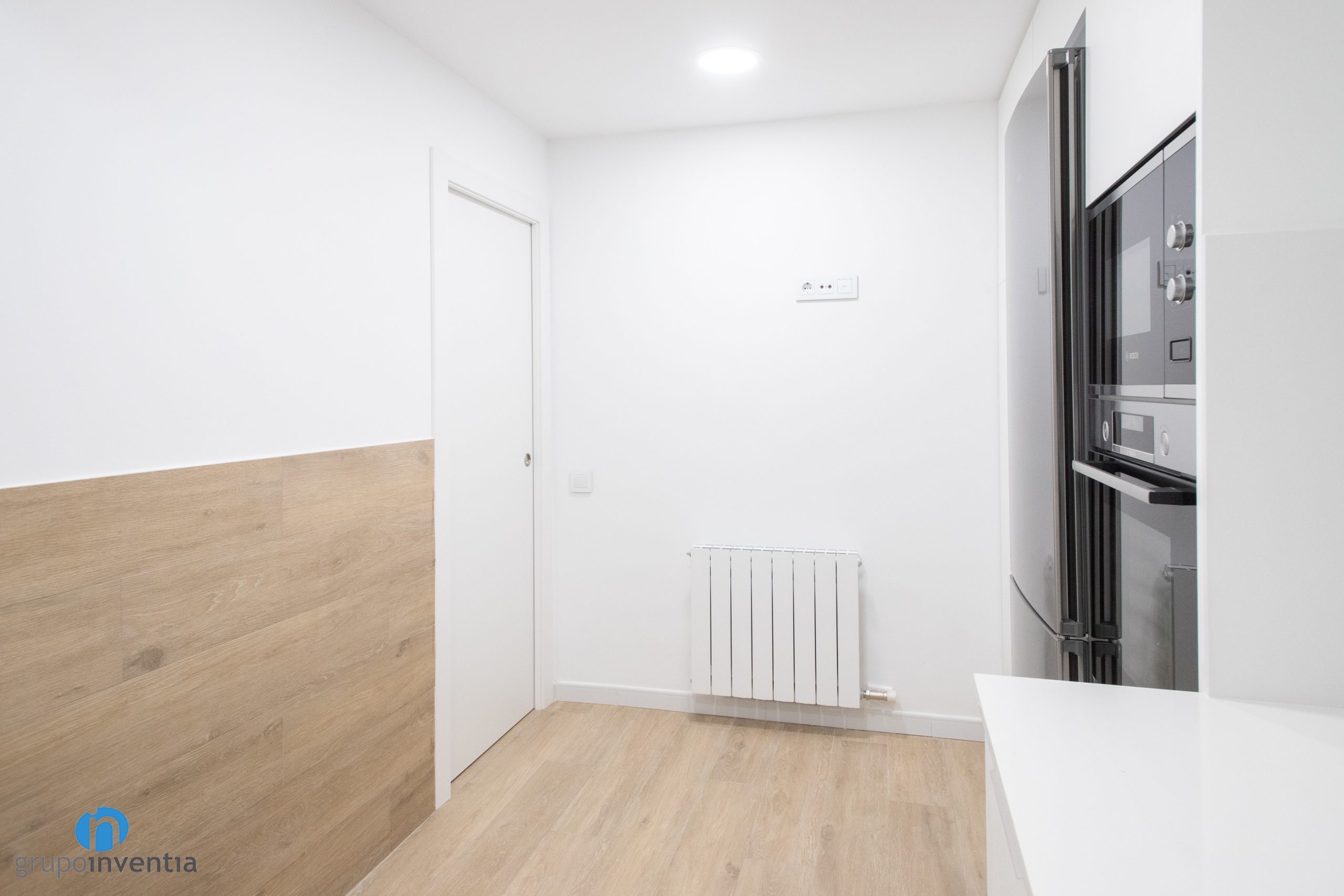 The walls are spaces such as the livingroom or bedrooms have been painted white. In this way natural light expands to every corner of the house. For the new doors and plinths, the color white has also been used, thus achieving a homogeneous and unified image. The perfect complement has been the placement of an imitation parquet ceramic floor. Now you can see a warm image that is ideal for a home.
