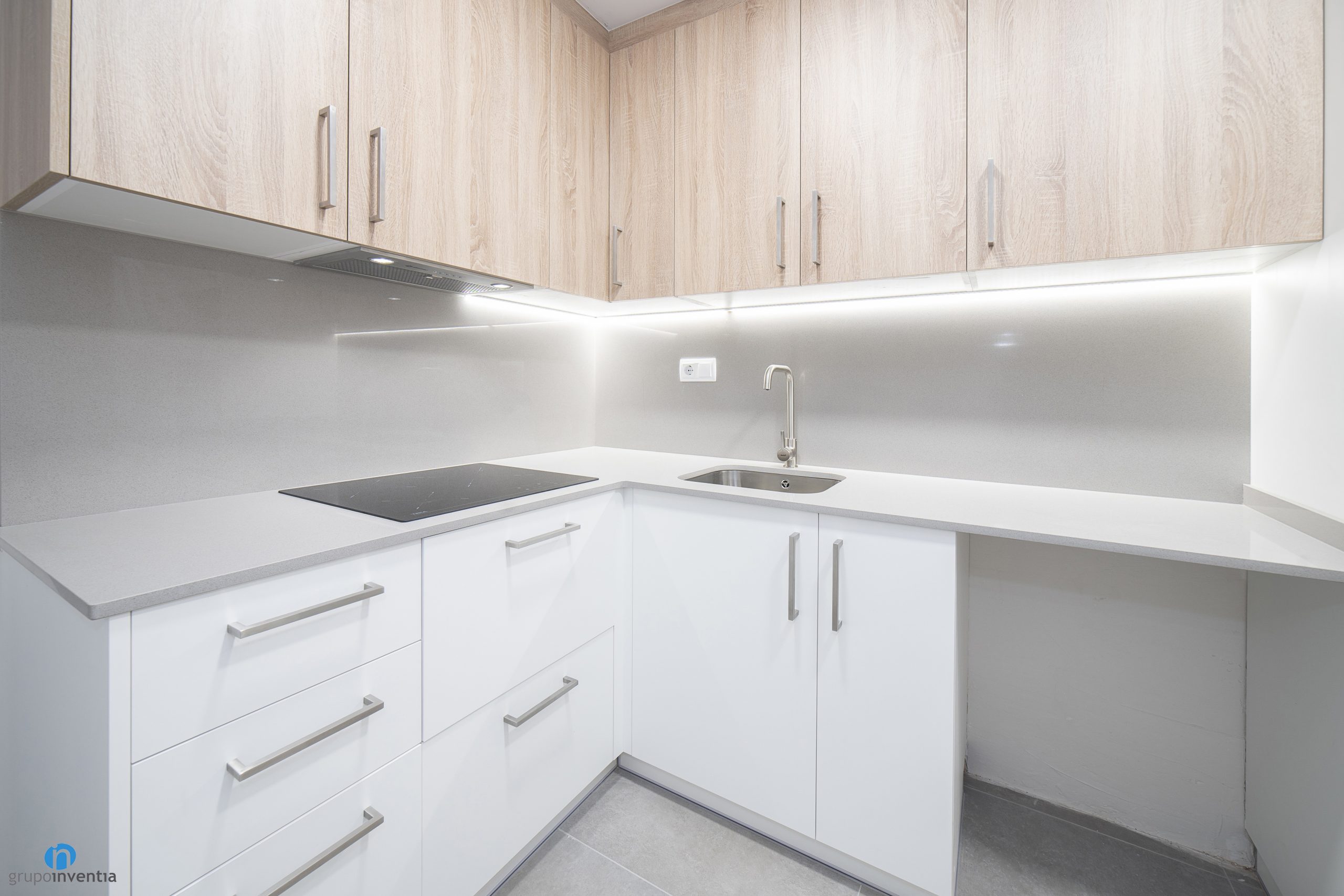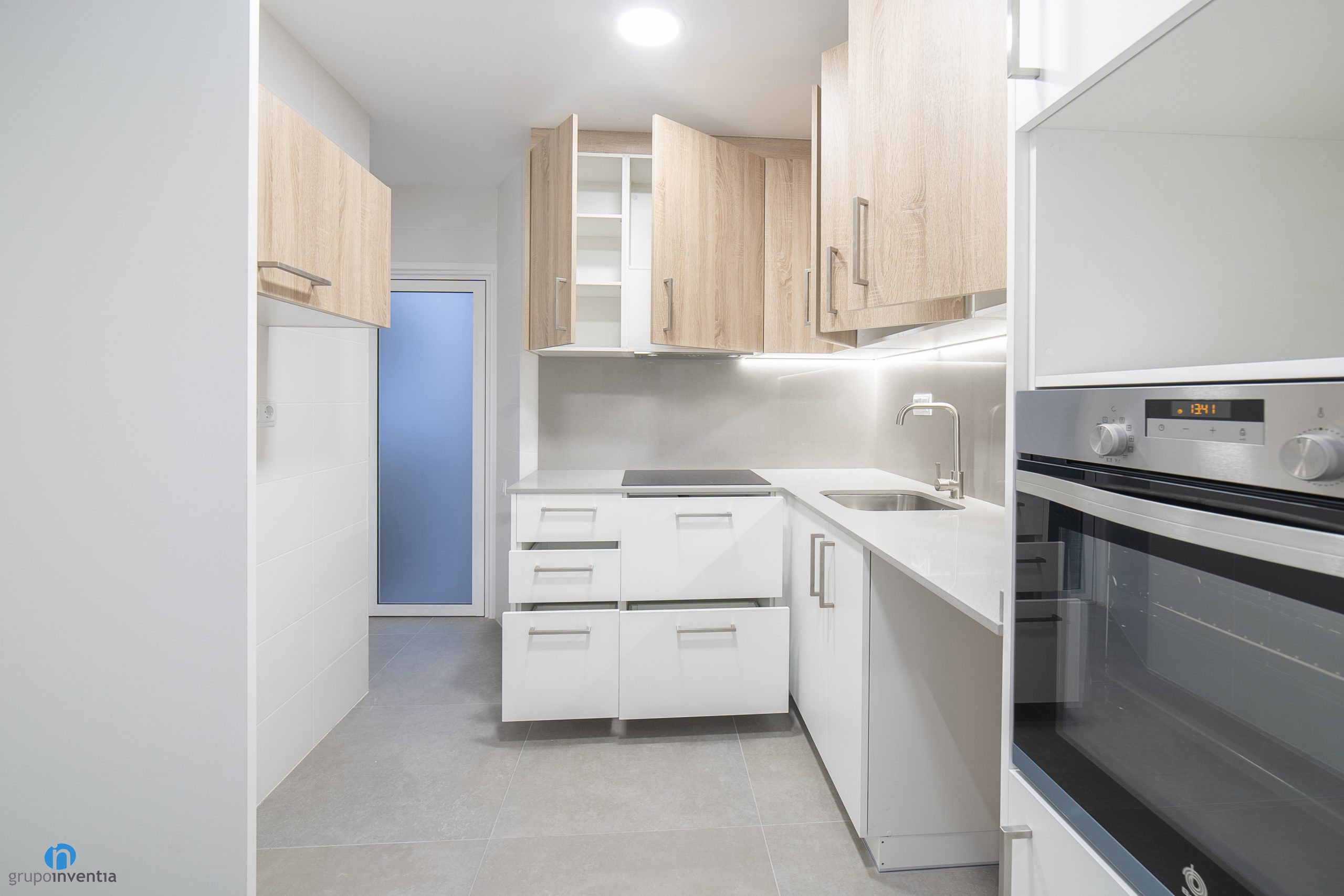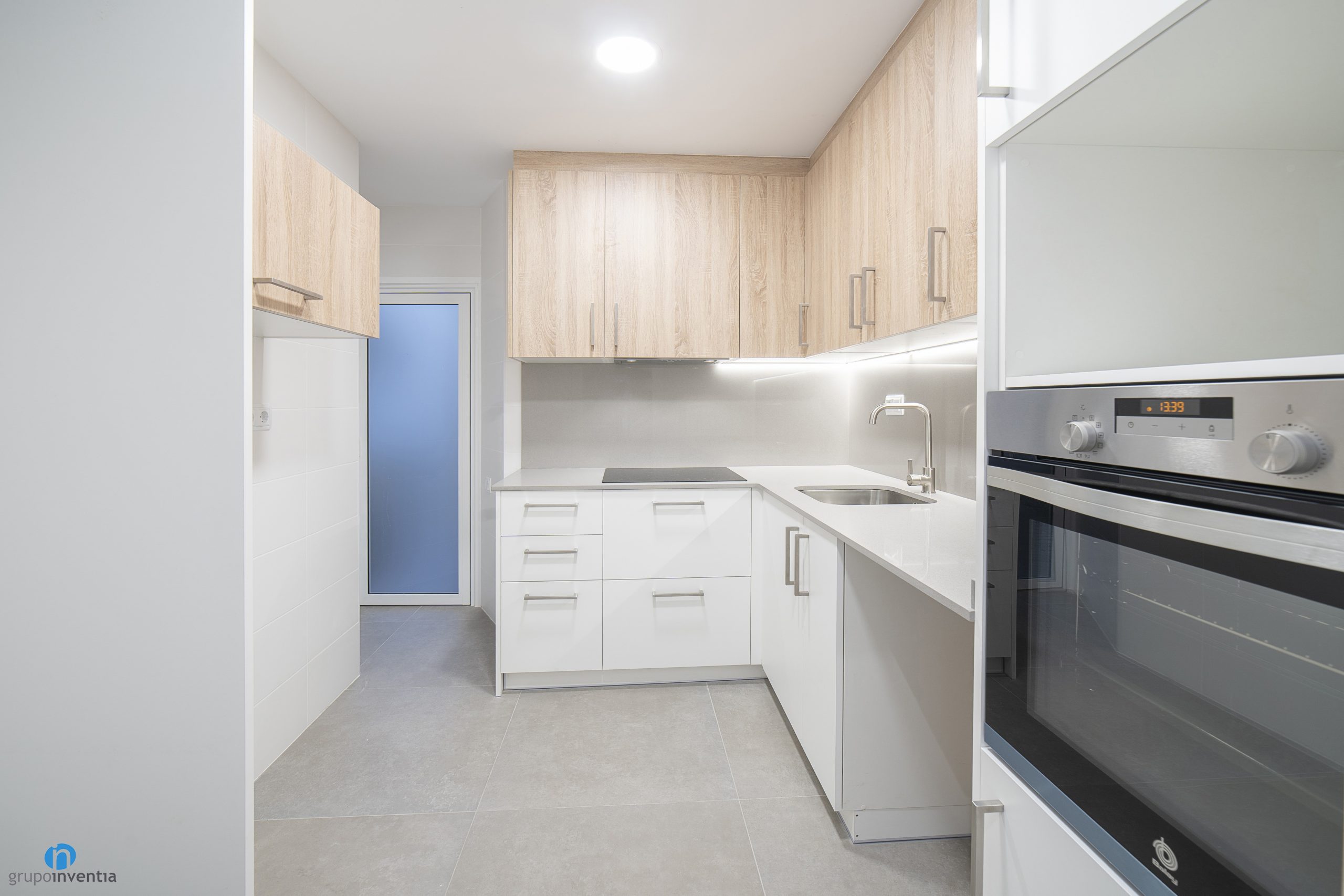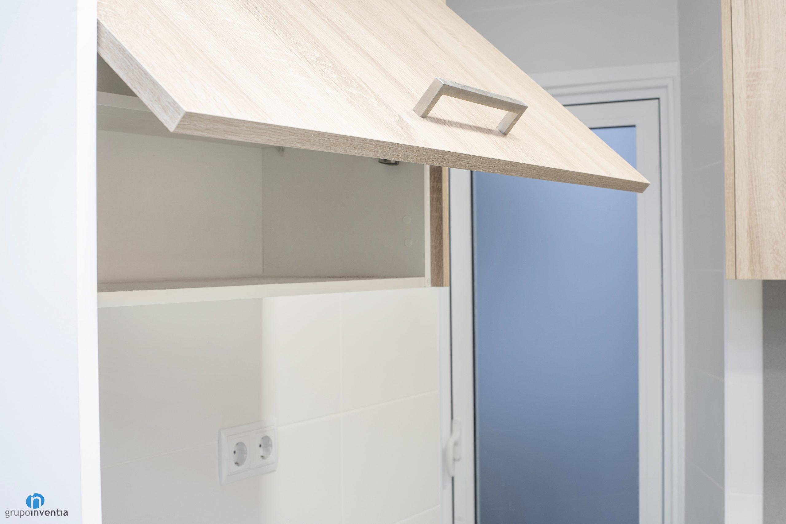 As in many of the house renovations we carry out at Grupo Inventia, the kitchen has been completely renovated. It is accessed through a sliding door, so it is located in a separate room. In this case the kitchen is spacious and the new elements have been arranged through an L-shaped layout.