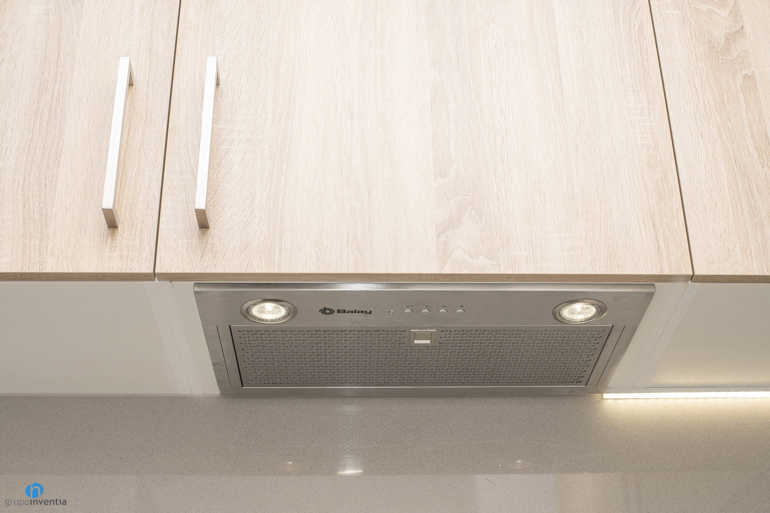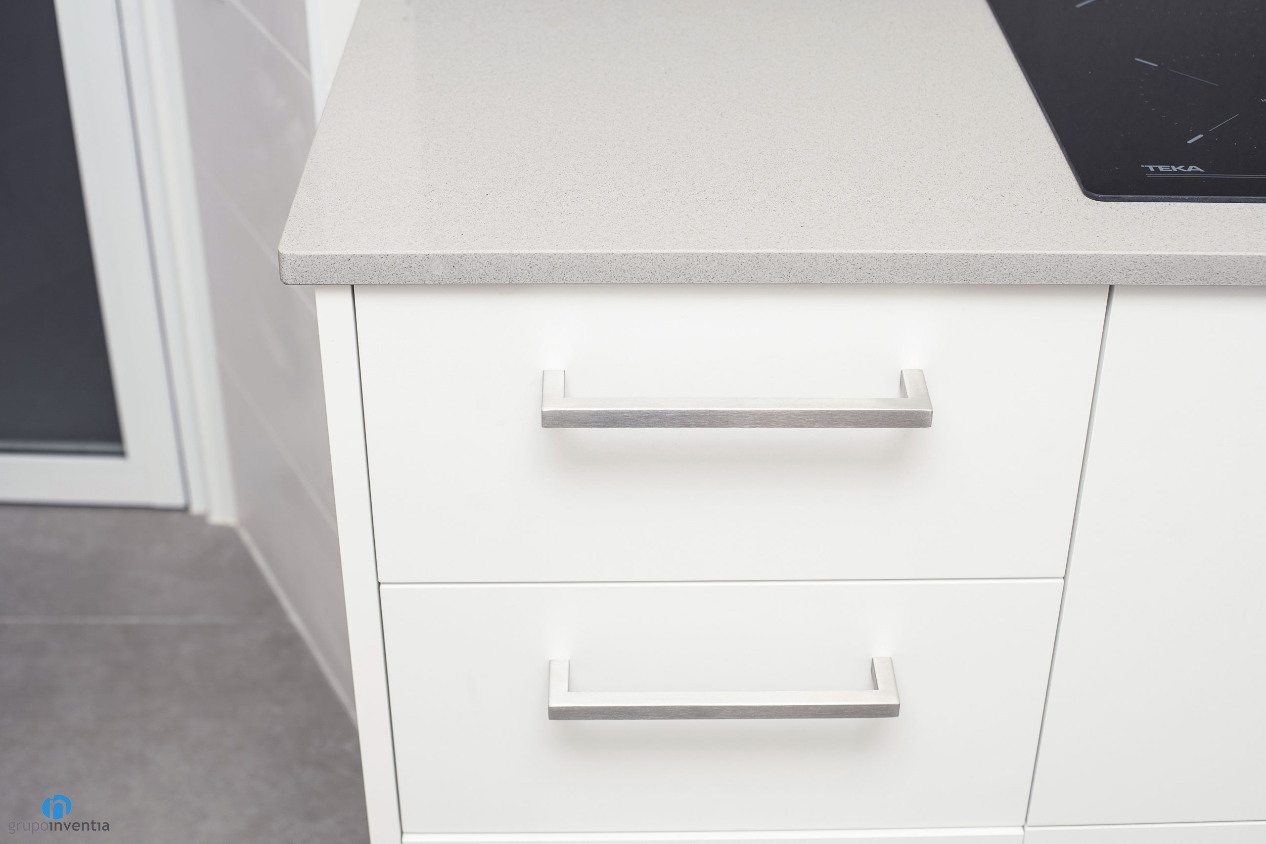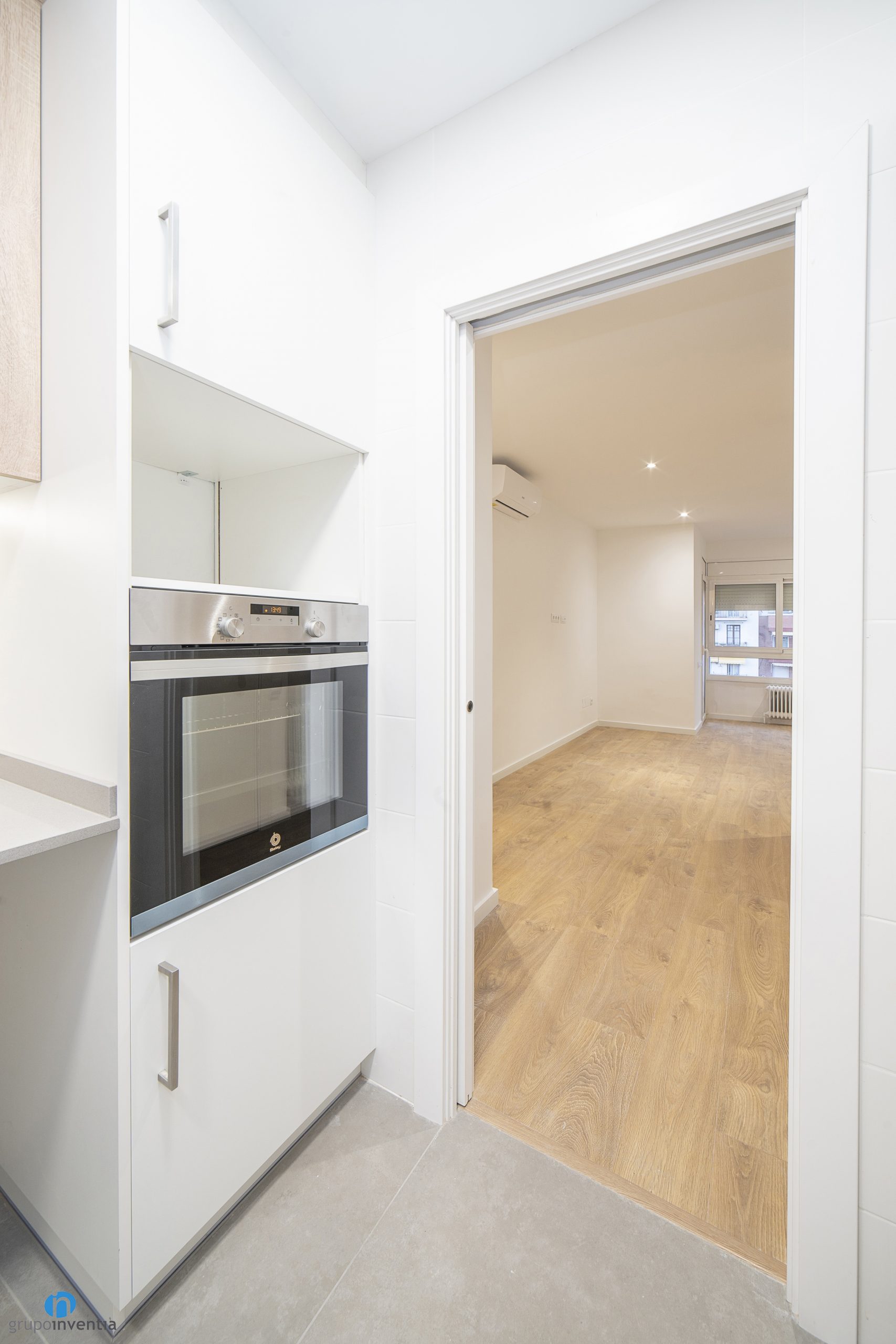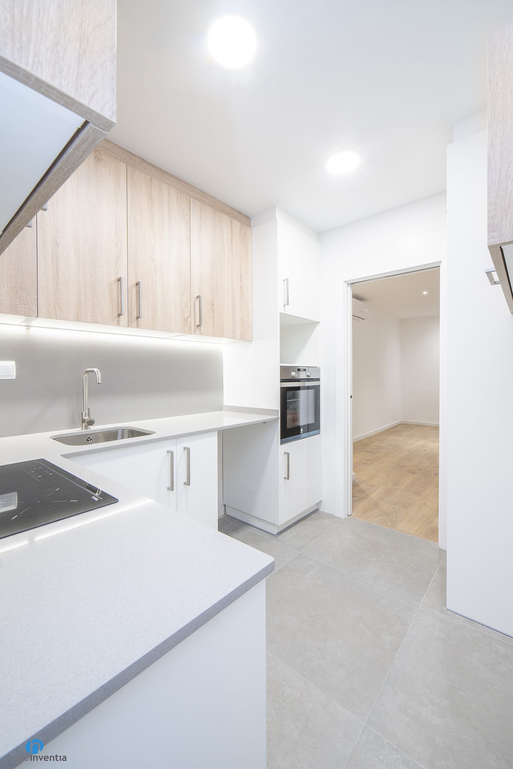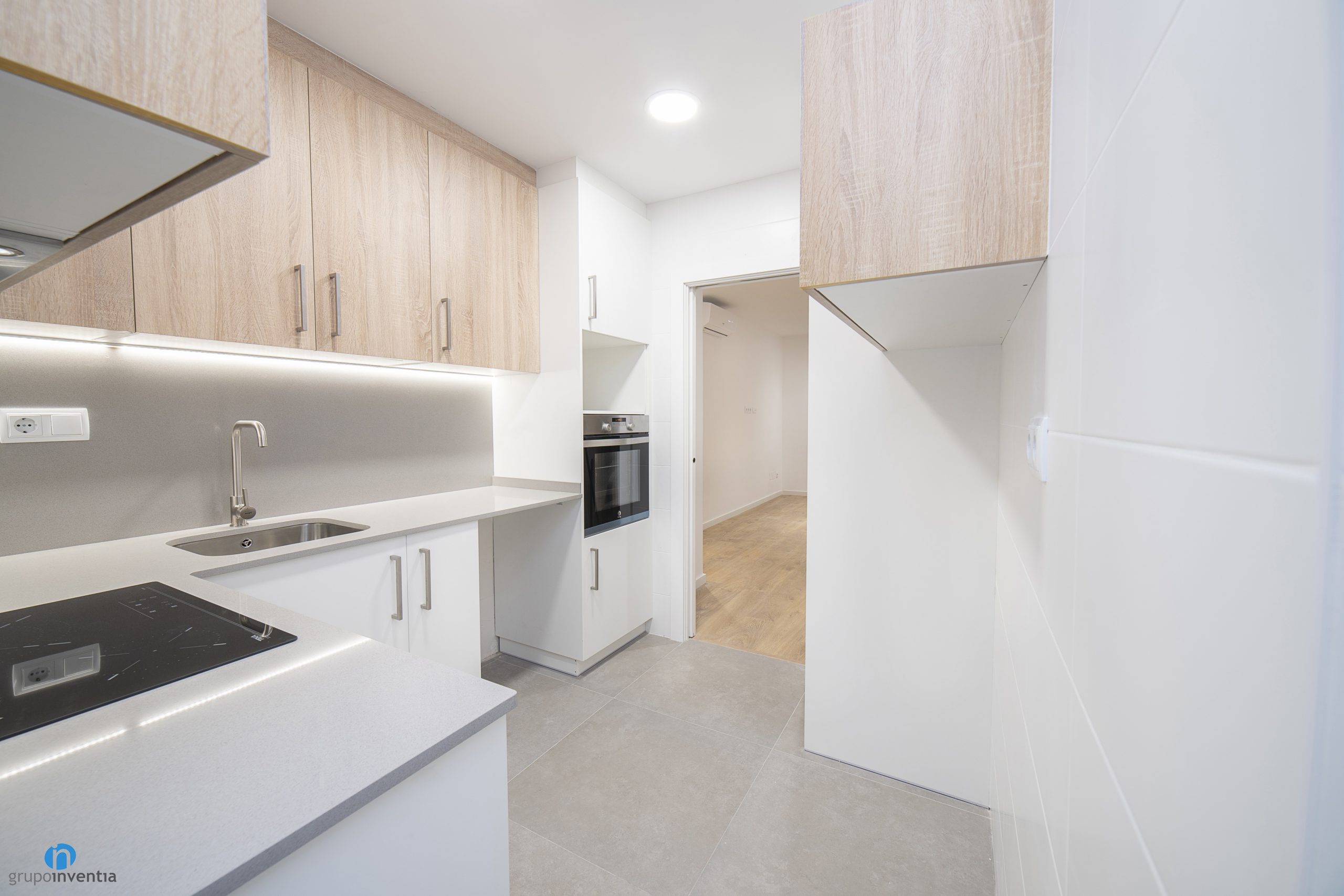 As in many of the house renovations we carry out at Grupo Inventia, the kitchen has been completely renovated. It is accessed through a sliding door, so it is located in a separate room. In this case the kitchen is spacious and the new elements have been arranged through an L-shaped layout.