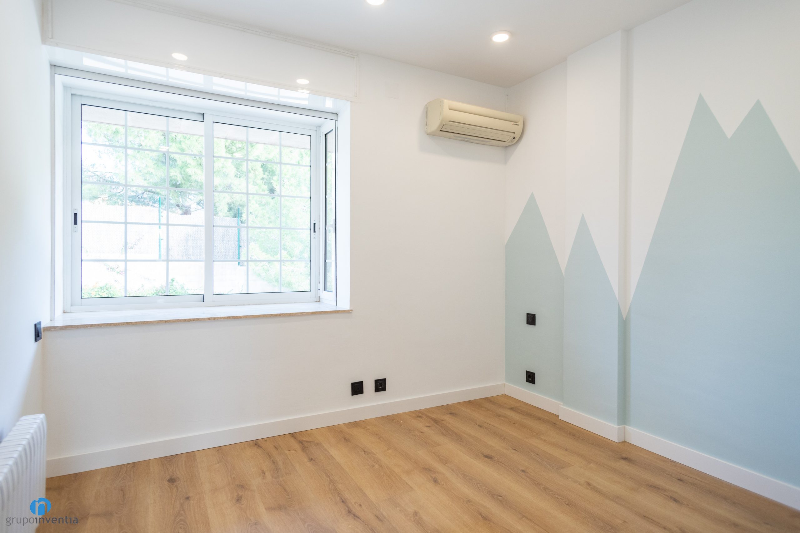 Based on this, our department of interior design in Barcelona has worked to generate bright and spacious spaces. Taking advantage of the large entrances of natural light, the walls have been painted in neutral tones to achieve this. In this way the walls of the living room are beige or in the bedrooms the white is combined with shades of blue and gray.