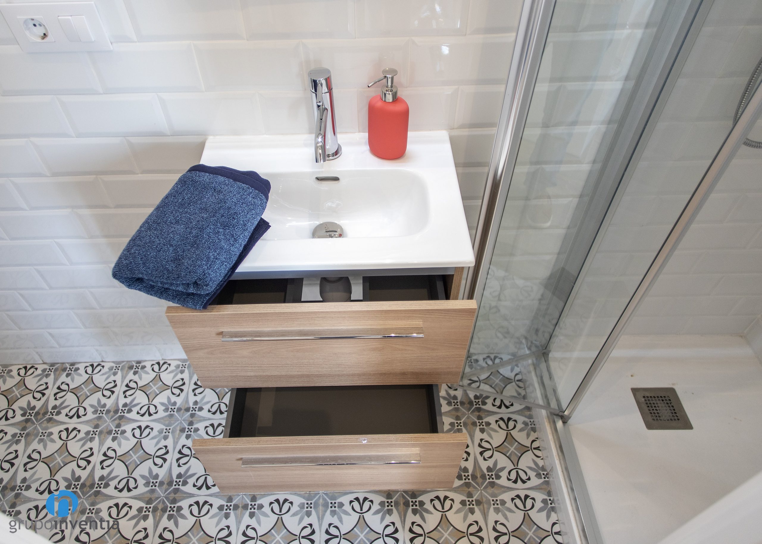 For the healthcare equipment, we have opted for functional, ready made three piece bathrooms to offer the best performance in their use. Thus, in each bathroom renovation, a sink with built-in storage furniture and a shower tray that is protected by sliding door bulkheads have been installed.