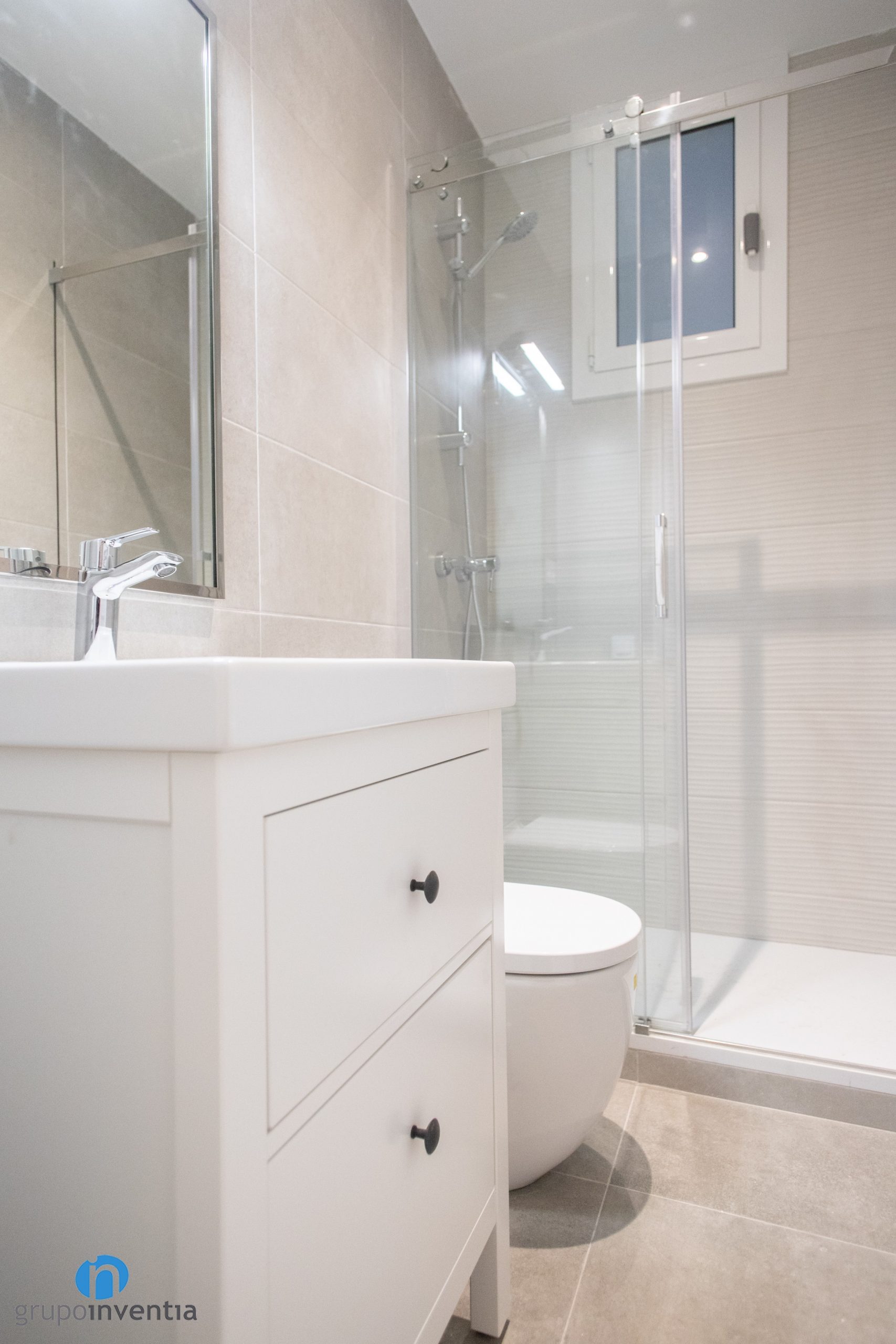 For its new image, neutral tones have been chosen, a perfect option for cozy spaces. The walls have been completely tiled with beige tiles, the same as the floor tiles. In this way, other finishes have been introduced, such as the white finish of the washbasin cabinet.