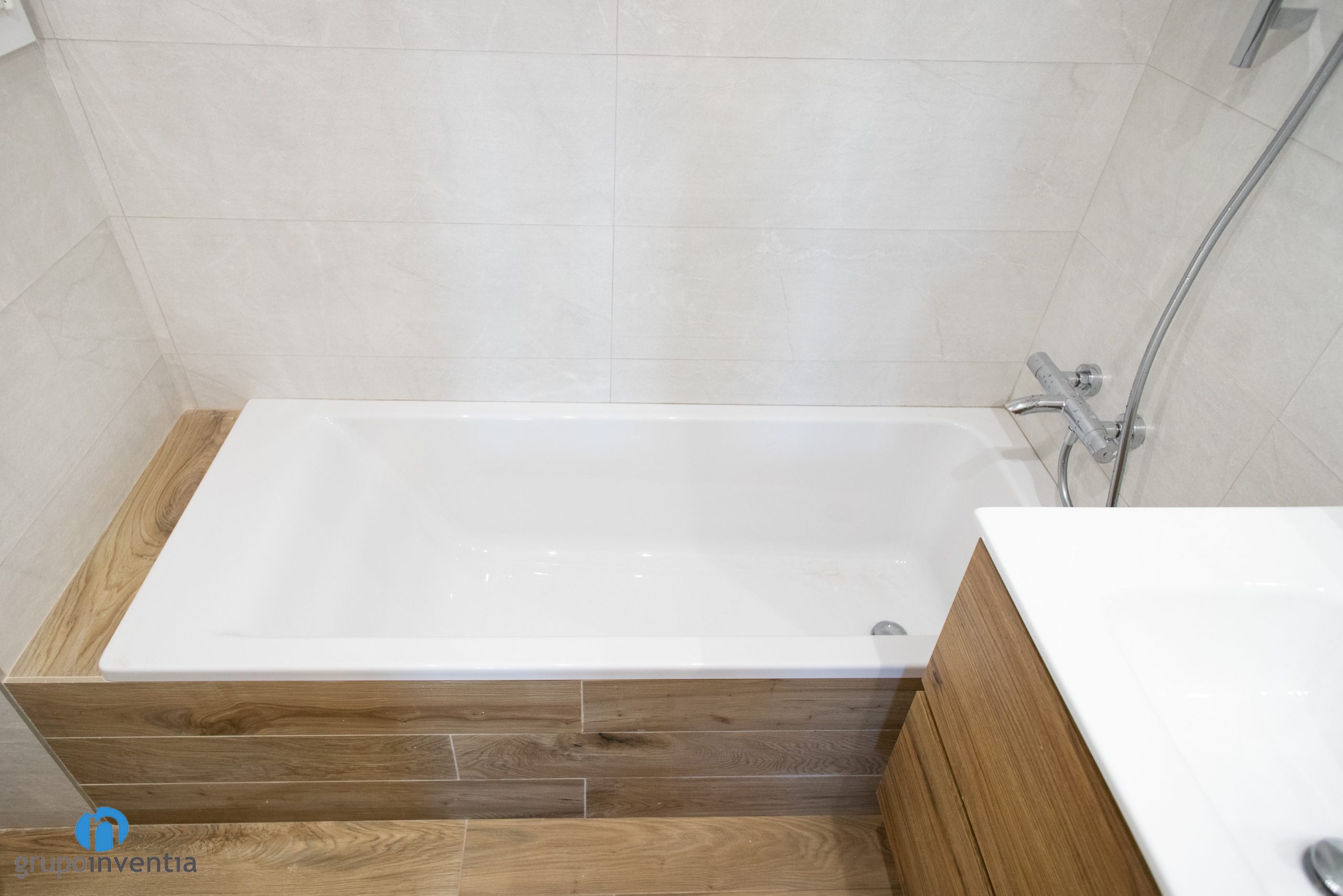 In this house renovation, the two bathrooms have also been completely renovated. In both cases, the sanitary equipment has been completely renewed. Each bathroom has a washbasin with storage furniture, a toilet and a water area. In the latter there are differences, since in one the bathtub has been maintained and in the other a shower tray has been placed.