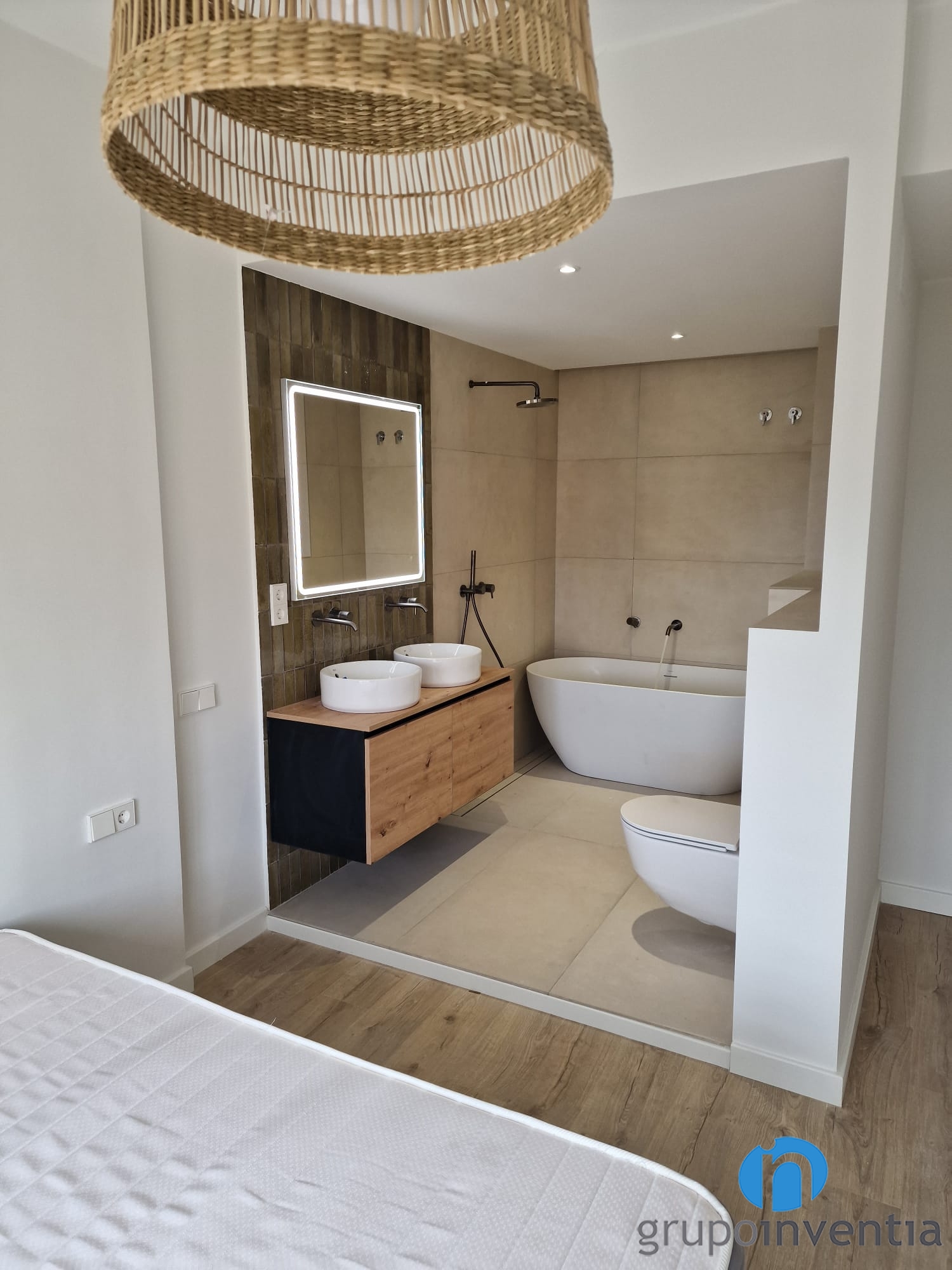 The bathroom suite is open to the bedroom and has modern and functional sanitary equipment. It has a double toilet with built-in storage furniture. Also a floating toilet and a water area for which a comfortable design bathtub has been chosen. A practical shower is also available for everyday use.