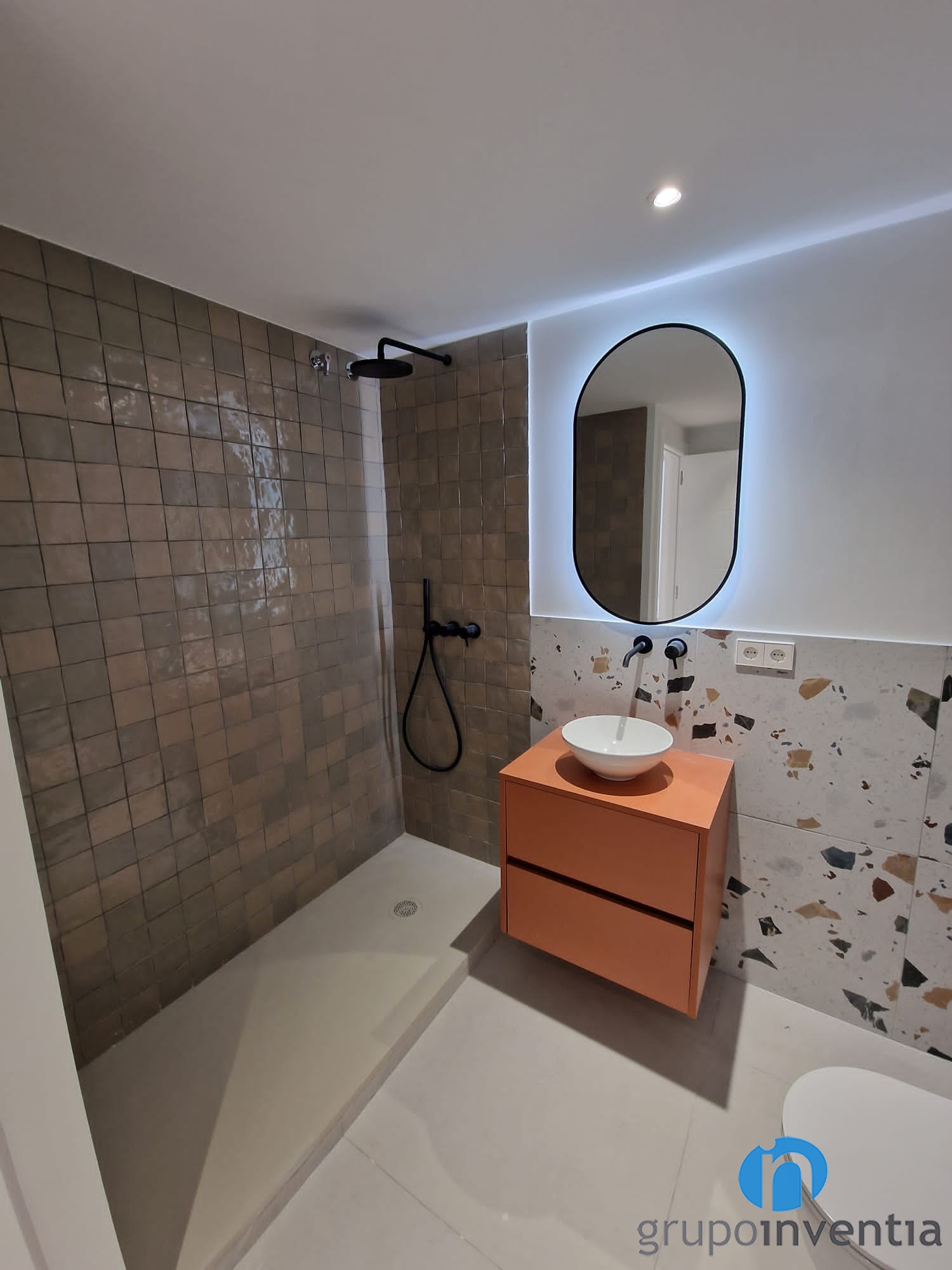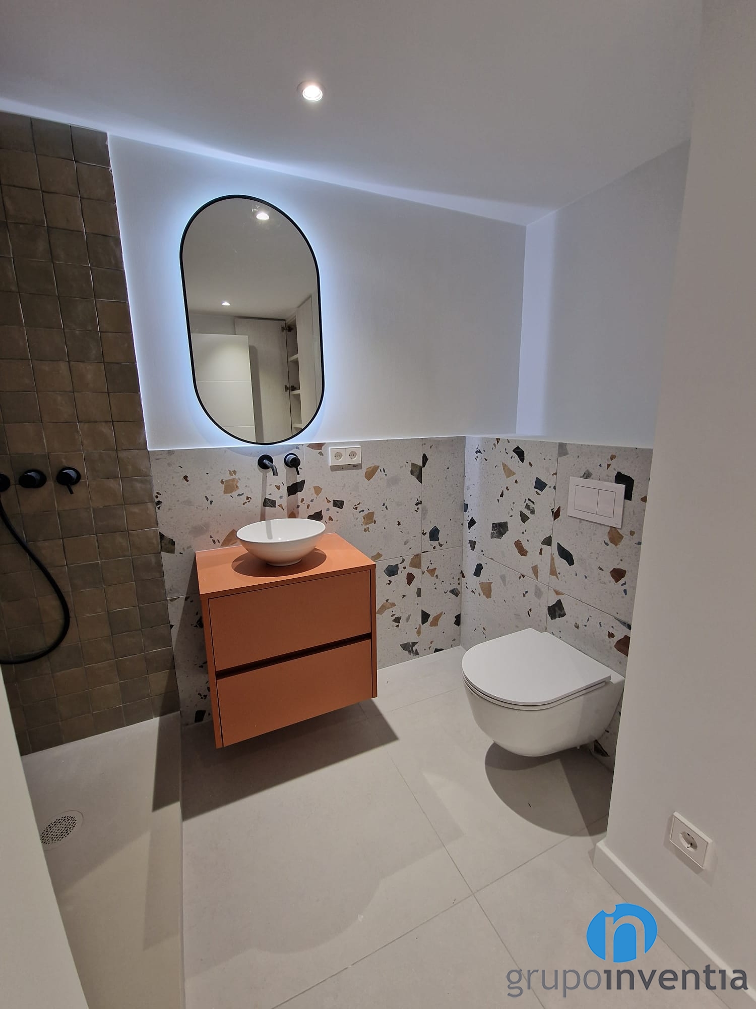 As we have mentioned, we have also taken care of the renovation of the courtesy bathroom. It is located in a large space that has been able to be fully equipped. Now it has a toilet with storage furniture, a floating toilet and a large shower tray. A bathroom that meets current needs.