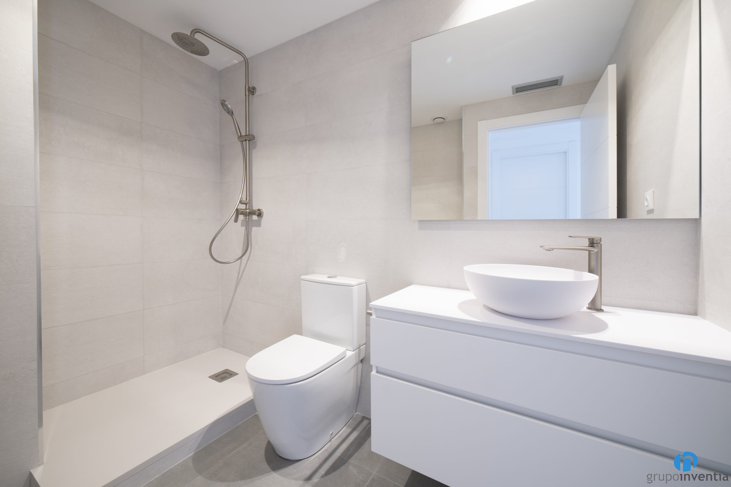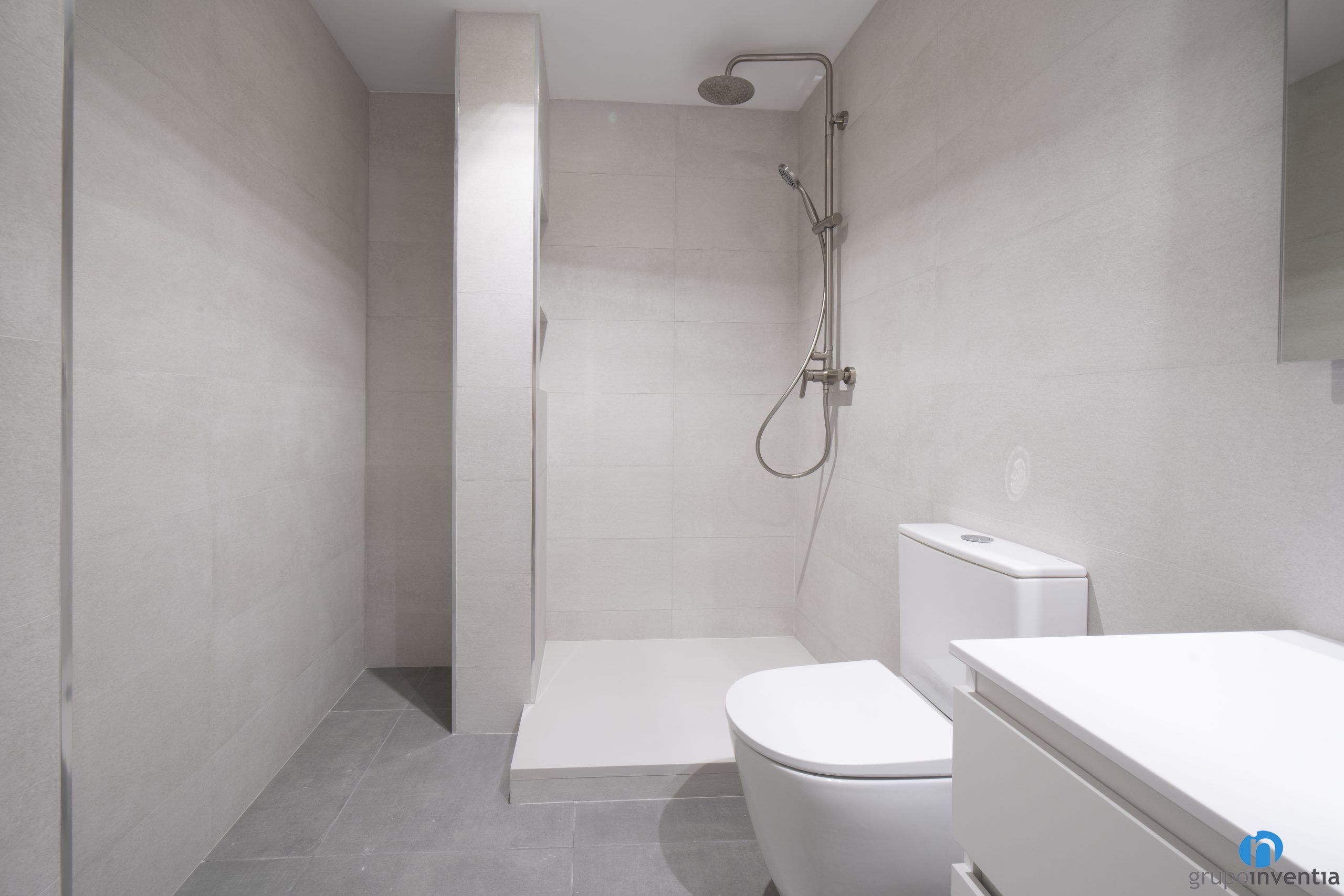 We have installed in each bathroom a sink with built-in furniture, a toilet and, in the main bathroom, a water area. This last item is a construction shower tray designed to offer functional use at all times. For the new image we have tiled the walls with beige tiles. We have created a fresh and pleasant environment, ideal for a daily use space.