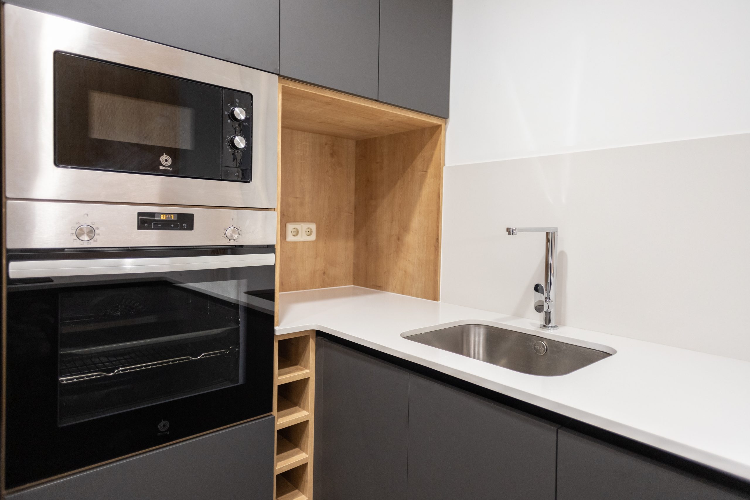 The kitchen is located in its own room and has a well-defined space. We have been responsible for placing the new furniture in the kitchen and installing all the new appliances. This kitchen renovation in Barcelona is ready to offer the best performance in use.