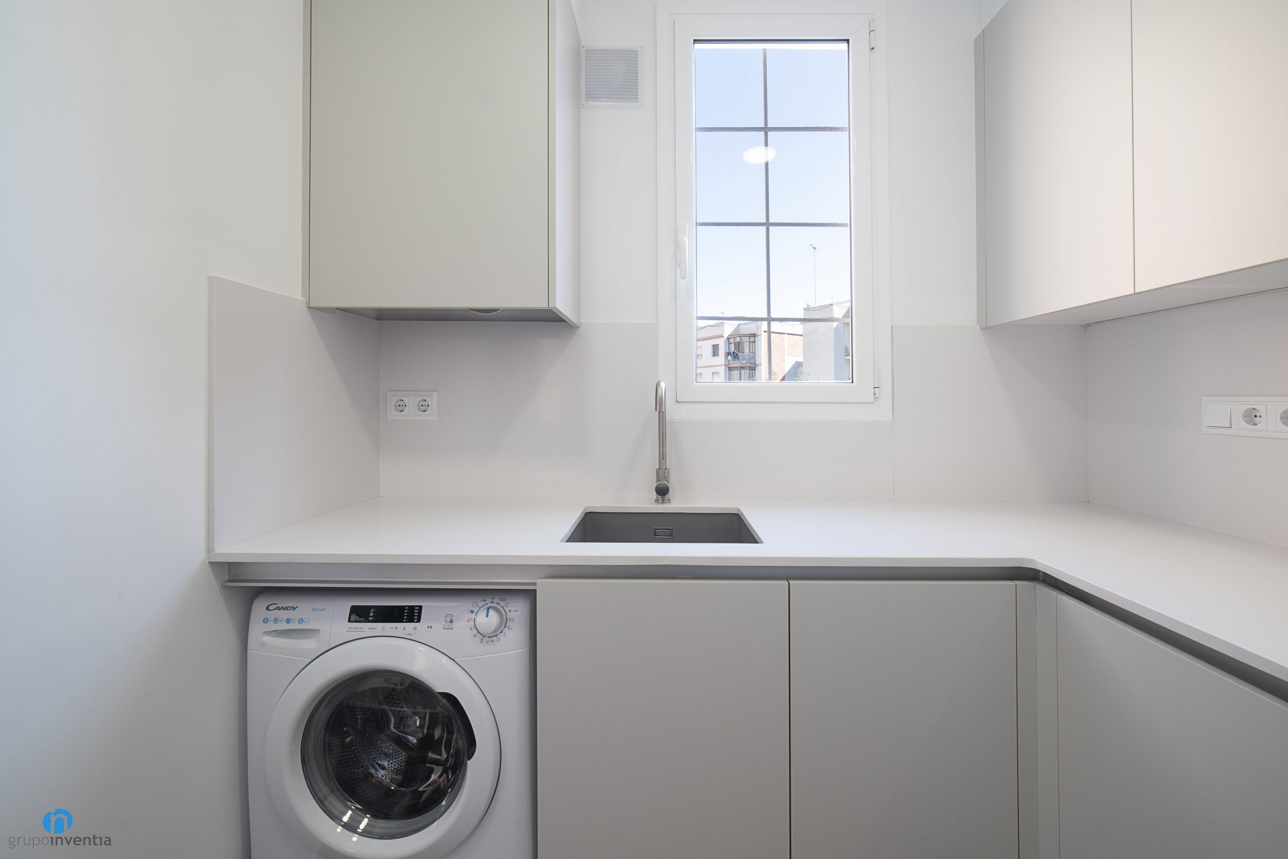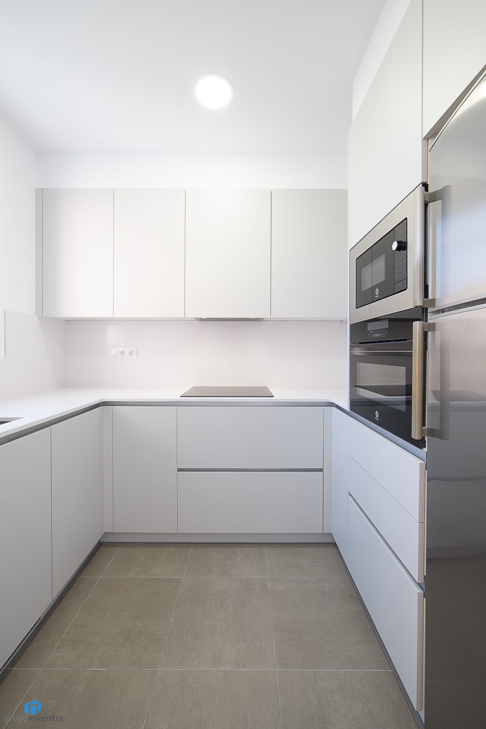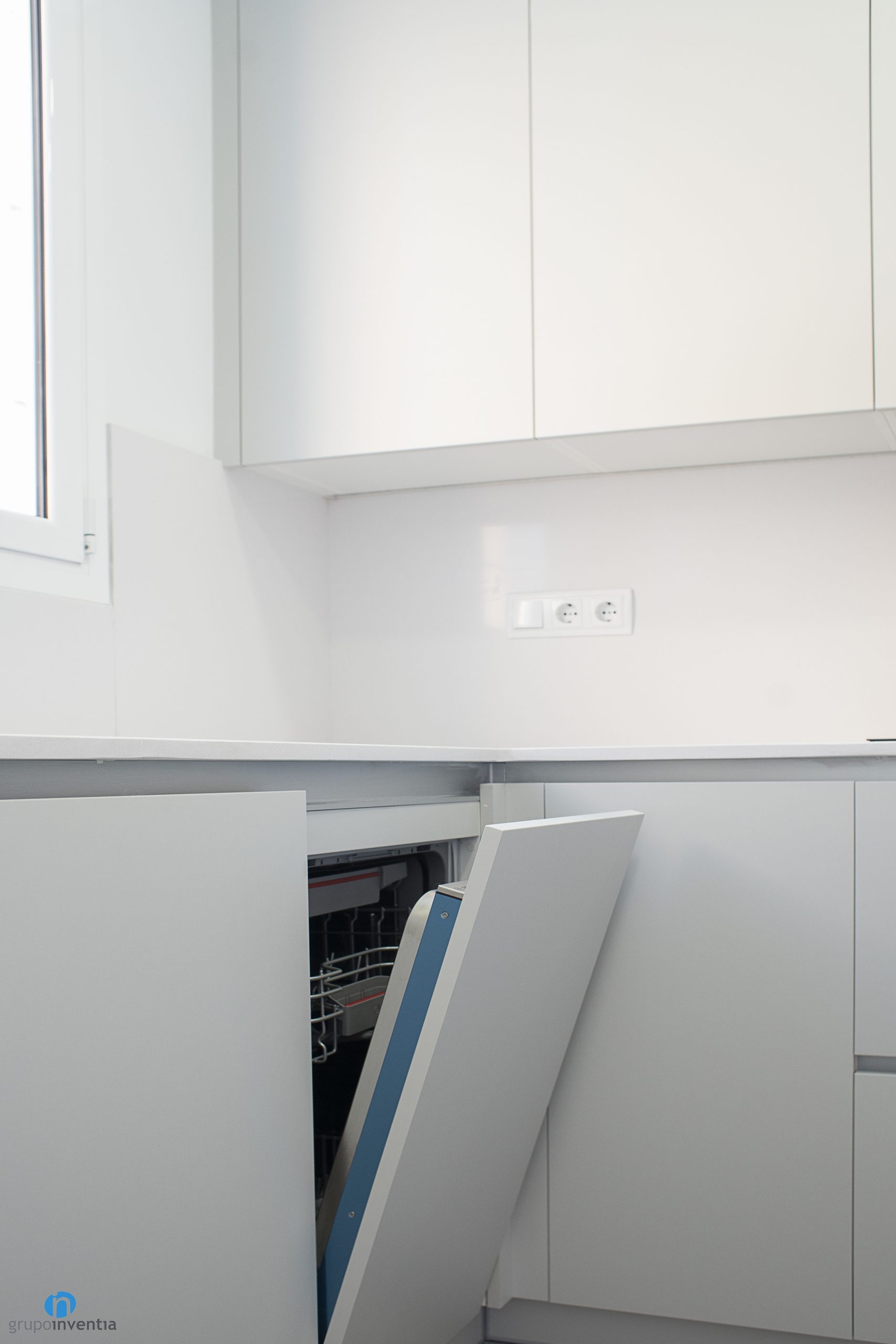 In this kitchen renovation in Esplugues the interior design of the space has also been improved. Now the kitchen is presented with a modern image that meets current requirements. For the kitchen furniture, the color white has been chosen, as in the walls. In this way natural and artificial light can flow throughout the kitchen.