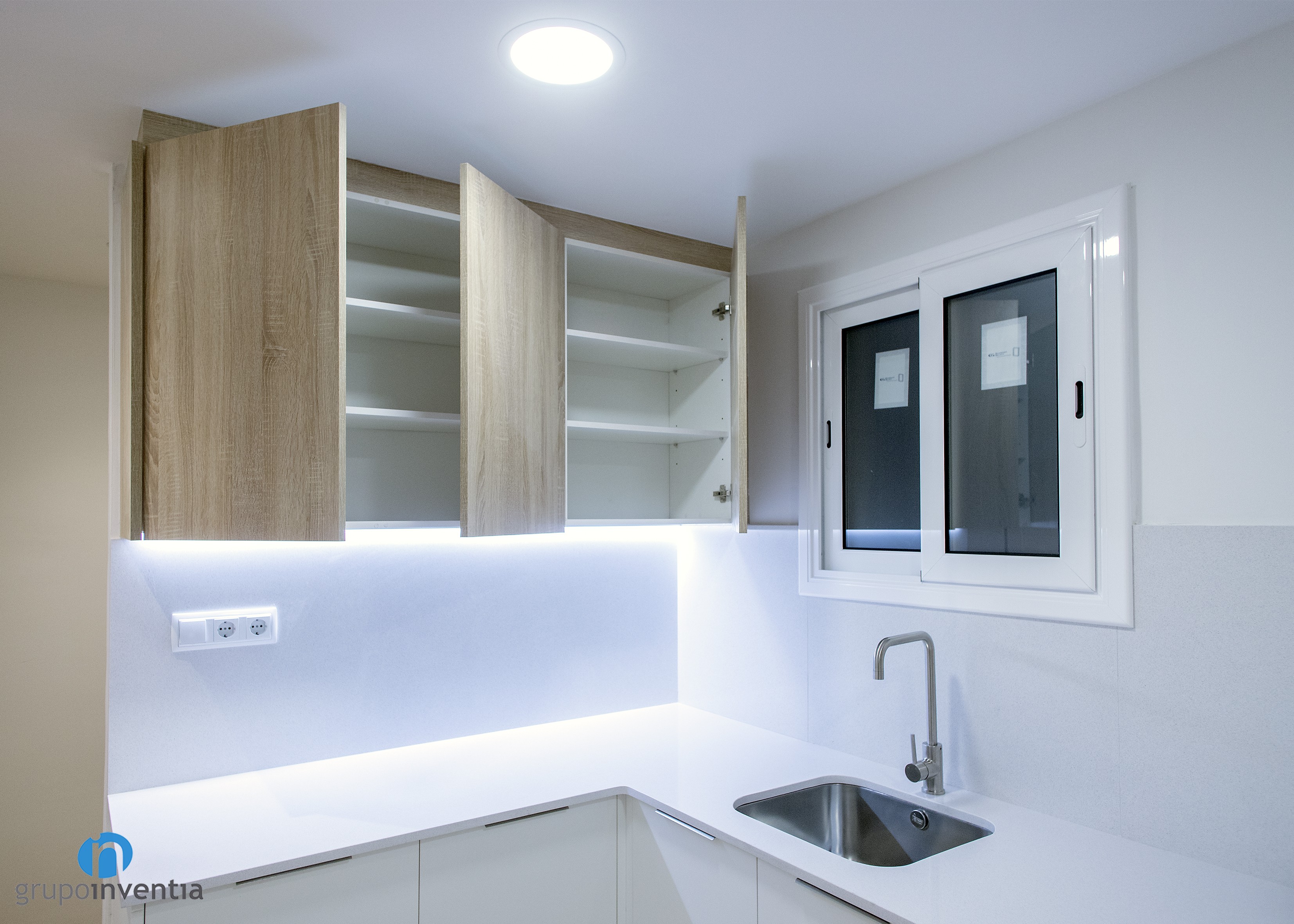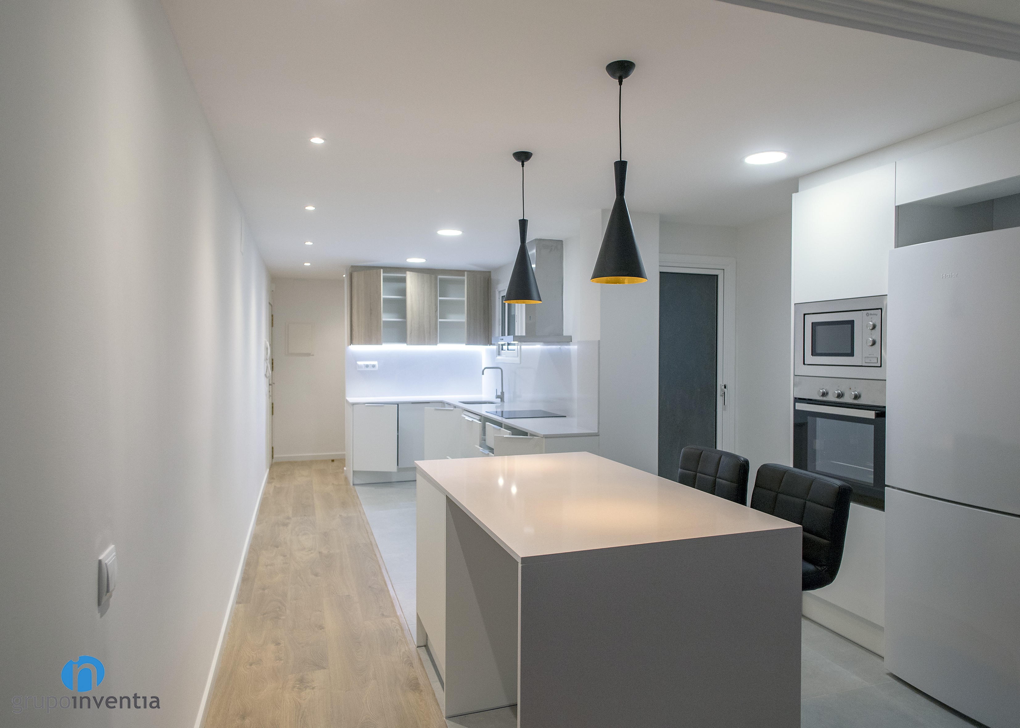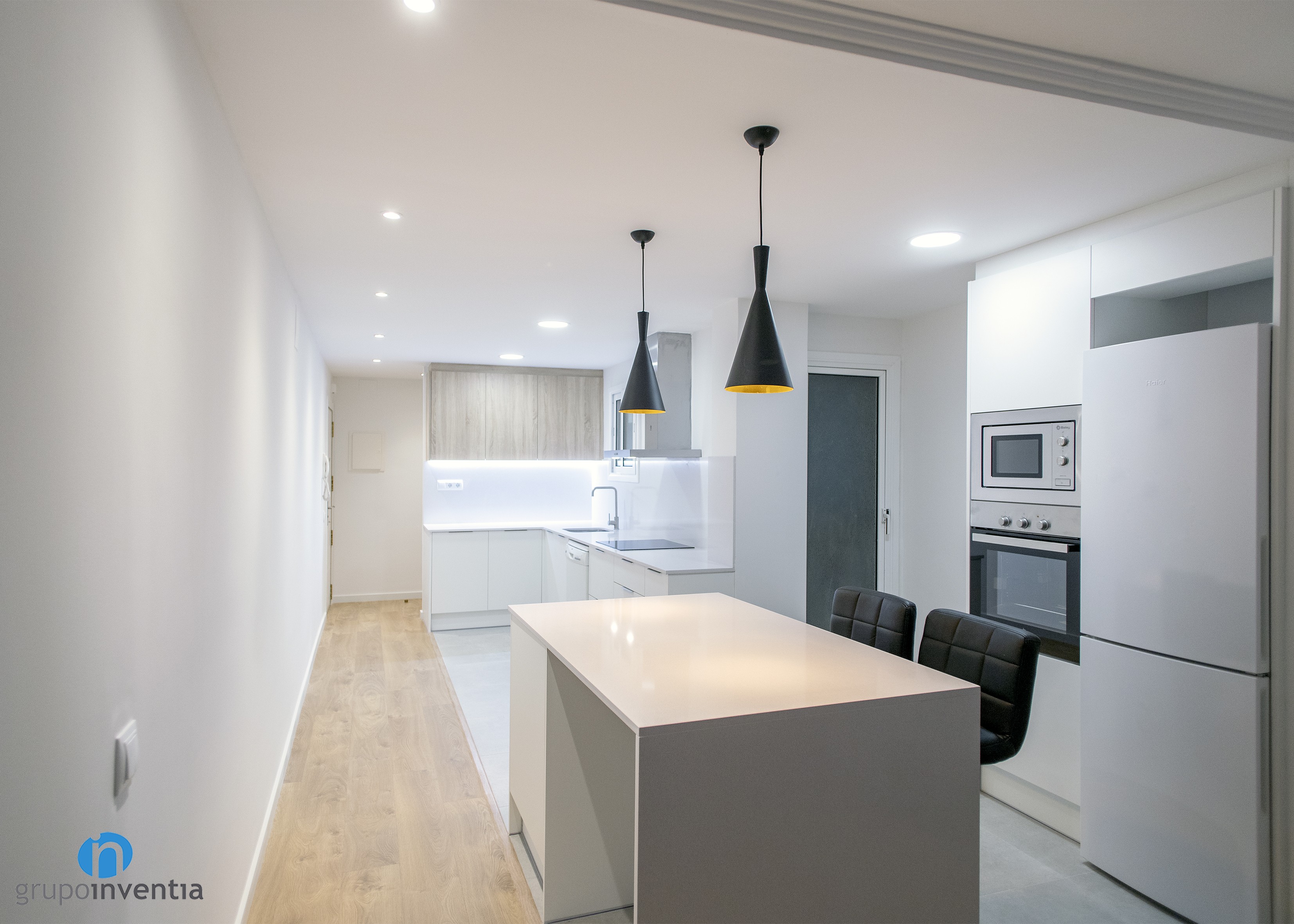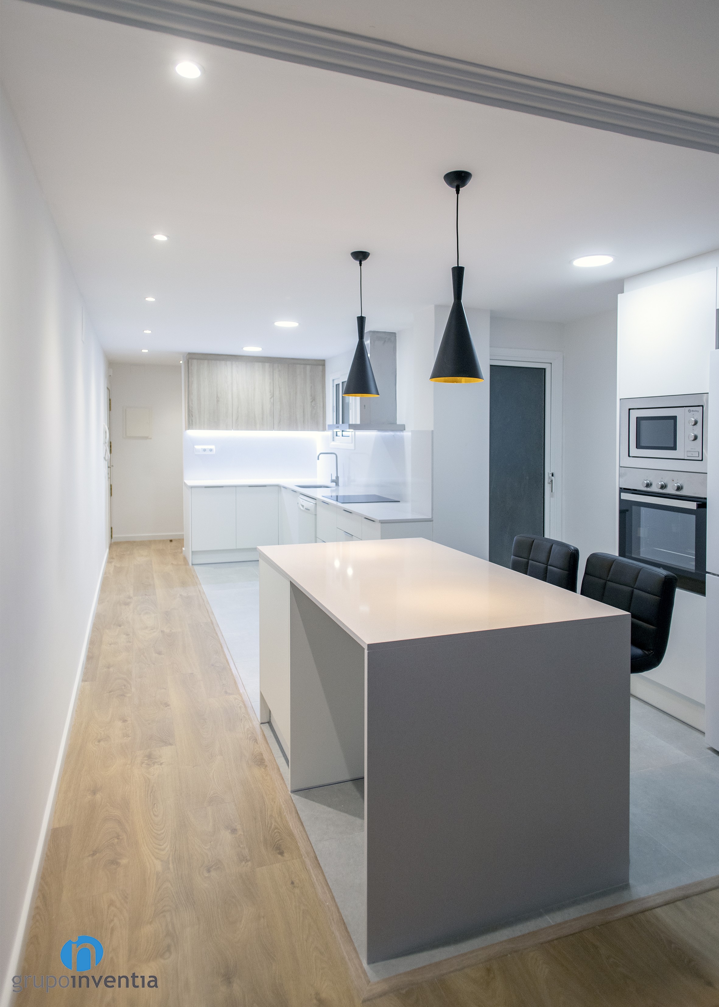 New kitchen renovation finalized by Grupo Inventia. On this occasion we moved to the town of El Prat de Llobregat to completely renew this room. In general, a modern image was printed in an open kitchen and we equipped it completely.