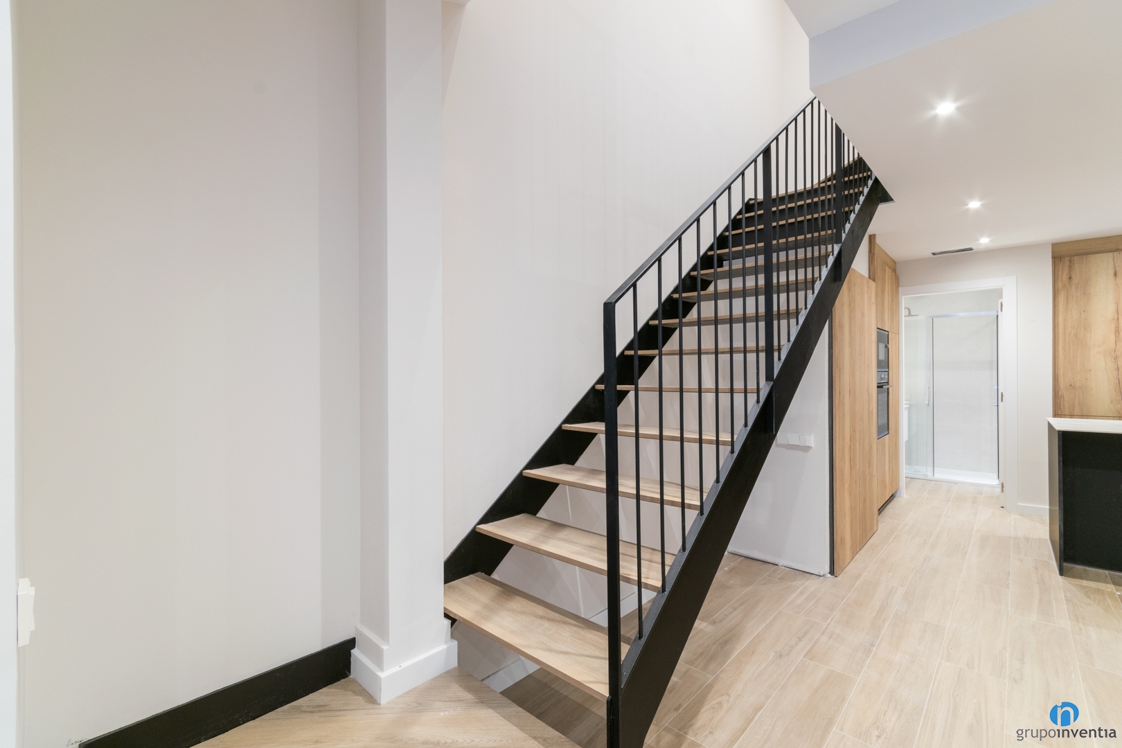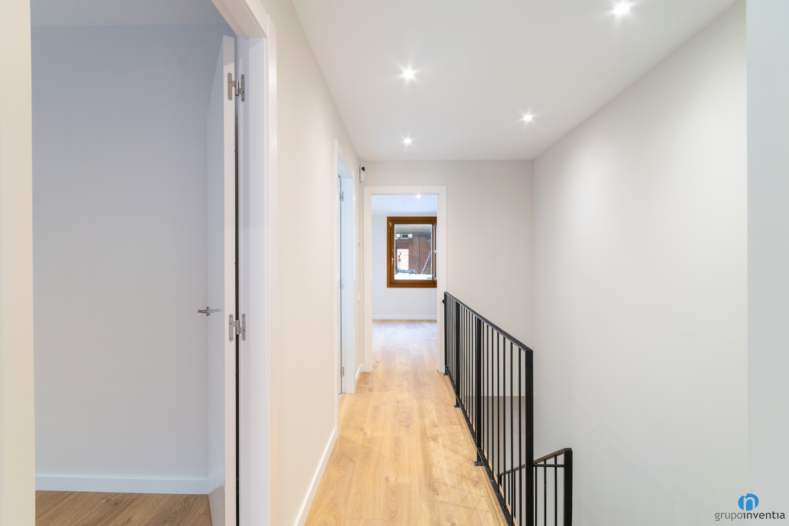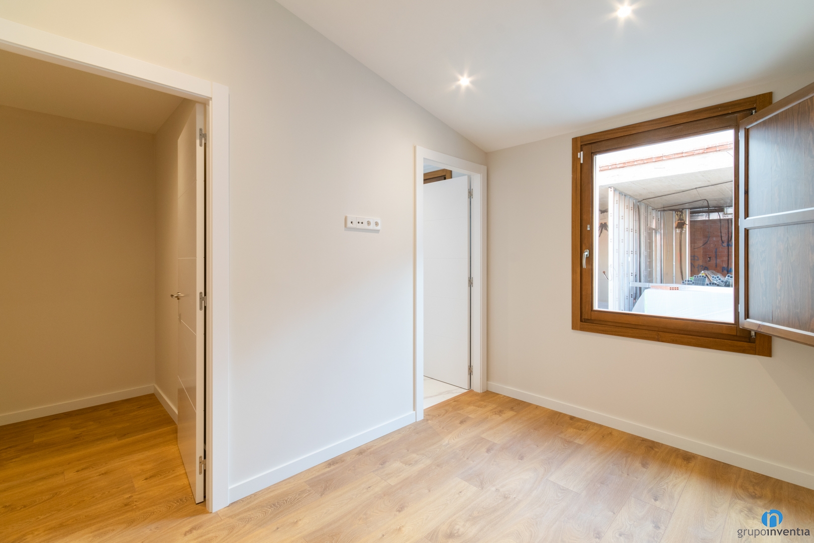 Once the distribution is defined, we are responsible for drawing up the interior design project. In this house we have created bright and spacious spaces using neutral tones. We painted the walls a soft shade of beige and combined it with other neutral and natural finishes. Among them the new white doors and the plinths of the same color.