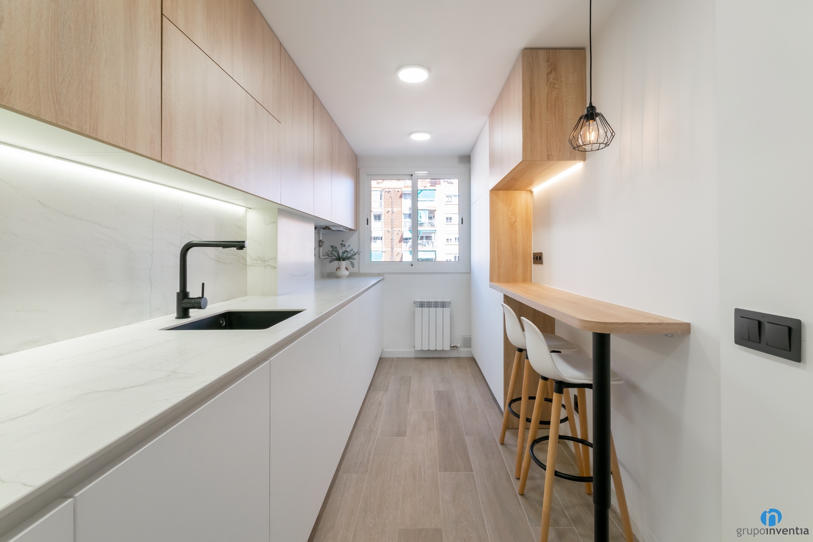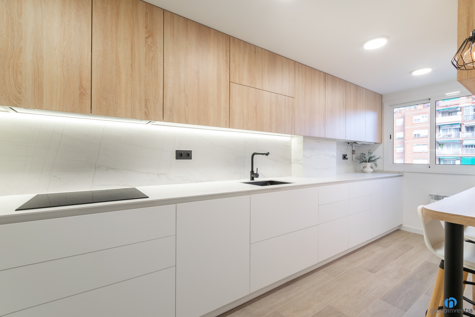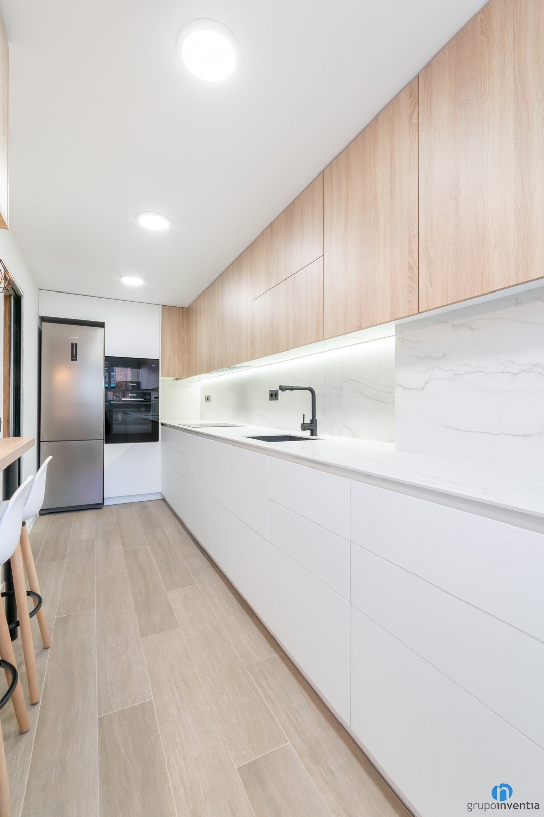 To improve the kitchen, it is best to have the advice and experience of professionals like those of Grupo Inventia. We prepare an initial project so that you can choose the novelties you want in your kitchen. We deliver it to you free of charge and without obligation alongside the kitchen renovation budget. Request it by calling 93 209 97 17.