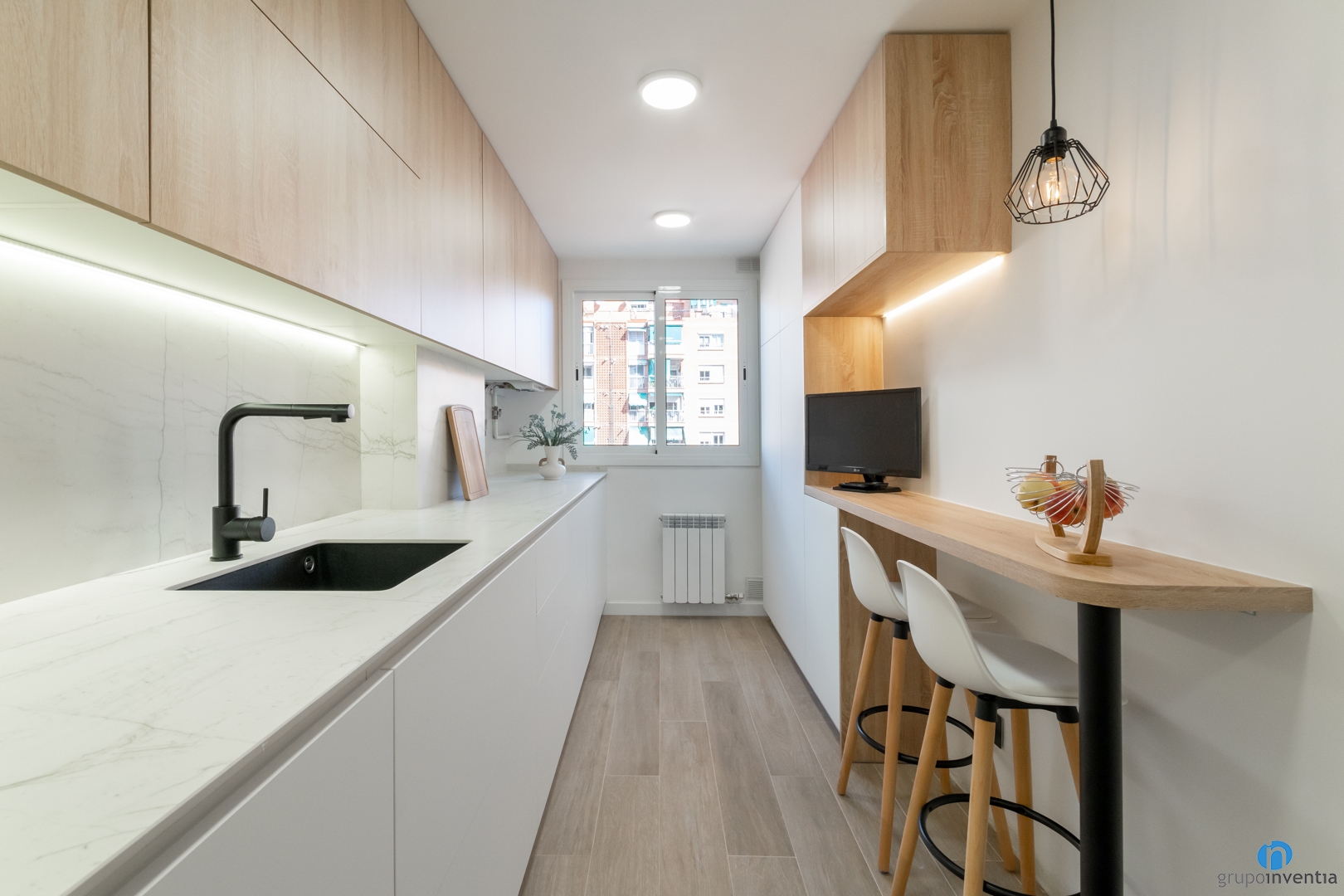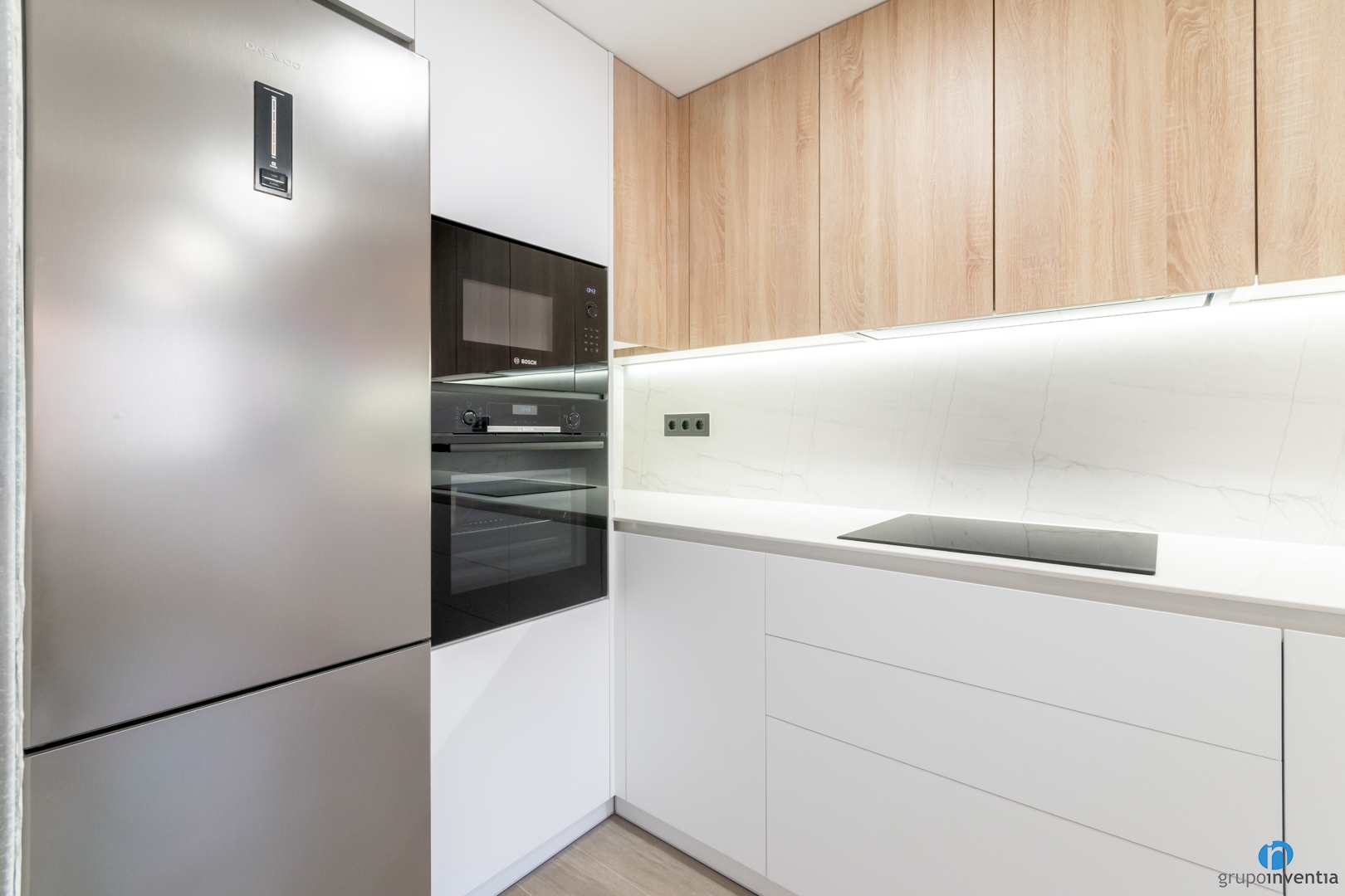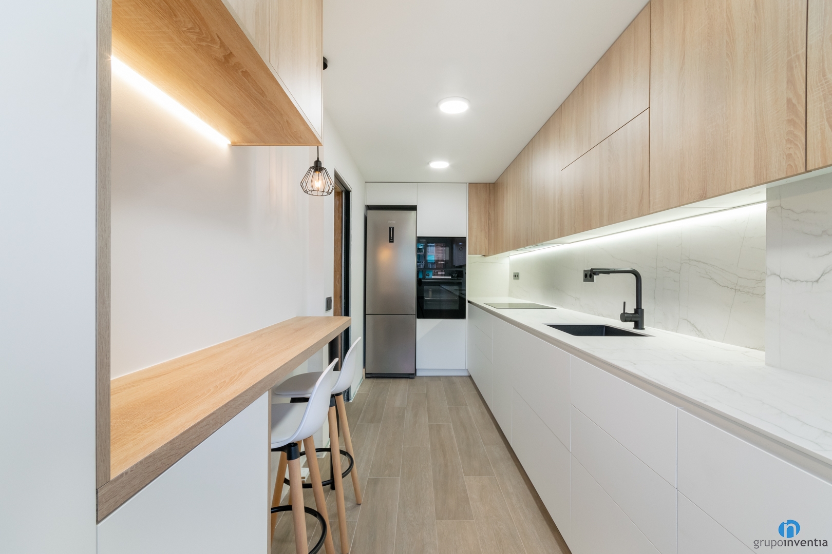 To improve the kitchen, it is best to have the advice and experience of professionals like those of Grupo Inventia. We prepare an initial project so that you can choose the novelties you want in your kitchen. We deliver it to you free of charge and without obligation alongside the kitchen renovation budget. Request it by calling 93 209 97 17.