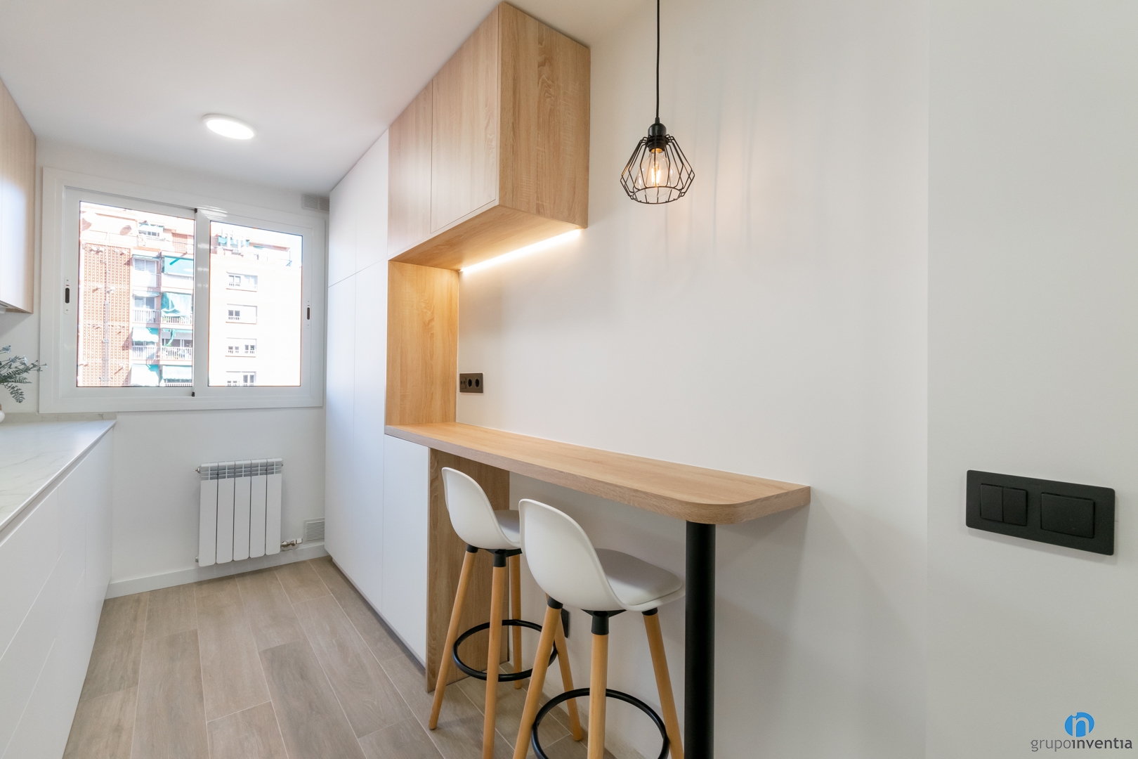 Another excellent improvement in this kitchen renovation in Badalona is the new image of the stay. It is a space with a good amount of natural light and we wanted to take advantage of it. We painted the walls white so that light flows into every corner. The lower part of the kitchen cabinet and the counter are also white.