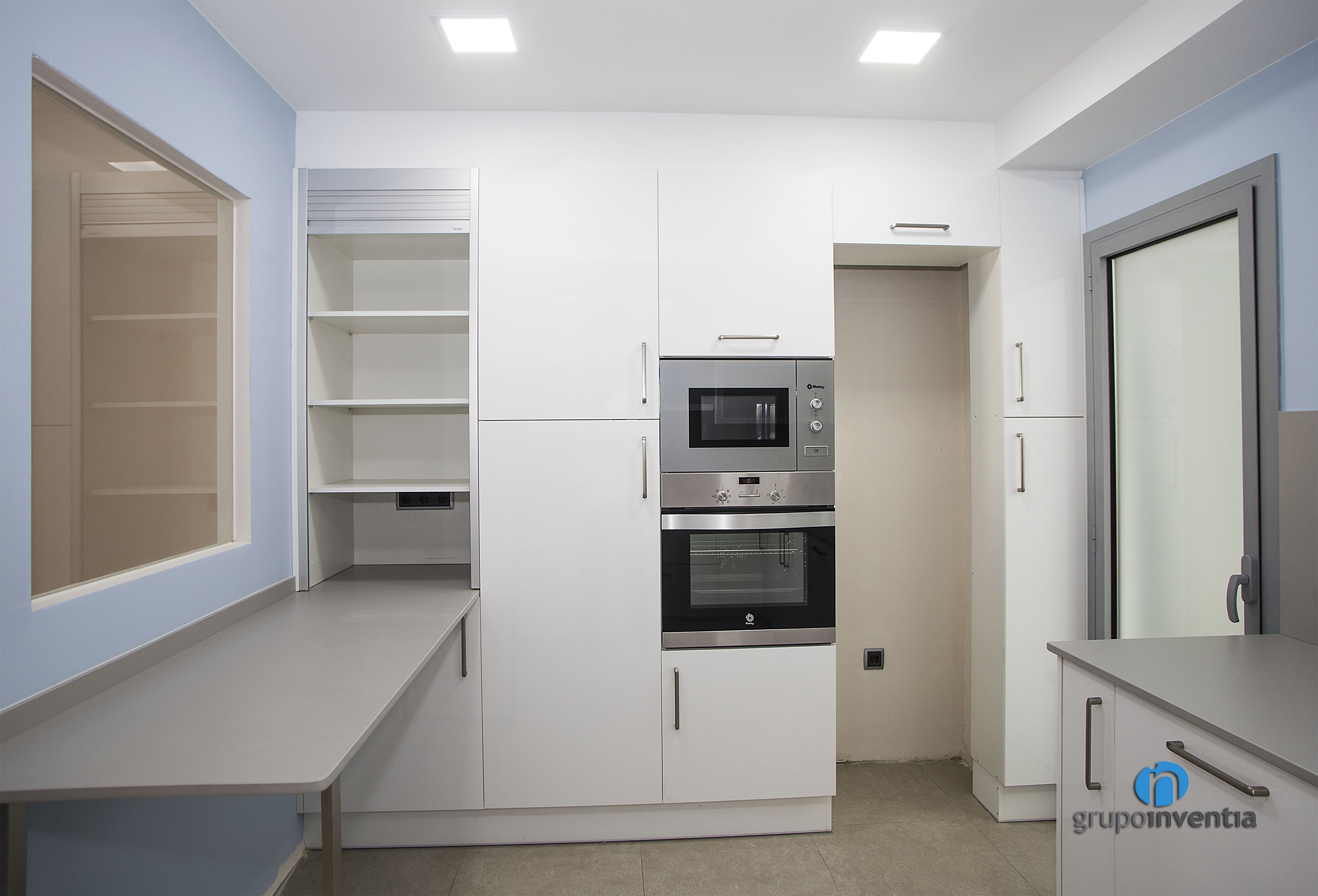 On the left side of this kitchen renovation was to place a bar furniture in which were embedded the new appliances: fridge, oven and microwave. In addition, this achieves more storage capacity in the room.
