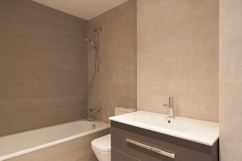 In turn, also proceeded to bathrooms reform, two in particular. Both were rehabilitated with a very similar style, using beige tiles for the walls and dark brown furniture for the bathroom. Moreover, the bathrooms reforms was completed with a toilet and a water area for a lavatory and bath the other a shower. They also agree that the two reforms bathroom resulted in practical and functional spaces.