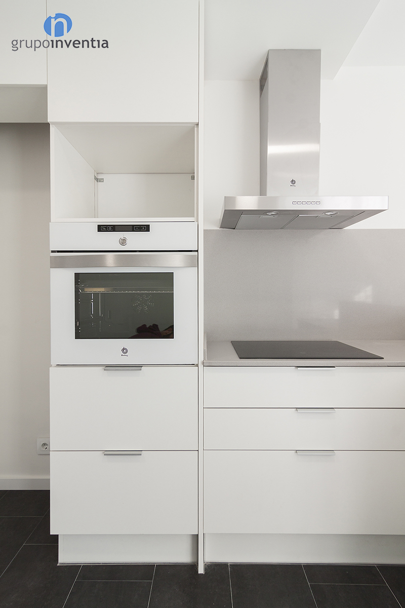 Regarding design, this kitchen reform combines white, around the kitchen cabinet with darker shades in the kitchen and the floor. Thus, the kitchen is integrated in the house but very well defined visually. In addition, the kitchen reform has plenty of storage, with various drawers and closets.