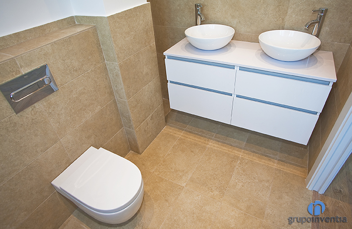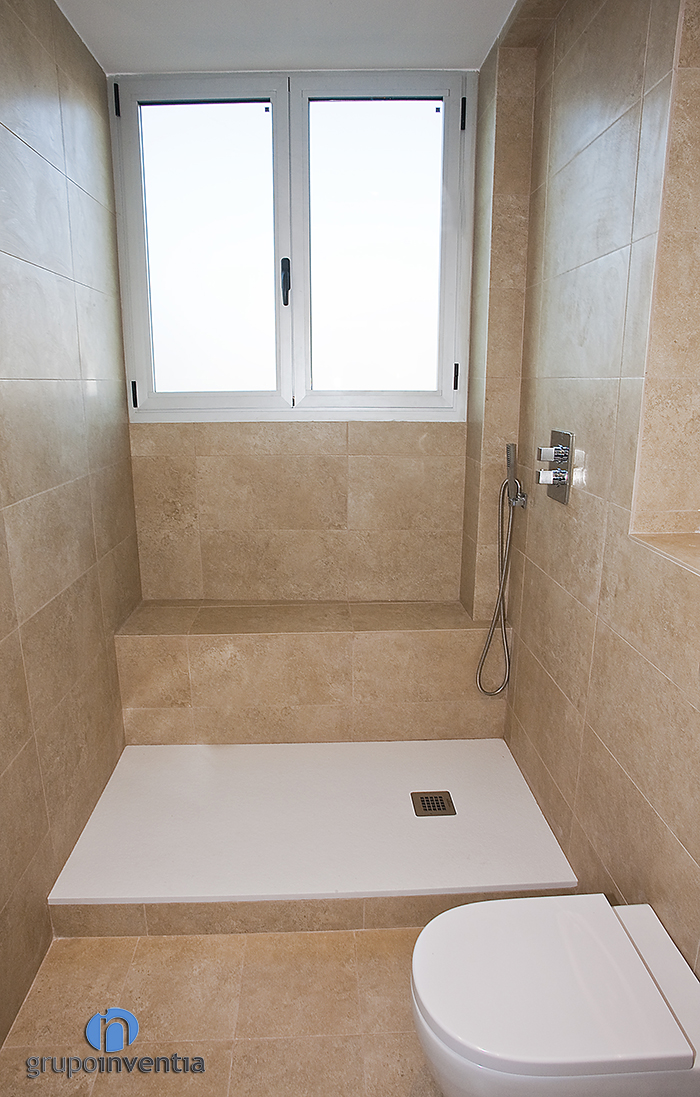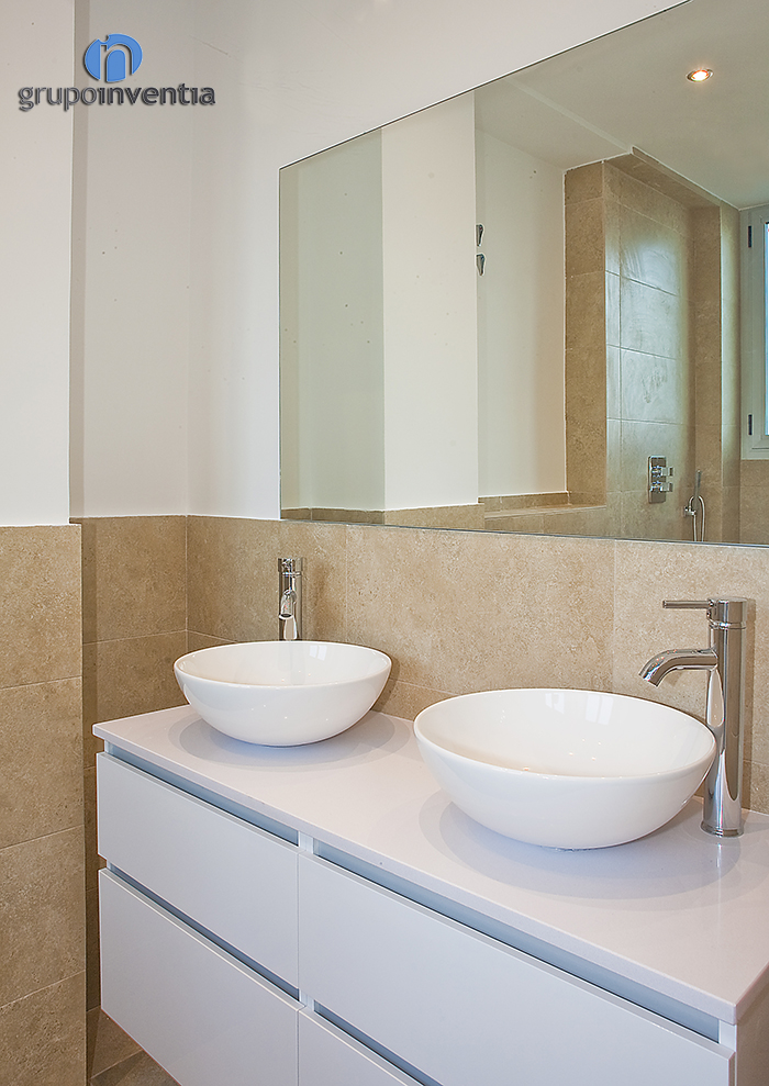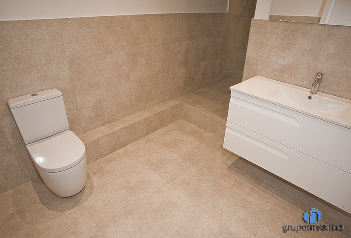 The house had two bathrooms were completely renovated. In both used a similar design in which the walls were tiled with beige tiles halfway up and painted white the rest. They get bright and spacious rooms.