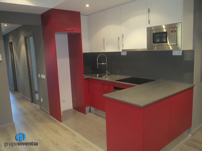 Moreover, the kitchen reform is integrated in the same space as the main room, so that the priority was more diferéncialos. This was achieved by installing an open kitchen with a breakfast bar incorporated. The kitchen is equipped with all necessary appliances for proper habitability and also was placed a piece of furniture has several drawers and cabinets. But they got a clear separation of spaces was the color chosen for the lower kitchen cabinet. We chose the red tone that certainly allows the boundaries of their own cooking.