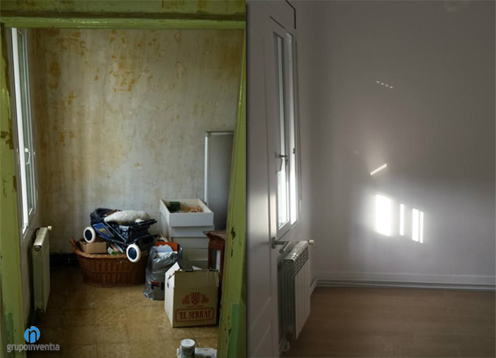 In the hall we also restore the original door. You now have a much more healthy and is perfectly integrated into the design of this space. Meanwhile, in the bedrooms change the original windows and sliding windows placed much more practical and insulators.