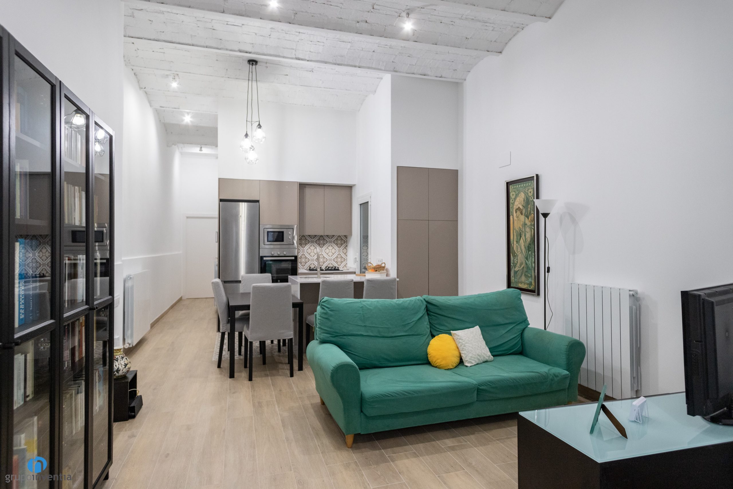 This is combined with details that do not go unnoticed. One is the volta catalana ceiling that has been restored and painted white. Another of the improvements to the interior design in this renovation in Badalona is the new flooring that has been placed in spaces such as the livingroom, the hallway or the bedrooms. It is a ceramic floor imitation parquet. Visually it is perfect, while it is a durable and durable material.