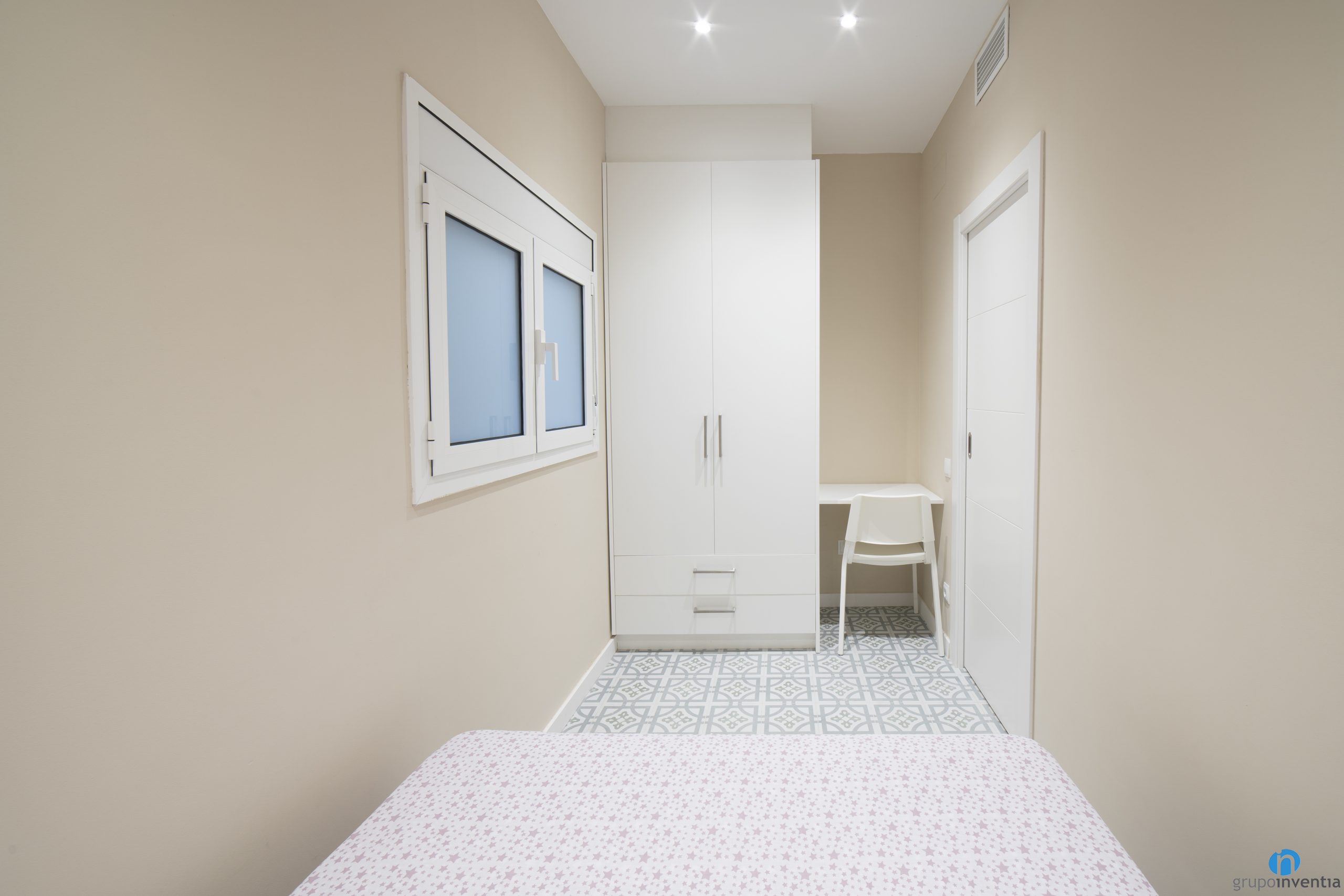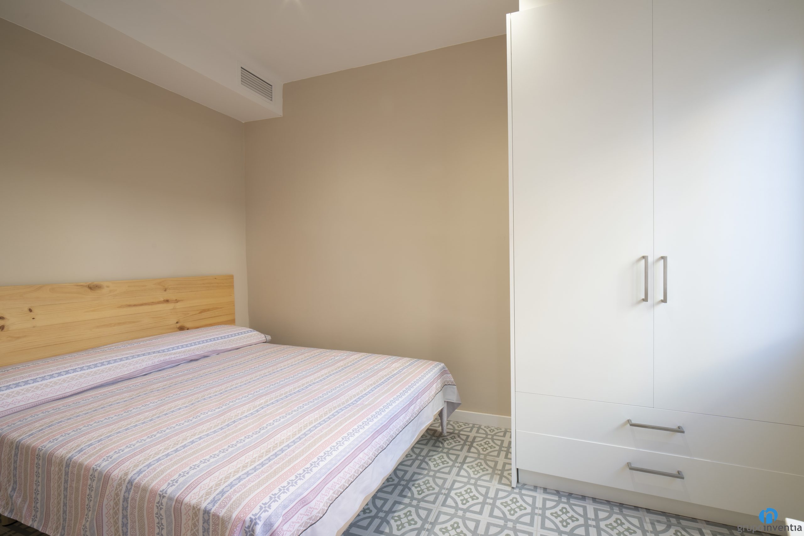 In addition to the interior design, we have also furnished the living room and the bedrooms. In the first we have placed a sofa with several seats and anchored a television to the wall. On the other hand, the rooms are furnished with a double bed, a large wardrobe and a desk that functions as a work space.
