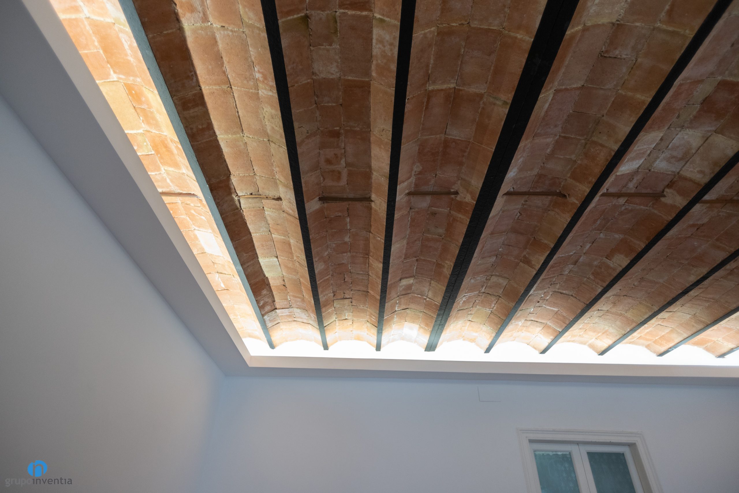 Another element restored in various space is the ceiling. Work has been done on the maintenance of Catalan vaulted ceilings that further enhance the cozy atmosphere of the home. It is also a very popular item, so if you have it original keep it is a great option. When adapting the ceilings, some lights have also been installed that are camouflaged on a shelf. In this way a very effective and discreet lighting is achieved.