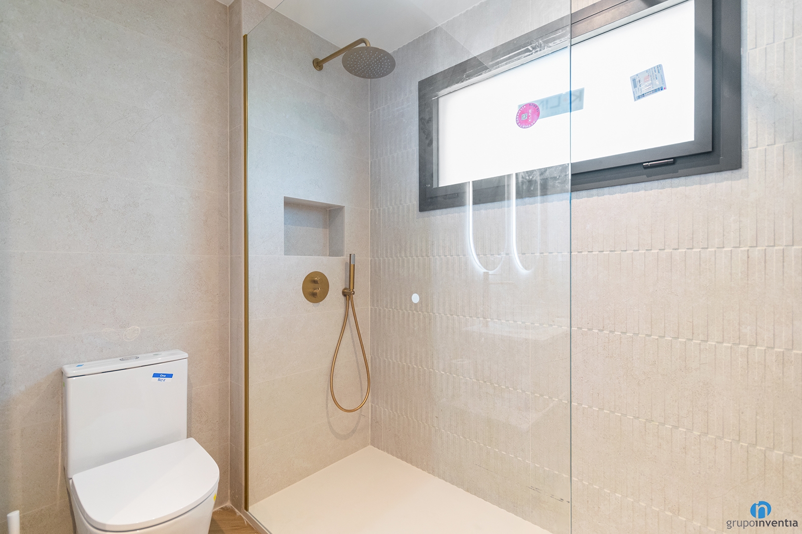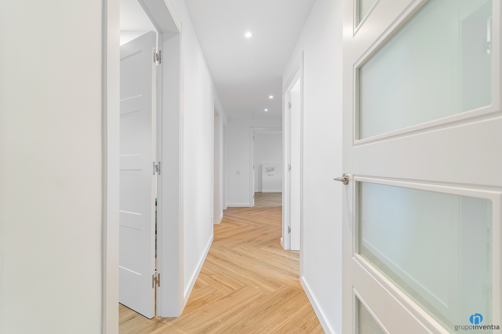 The new interior design features a contemporary style combining off-white with wood finishes. This pairing brings warmth and a sense of spaciousness to all rooms. The ceramic floor imitates natural wood, adding texture and visual comfort.